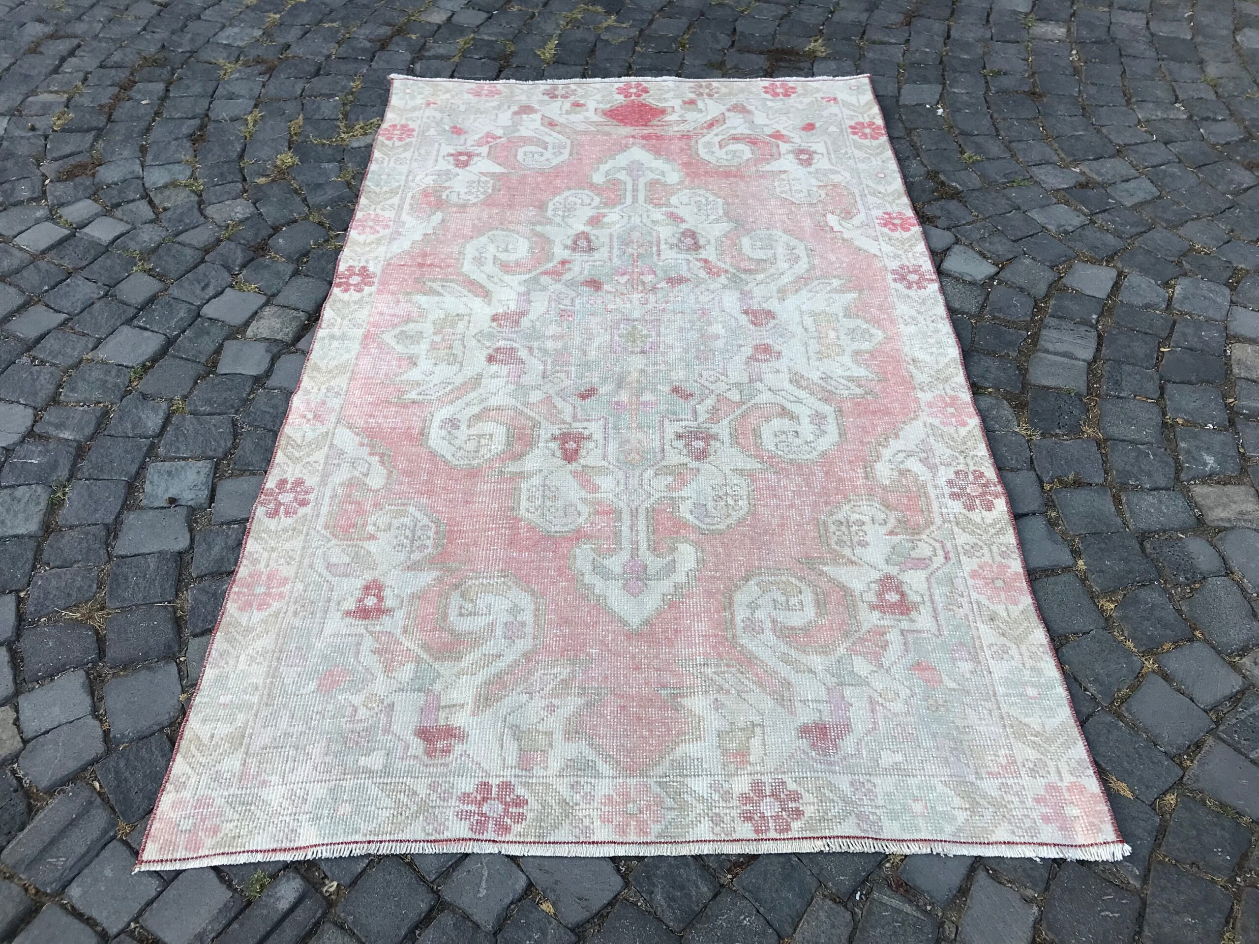 This is a vintage Turkish rug hand-knotted in a small village in Turkey by skilled Anatolian women during around the 1980s. It is made from natural wool (sheep) and dyed using all-natural (vegetable) dyes. Natural materials are more durable than synthetic materials guaranteeing a rug that can last for years while natural dyes provide colors that gets more beautiful as years pass by especially when in direct sunlight.