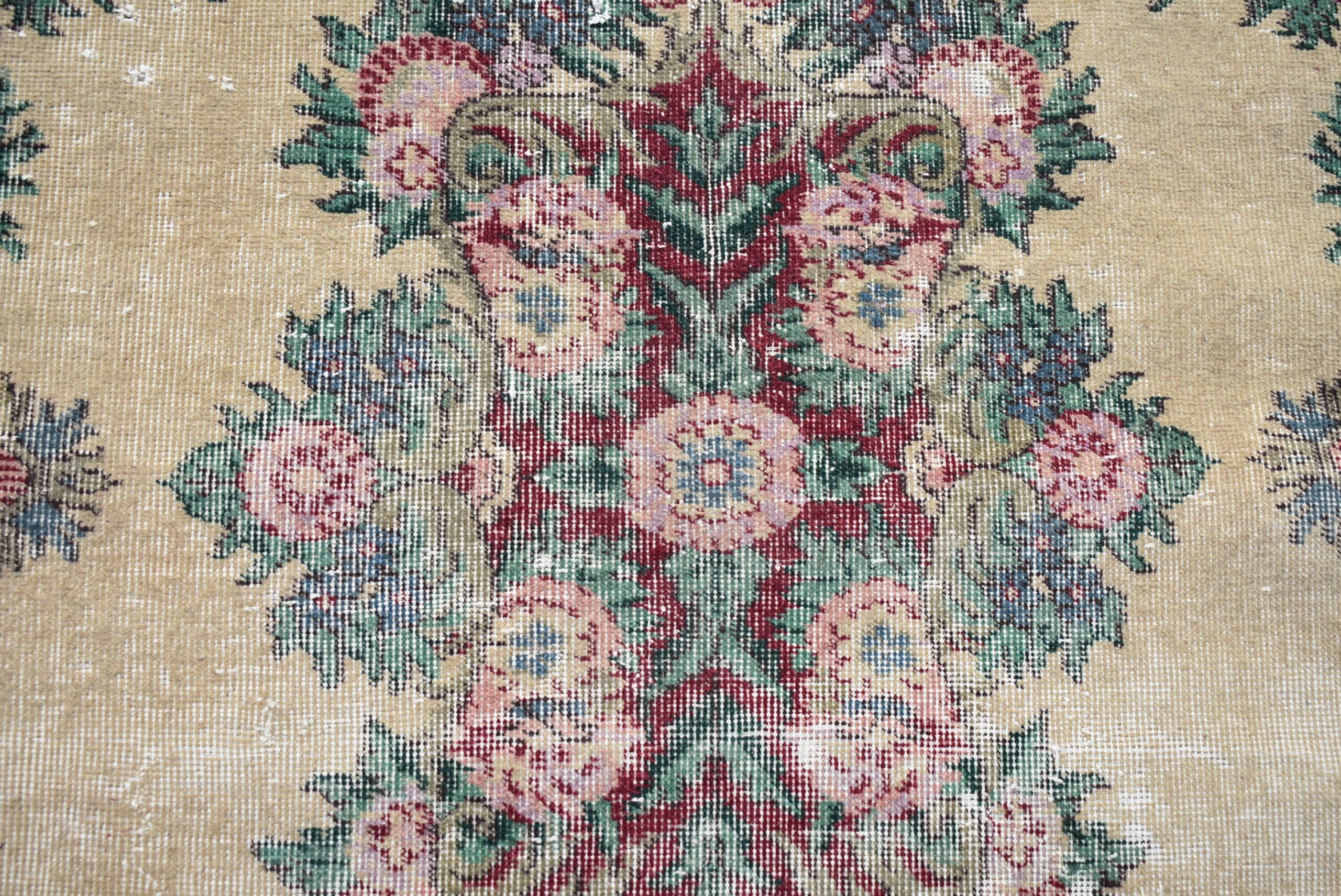 Lovely and unique 4.3 ft. x 8.1 ft. (130 cm x 246 cm) vintage Turkish rug hand-knotted in Turkey from organic wool. This is an authentic vintage Turkish rug from the 1990s that has worn beautifully to perfection.