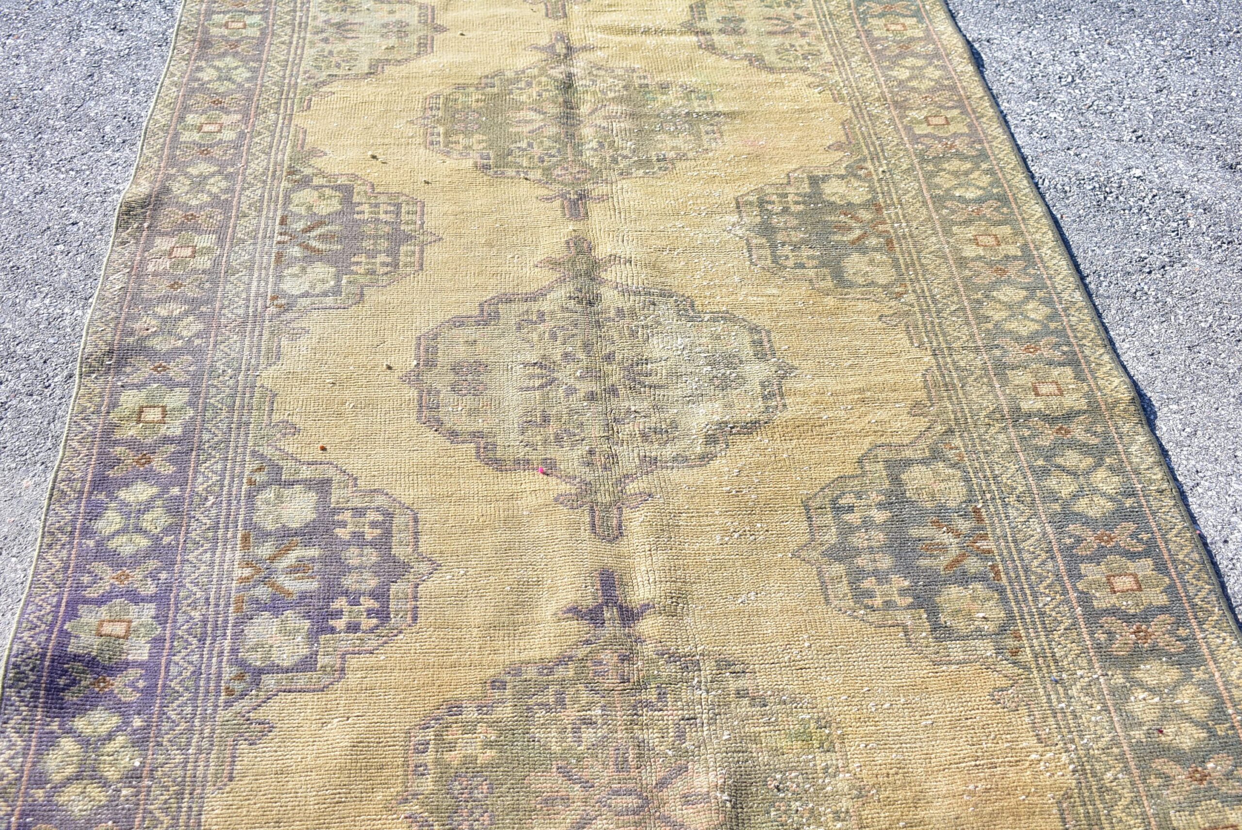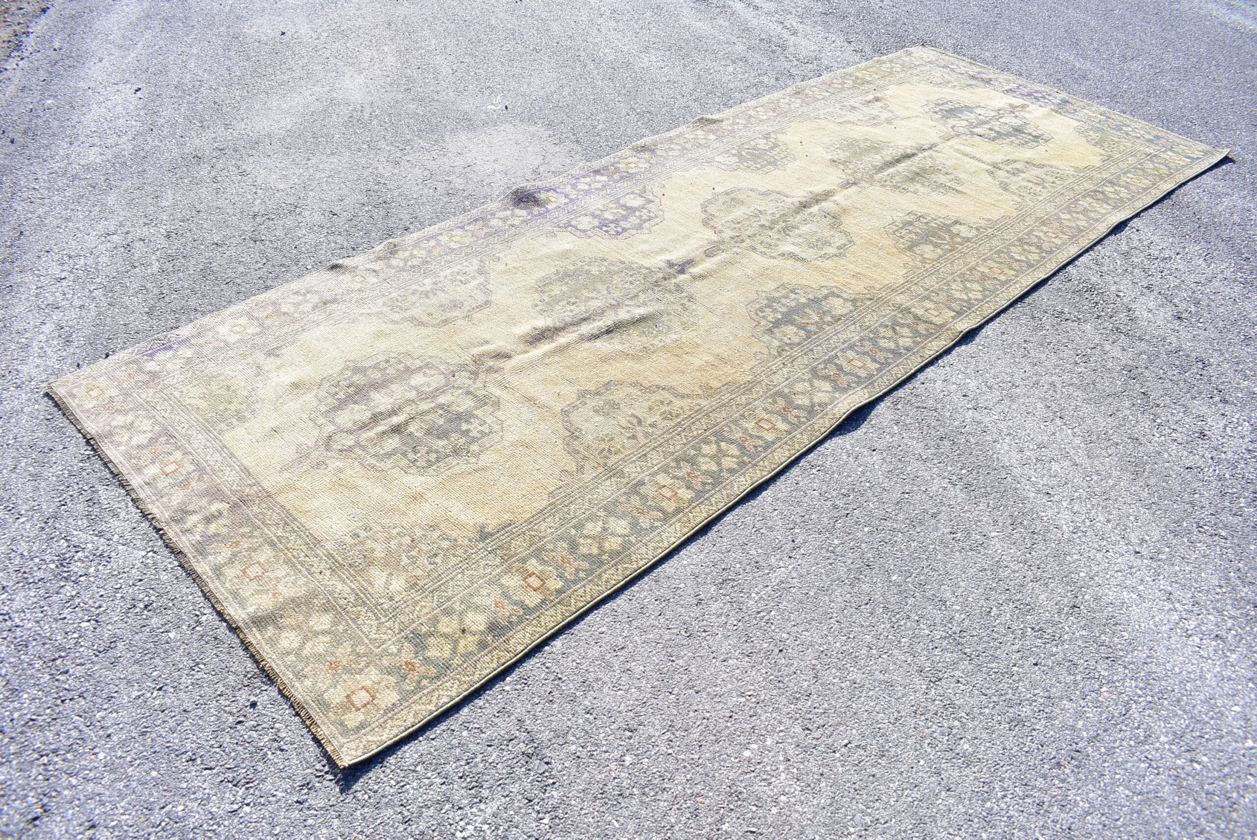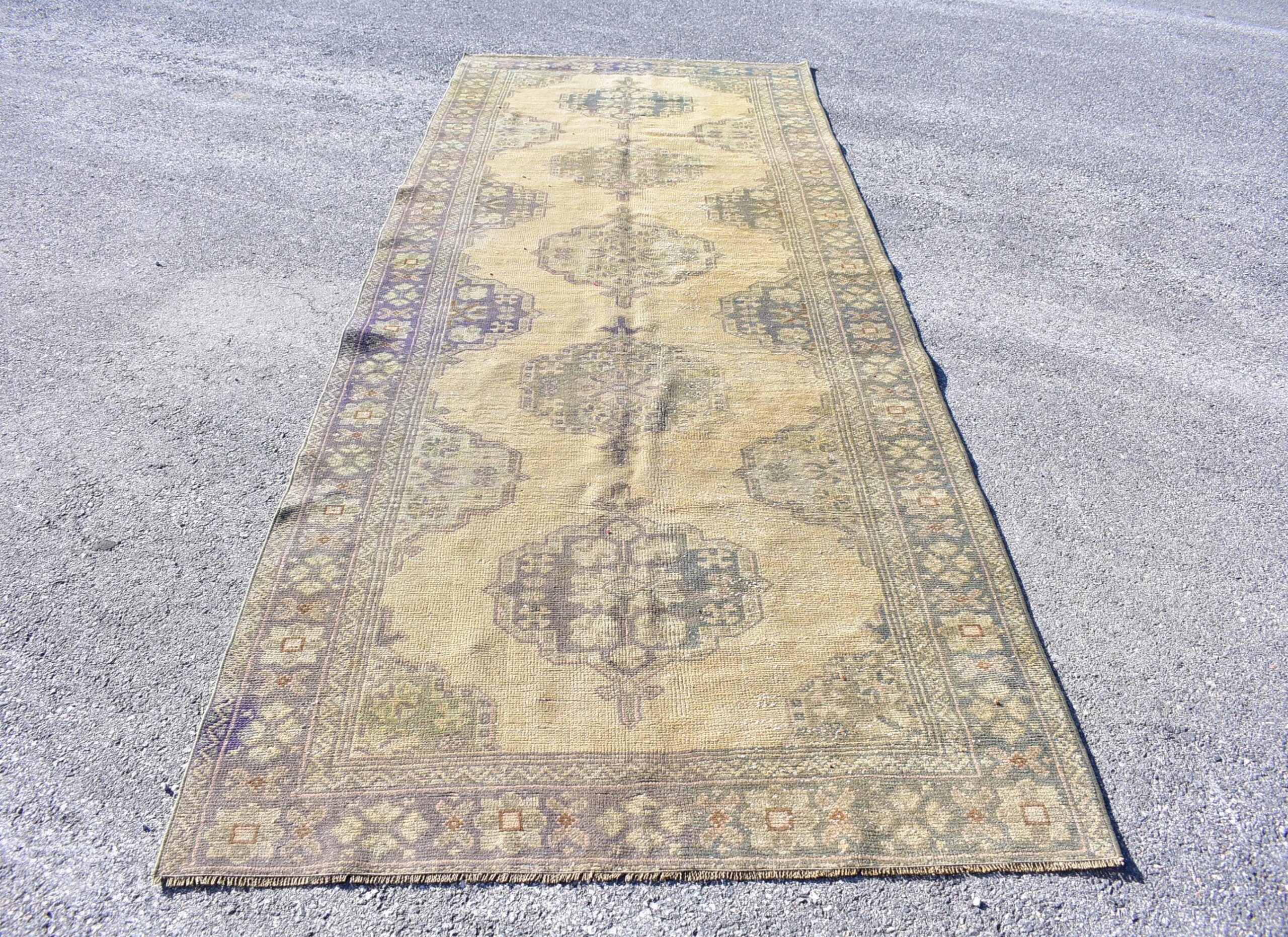 Pretty and one-of-a-kind 4.4 ft. x 11.3 ft. (134 cm x 345 cm) vintage Turkish rug hand-knotted in Turkey from organic wool. This is an authentic vintage Turkish rug from the 1970s that has worn splendidly to perfection.
