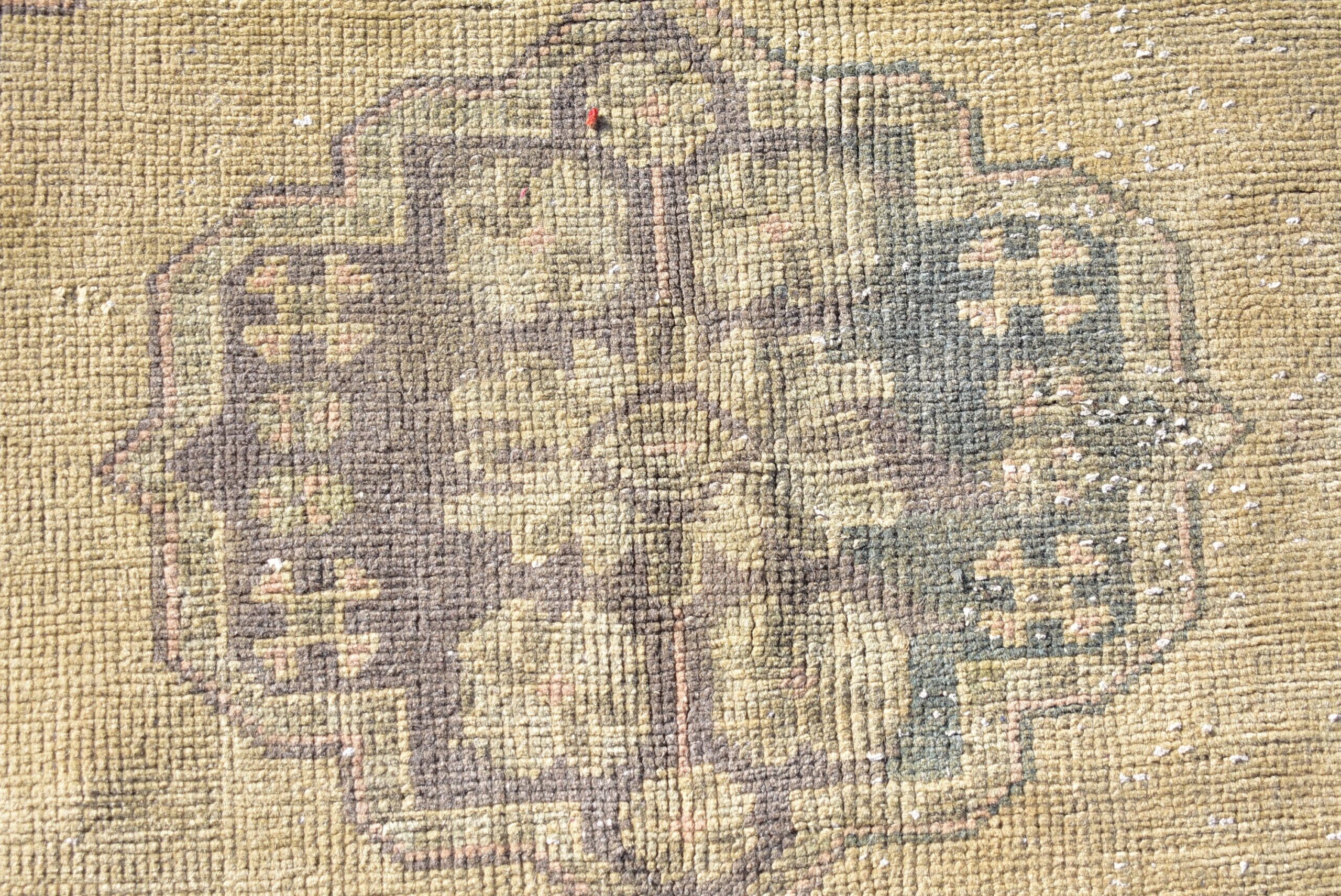 This is a vintage Turkish rug hand-knotted in a small village in Turkey by skilled Anatolian women during around the 1970s. It is made from natural wool (sheep) and dyed using all-natural (vegetable) dyes. Natural materials are more durable than synthetic materials guaranteeing a rug that can last for years while natural dyes provide colors that gets more beautiful as years pass by especially when in direct sunlight.