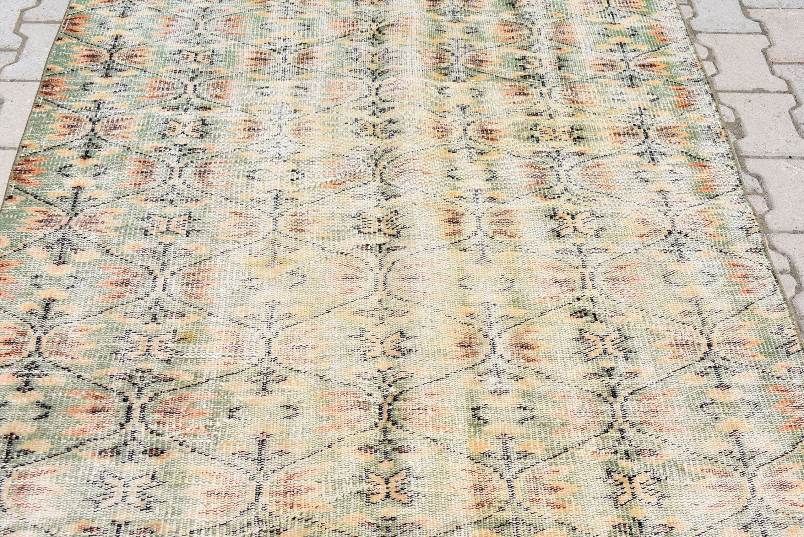Lovely and unique 4.4 ft. x 7.2 ft. (133 cm x 220 cm) vintage Turkish rug hand-knotted in Turkey from organic wool. This is an authentic vintage Turkish rug from the 1970s that has worn beautifully to perfection.