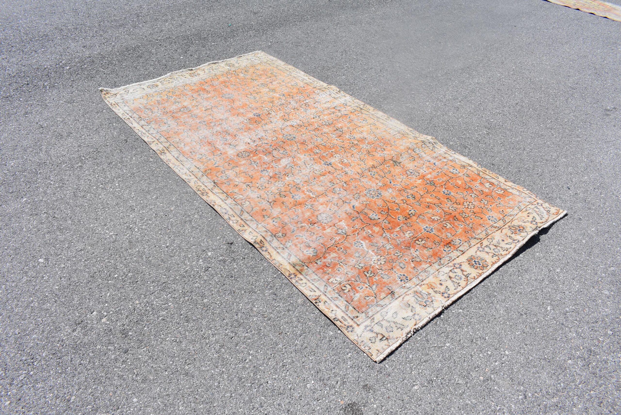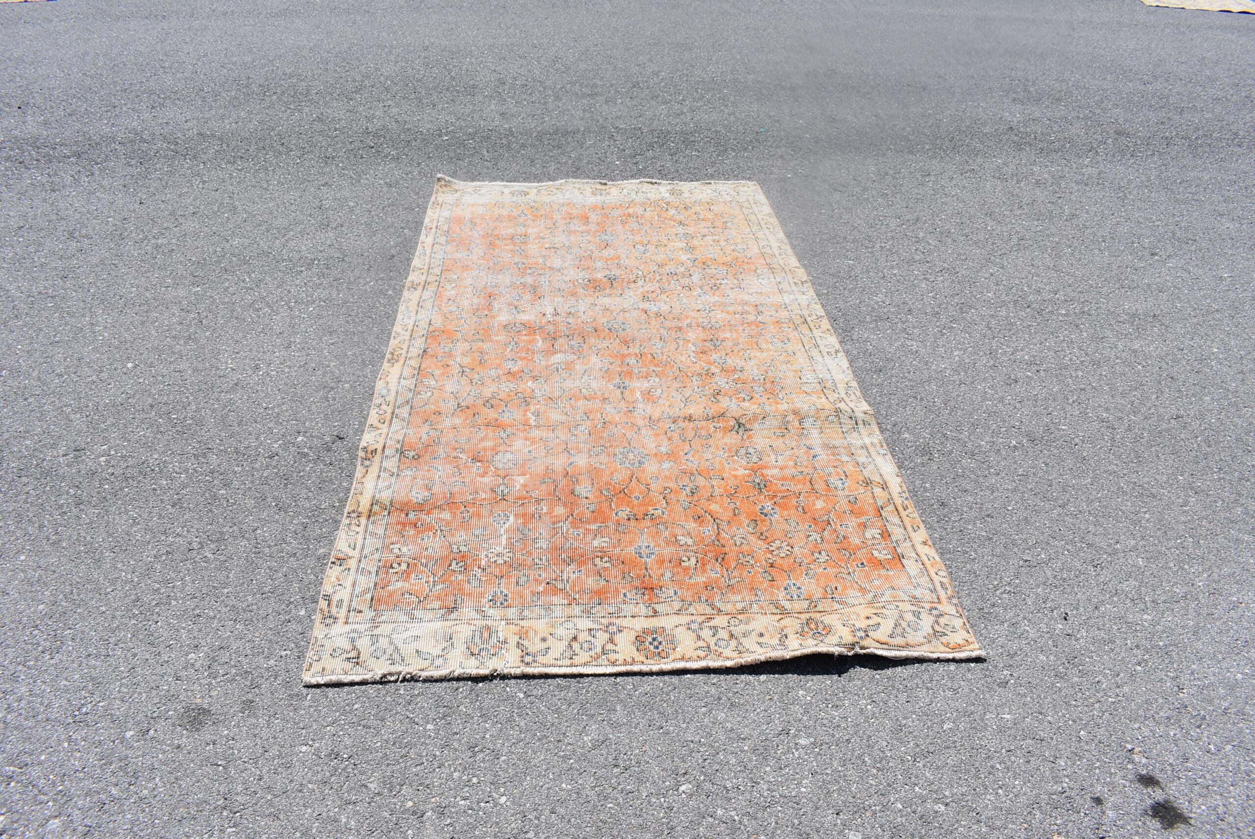 Lovely and unique 4.4 ft. x 8.4 ft. (133 cm x 255 cm) vintage Turkish rug hand-knotted in Turkey from organic wool. This is an authentic vintage Turkish rug from the 1980s that has worn beautifully to perfection.