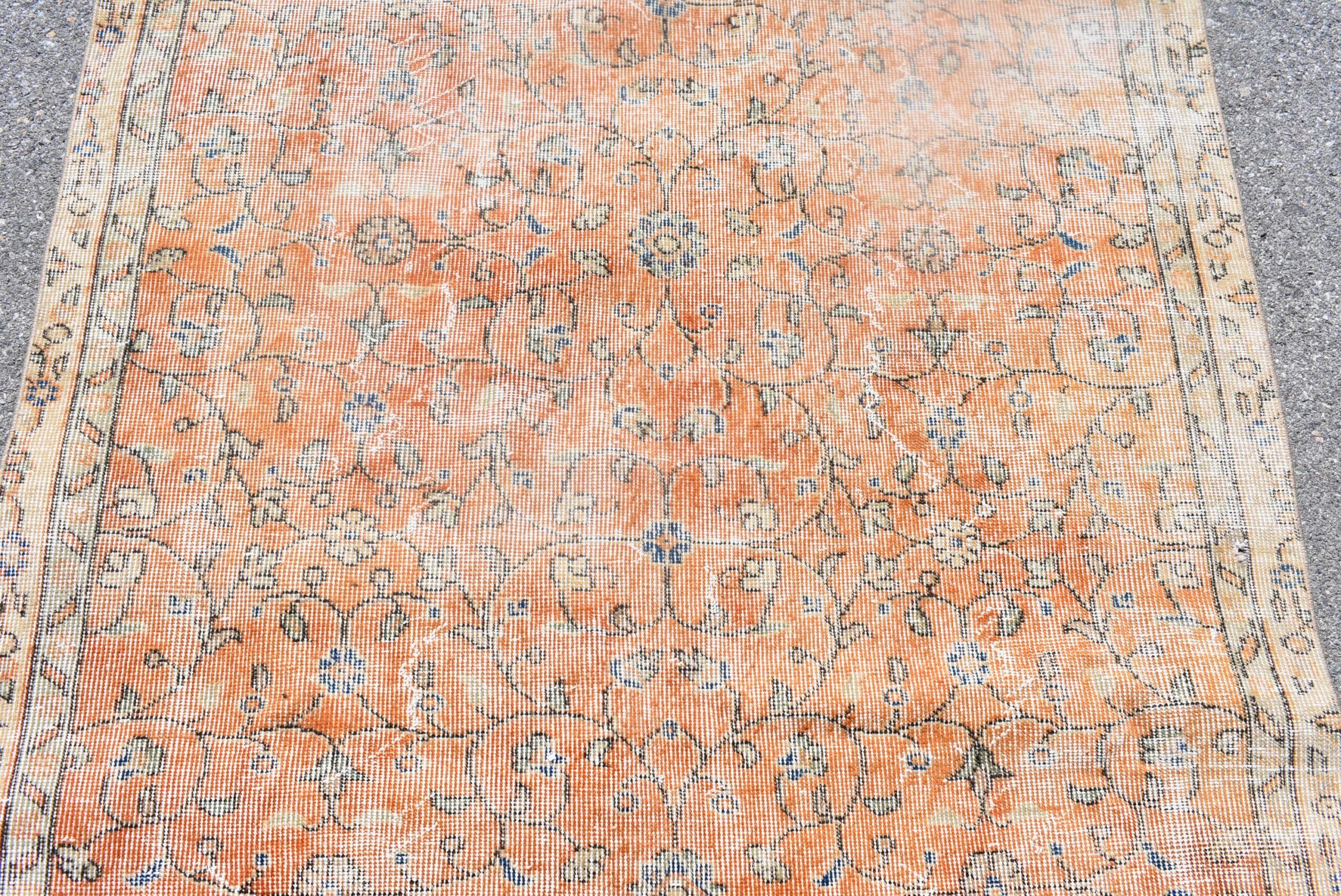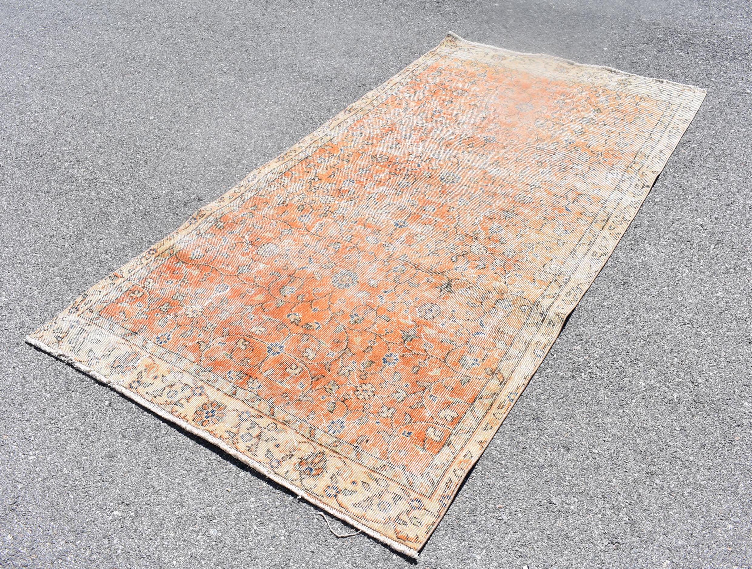 This is a vintage Turkish rug hand-knotted in a small village in Turkey by skilled Anatolian women during around the 1980s. It is made from natural wool (sheep) and dyed using all-natural (vegetable) dyes. Natural materials are more durable than synthetic materials guaranteeing a rug that can last for years while natural dyes provide colors that gets more beautiful as years pass by especially when in direct sunlight.
