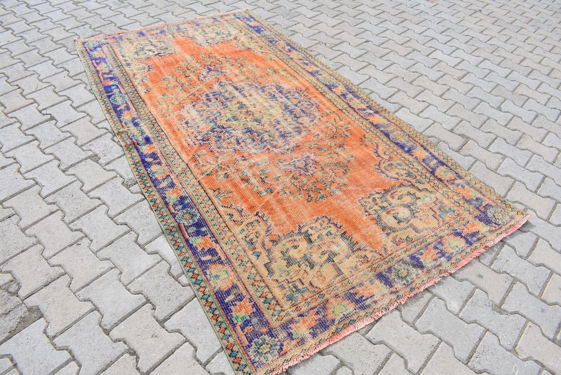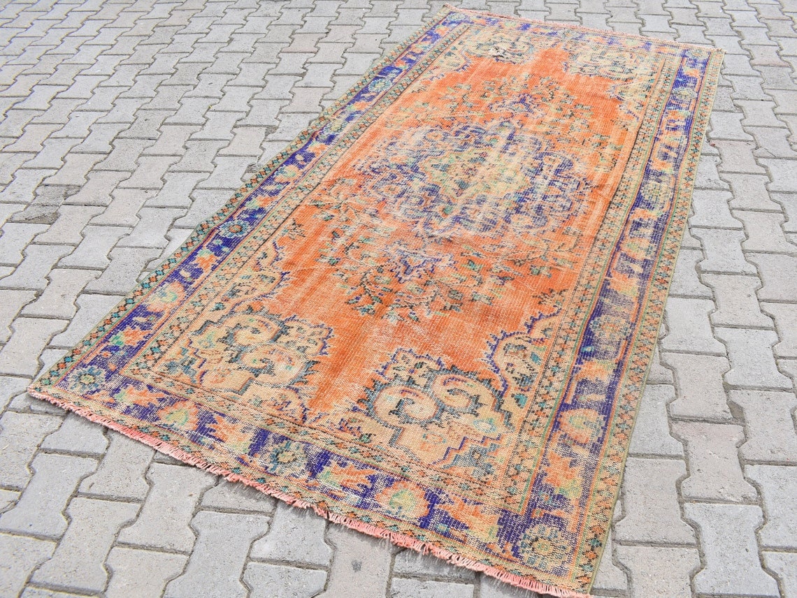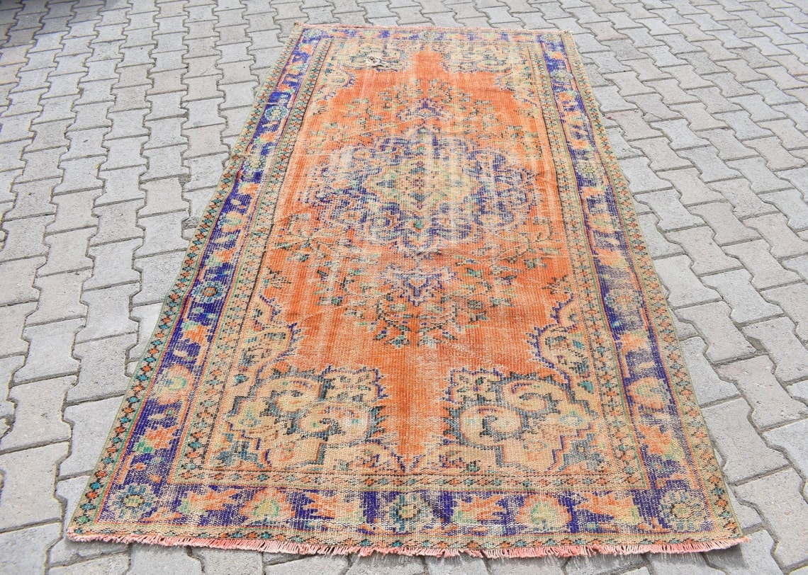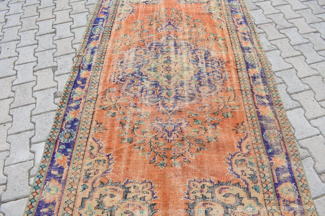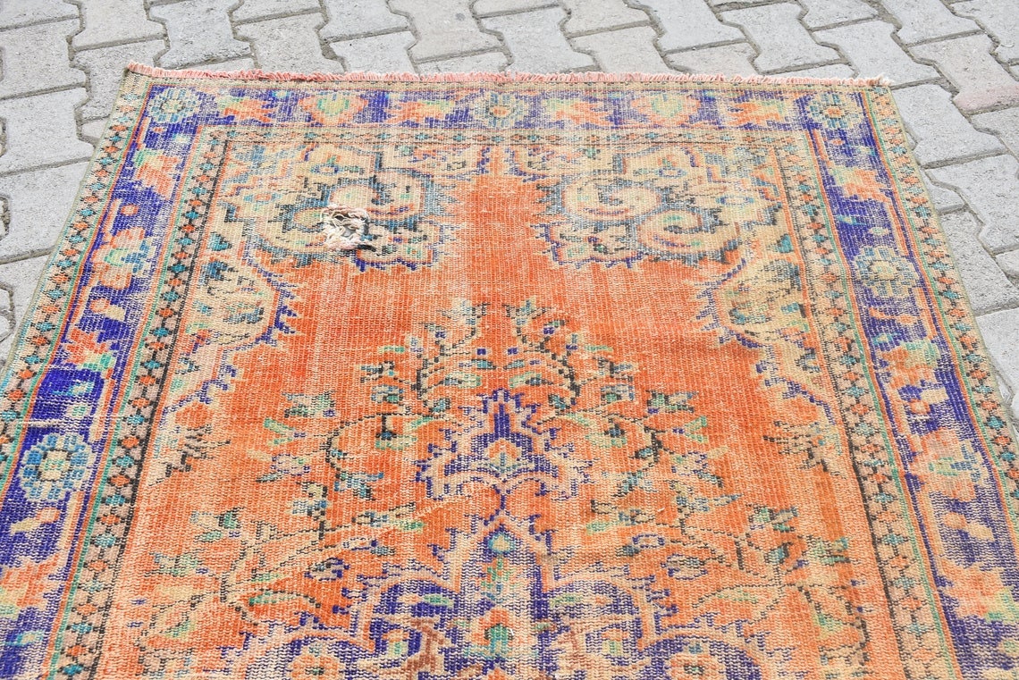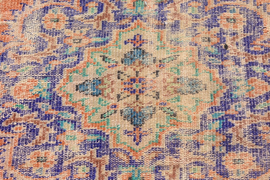 This is a vintage Turkish rug hand-knotted in a small village in Turkey by skilled Anatolian women during around the 1970s. It is made from natural wool (sheep) and dyed using all-natural (vegetable) dyes. Natural materials are more durable than synthetic materials guaranteeing a rug that can last for years while natural dyes provide colors that gets more beautiful as years pass by especially when in direct sunlight.