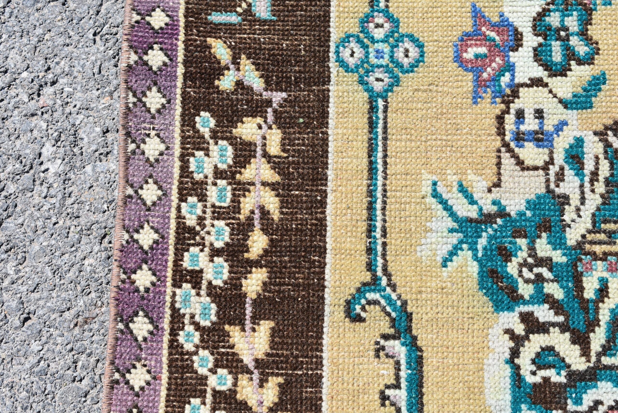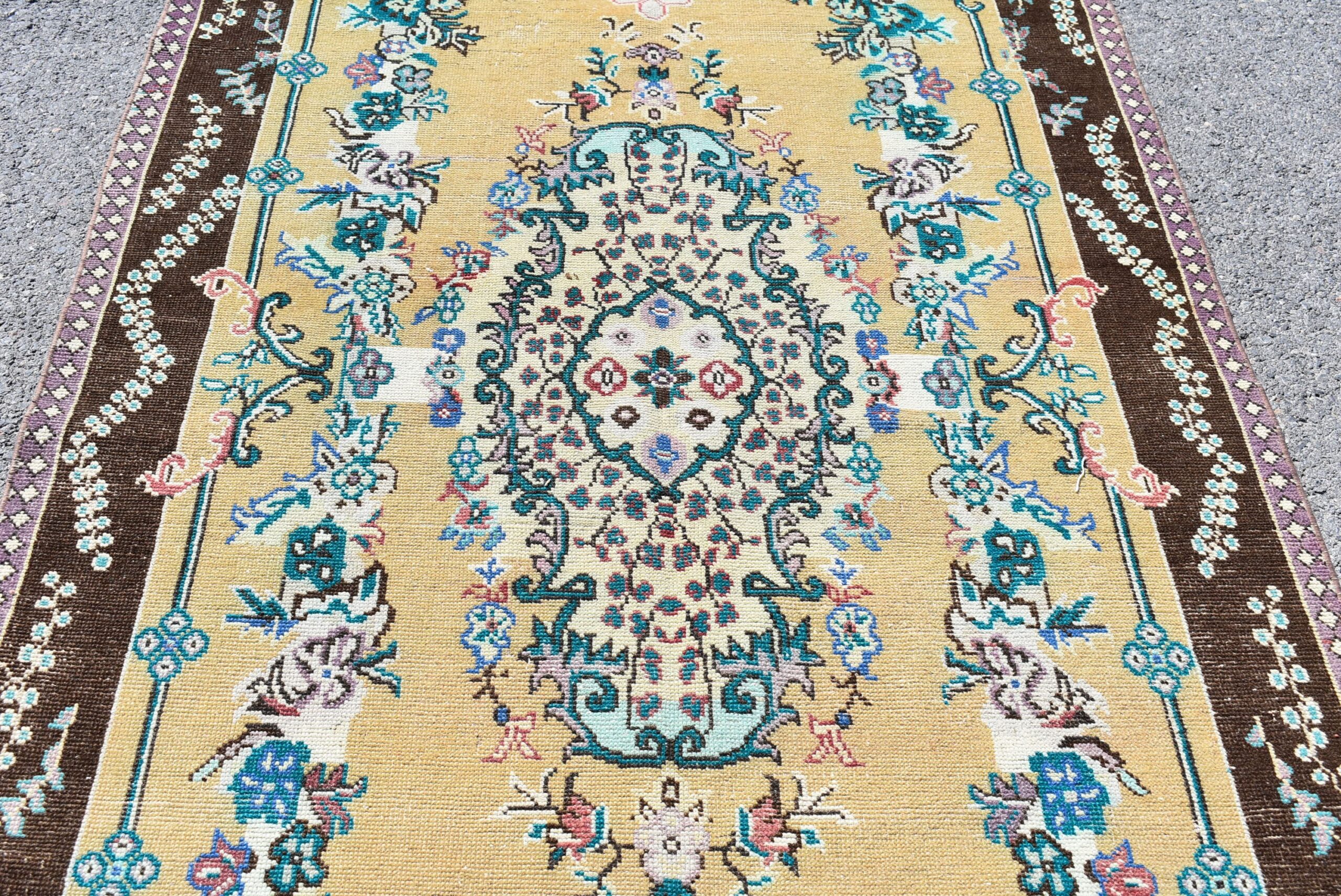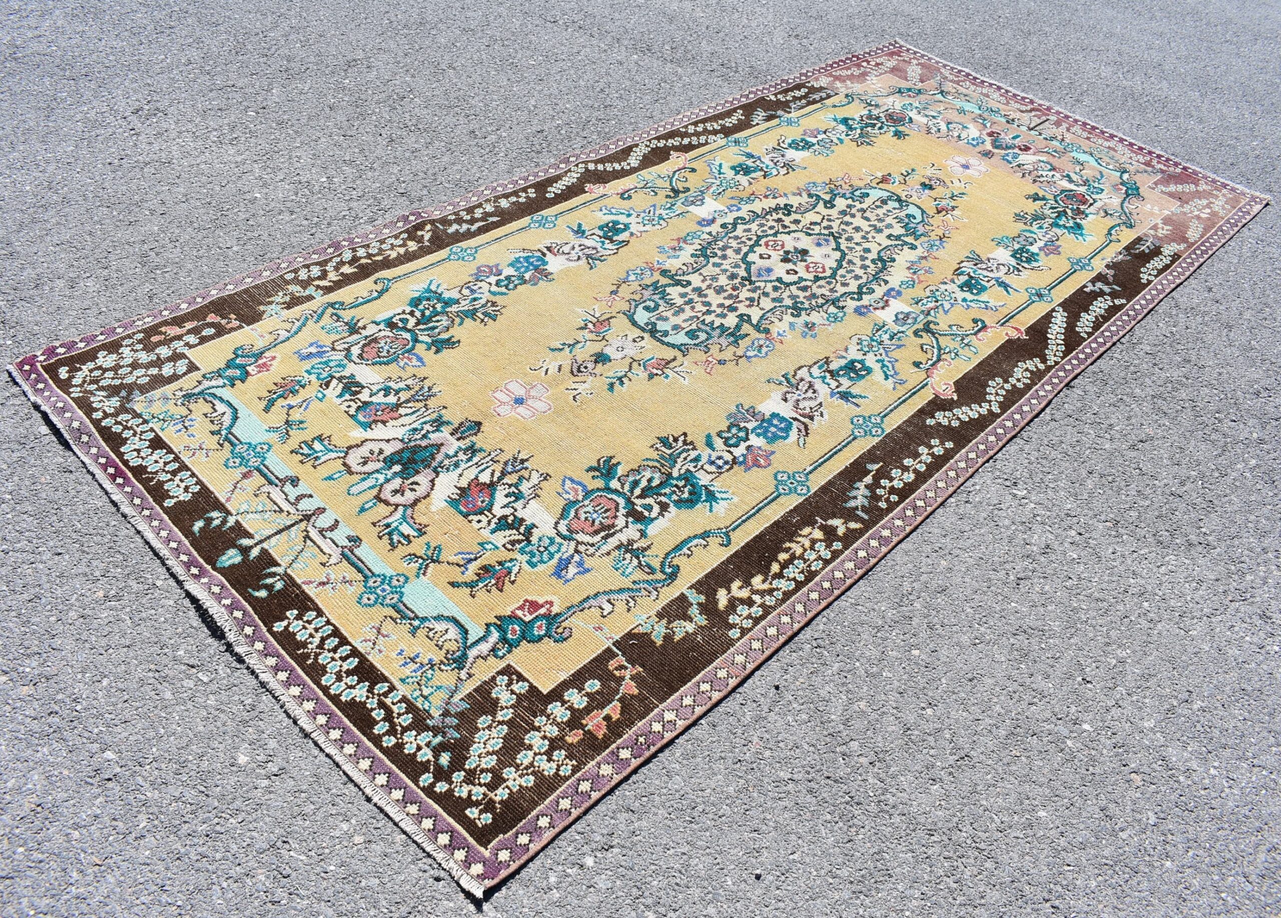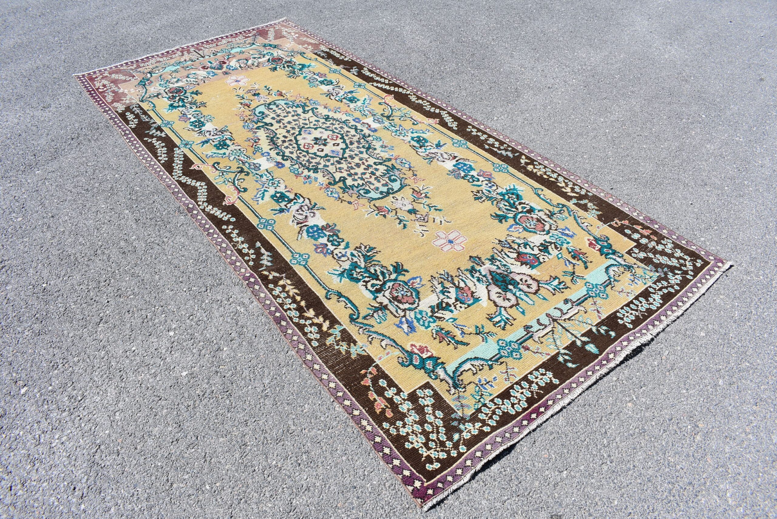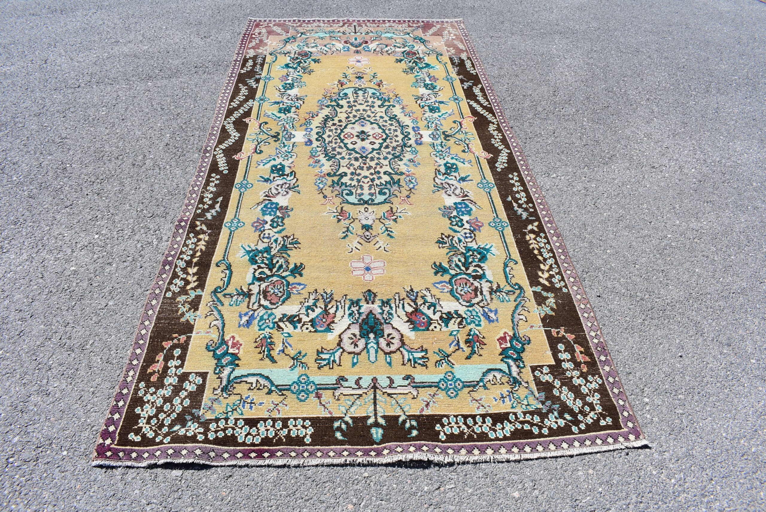 Beautiful and one-of-a-kind 4.5 ft. x 9.8 ft. (136 cm x 299 cm) vintage Turkish rug hand-knotted in Turkey from organic wool. This is an authentic vintage Turkish rug from the 1990s that has worn admirably to perfection.