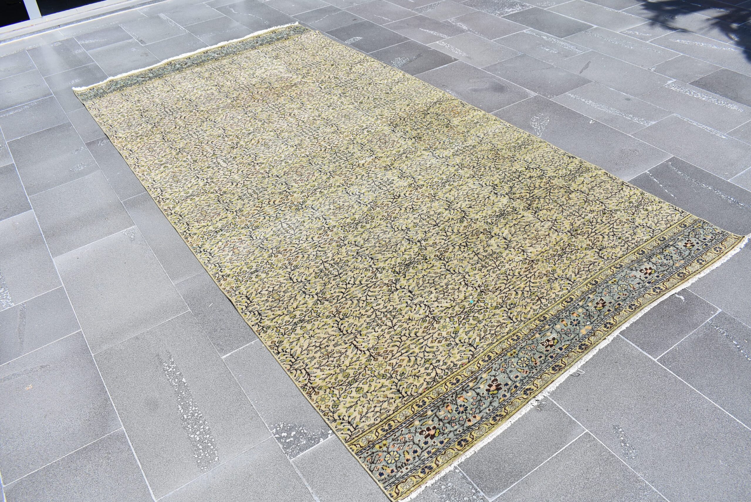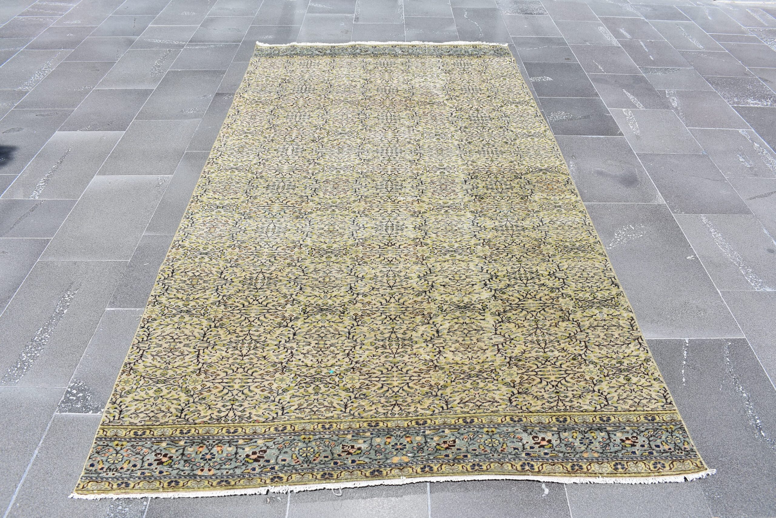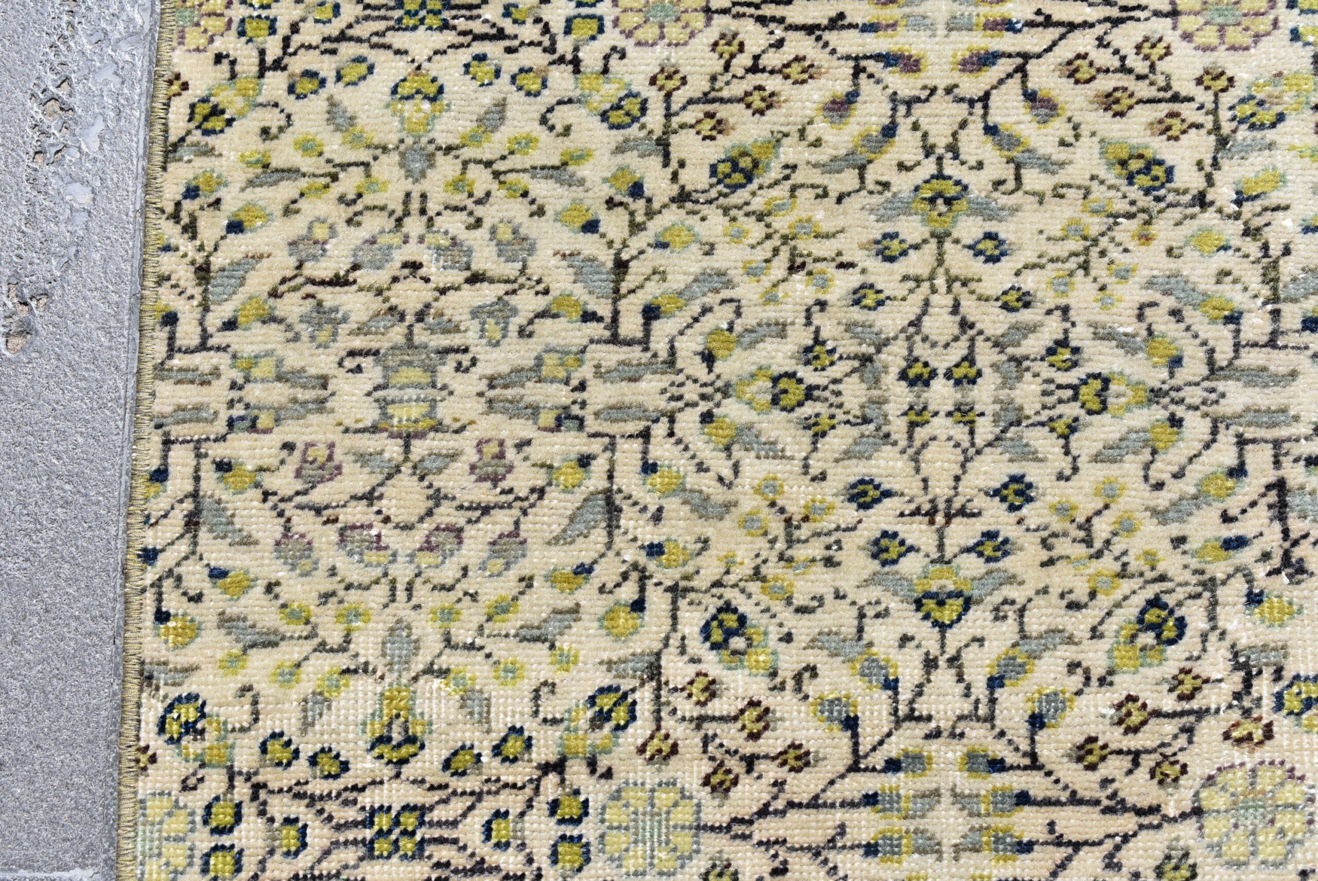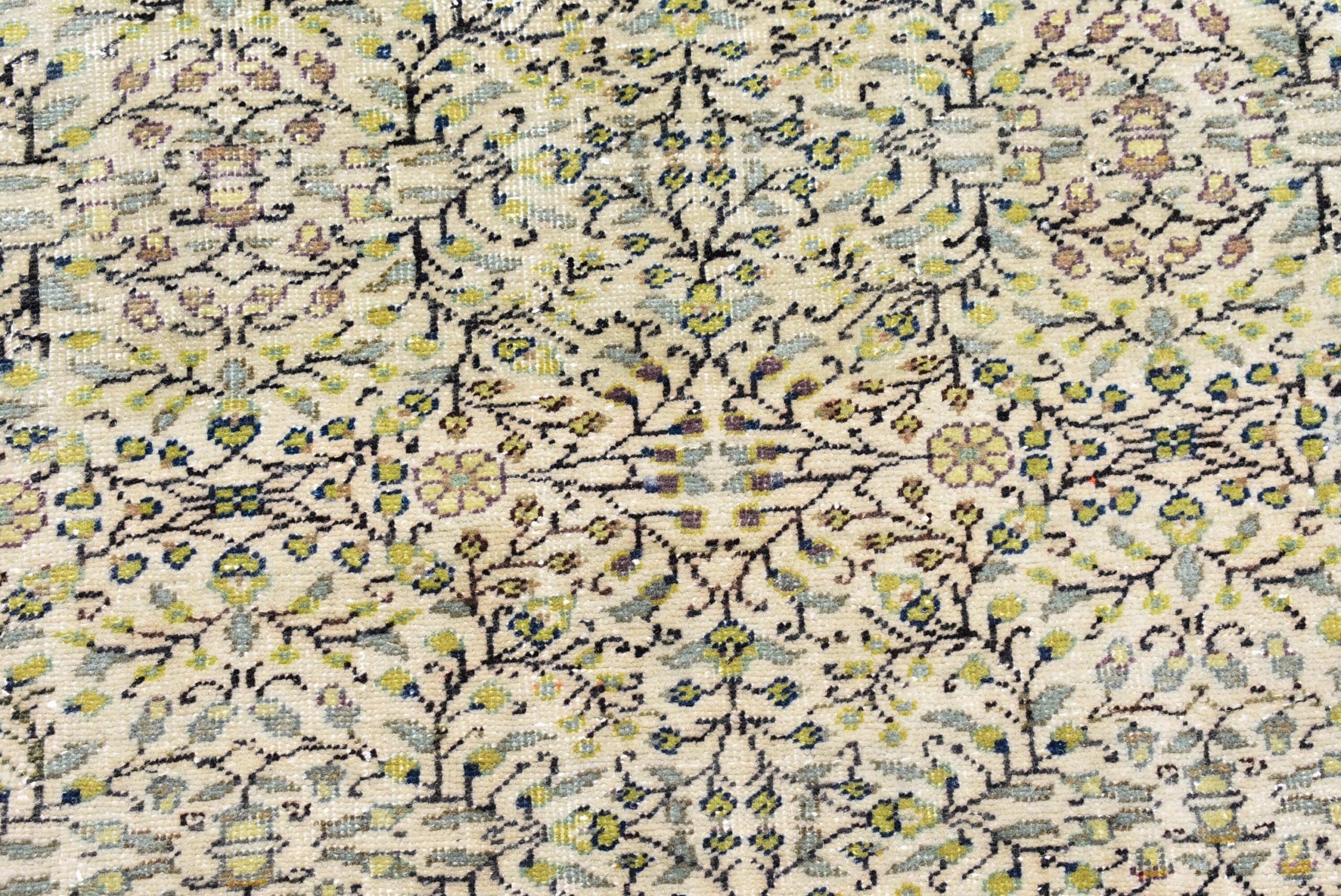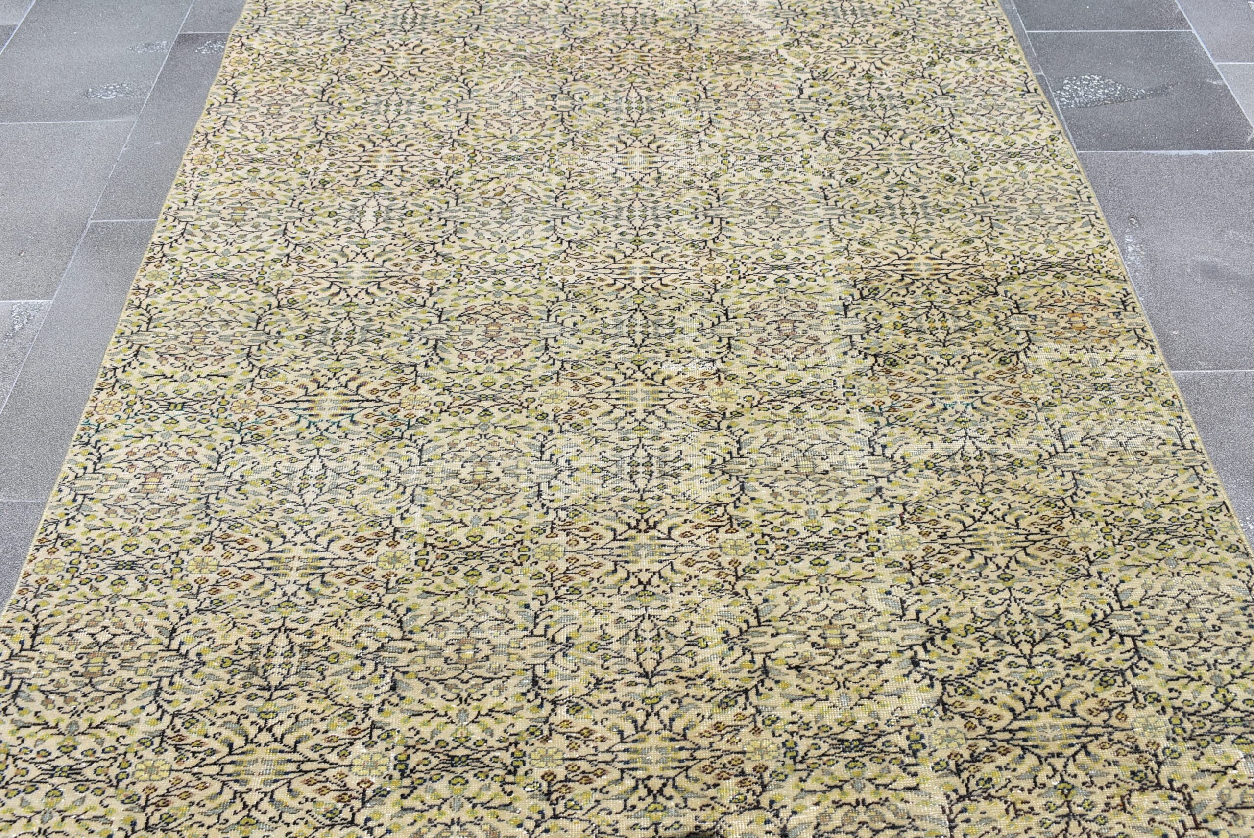 Pretty and one-of-a-kind 4.6 ft. x 9.4 ft. (141 cm x 286 cm) vintage Turkish rug hand-knotted in Turkey from organic wool. This is an authentic vintage Turkish rug from the 1980s that has worn splendidly to perfection.