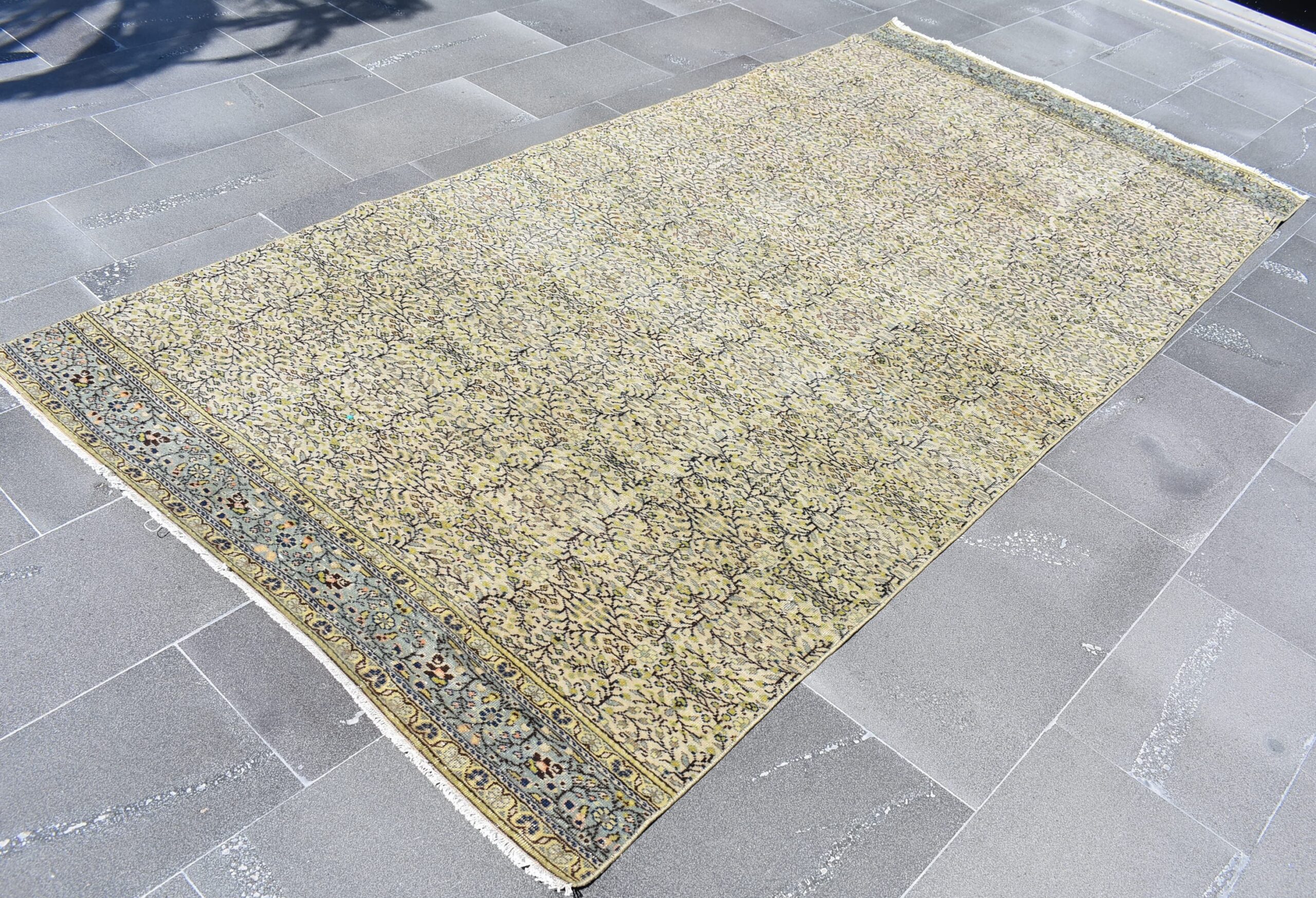 This is a vintage Turkish rug hand-knotted in a small village in Turkey by skilled Anatolian women during around the 1980s. It is made from natural wool (sheep) and dyed using all-natural (vegetable) dyes. Natural materials are more durable than synthetic materials guaranteeing a rug that can last for years while natural dyes provide colors that gets more beautiful as years pass by especially when in direct sunlight.