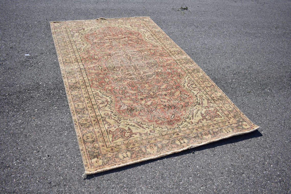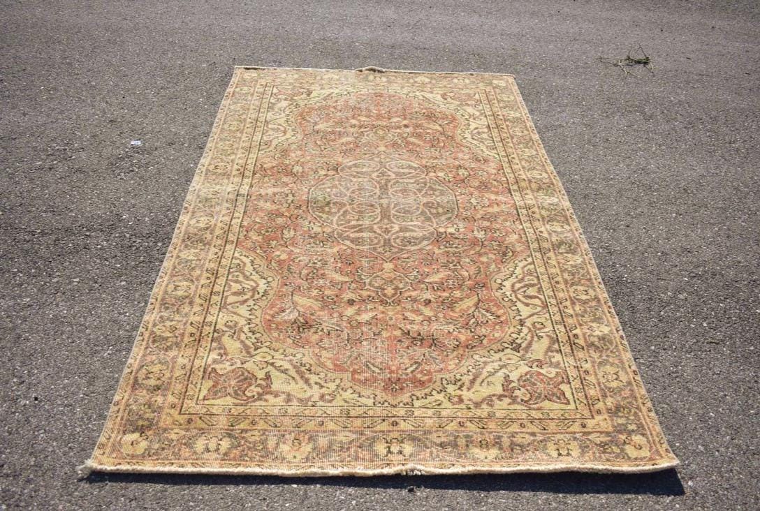 This is a vintage Turkish rug hand-knotted in a small village in Turkey by skilled Anatolian women during around the 1980s. It is made from natural wool (sheep) and dyed using all-natural (vegetable) dyes. Natural materials are more durable than synthetic materials guaranteeing a rug that can last for years while natural dyes provide colors that gets more beautiful as years pass by especially when in direct sunlight.