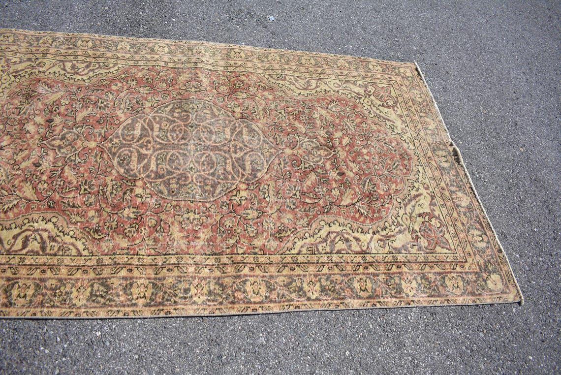 Lovely and unique 4.7 ft. x 8.1 ft. (142 cm x 246 cm) vintage Turkish rug hand-knotted in Turkey from organic wool. This is an authentic vintage Turkish rug from the 1980s that has worn beautifully to perfection.