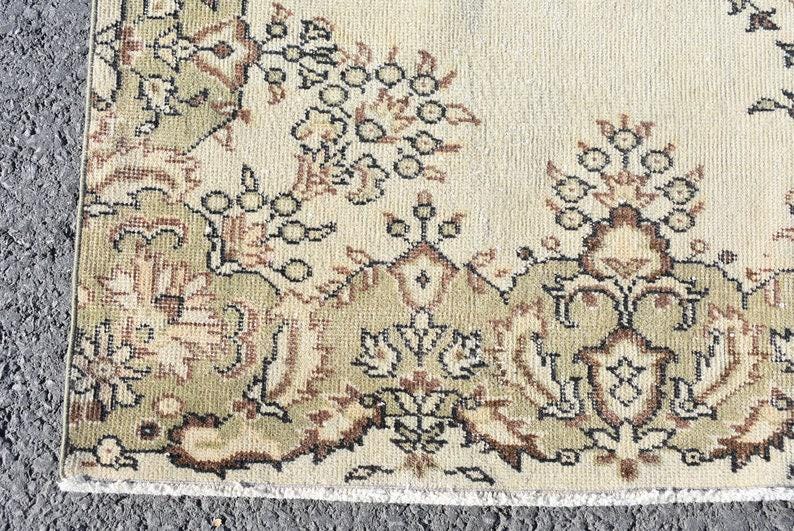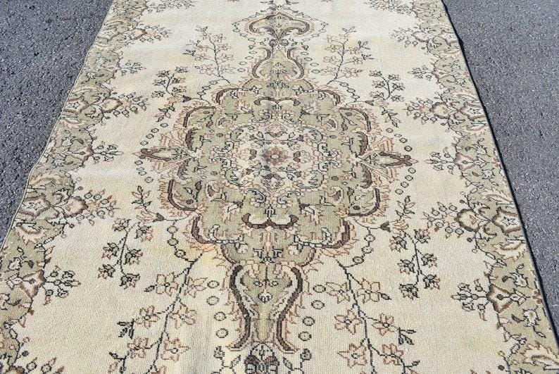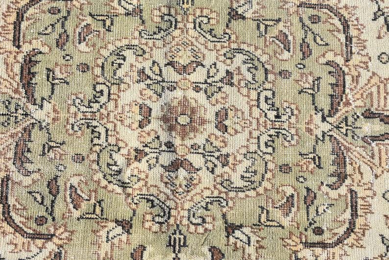 Pretty and one-of-a-kind 4.7 ft. x 8.5 ft. (144 cm x 260 cm) vintage Turkish rug hand-knotted in Turkey from organic wool. This is an authentic vintage Turkish rug from the 1980s that has worn splendidly to perfection.