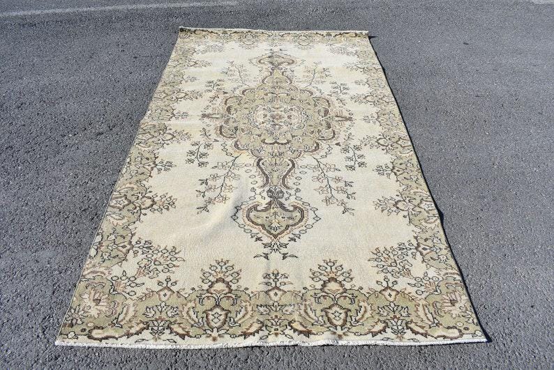 This is a vintage Turkish rug hand-knotted in a small village in Turkey by skilled Anatolian women during around the 1980s. It is made from natural wool (sheep) and dyed using all-natural (vegetable) dyes. Natural materials are more durable than synthetic materials guaranteeing a rug that can last for years while natural dyes provide colors that gets more beautiful as years pass by especially when in direct sunlight.