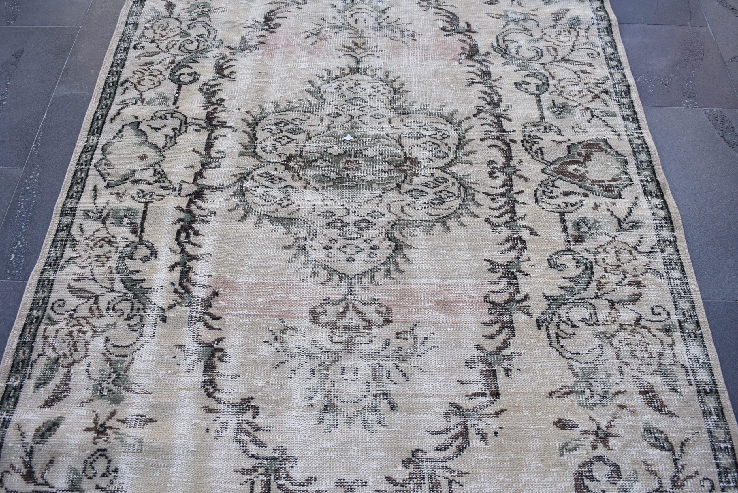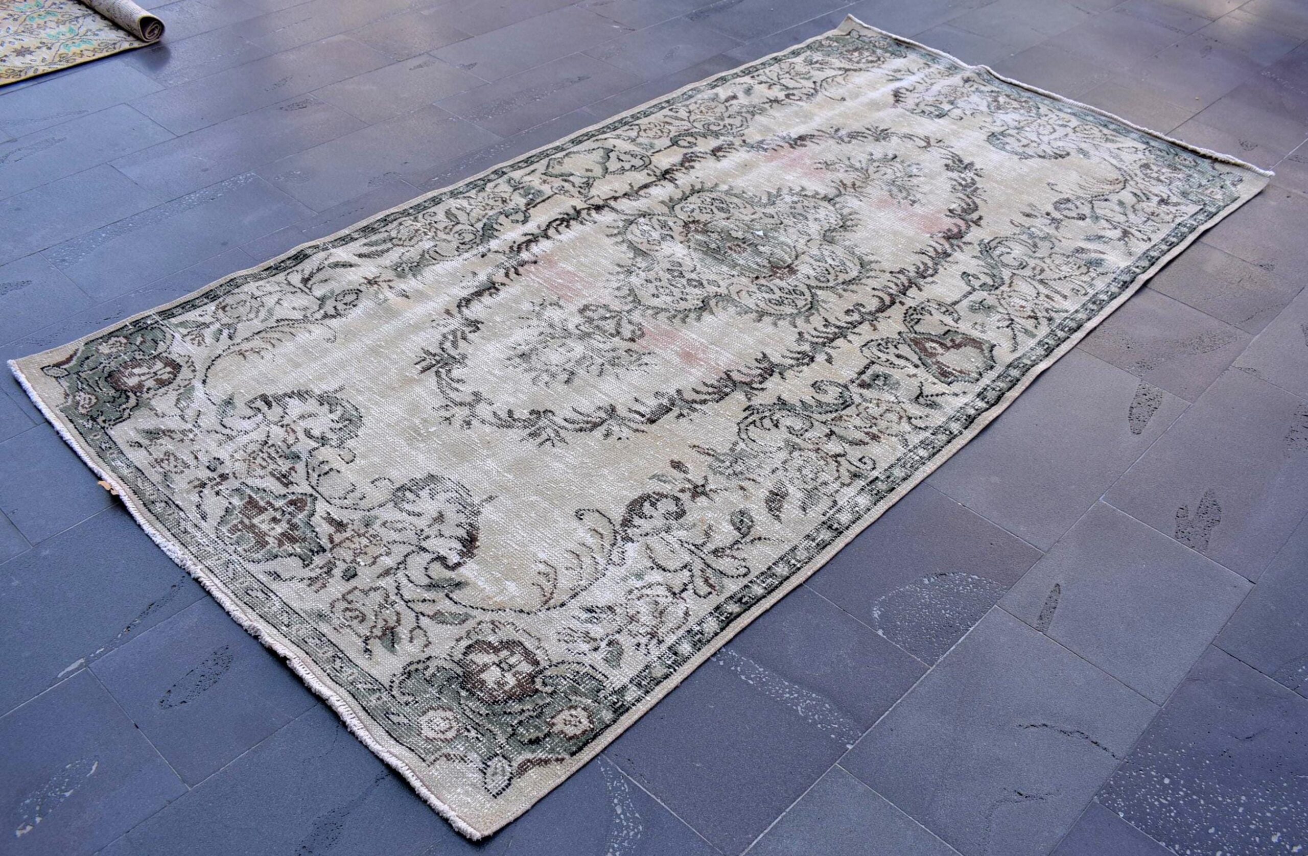 Beautiful and one-of-a-kind 4.7 ft. x 9.1 ft. (143 cm x 276 cm) vintage Turkish rug hand-knotted in Turkey from organic wool. This is an authentic vintage Turkish rug from the 1980s that has worn admirably to perfection.
