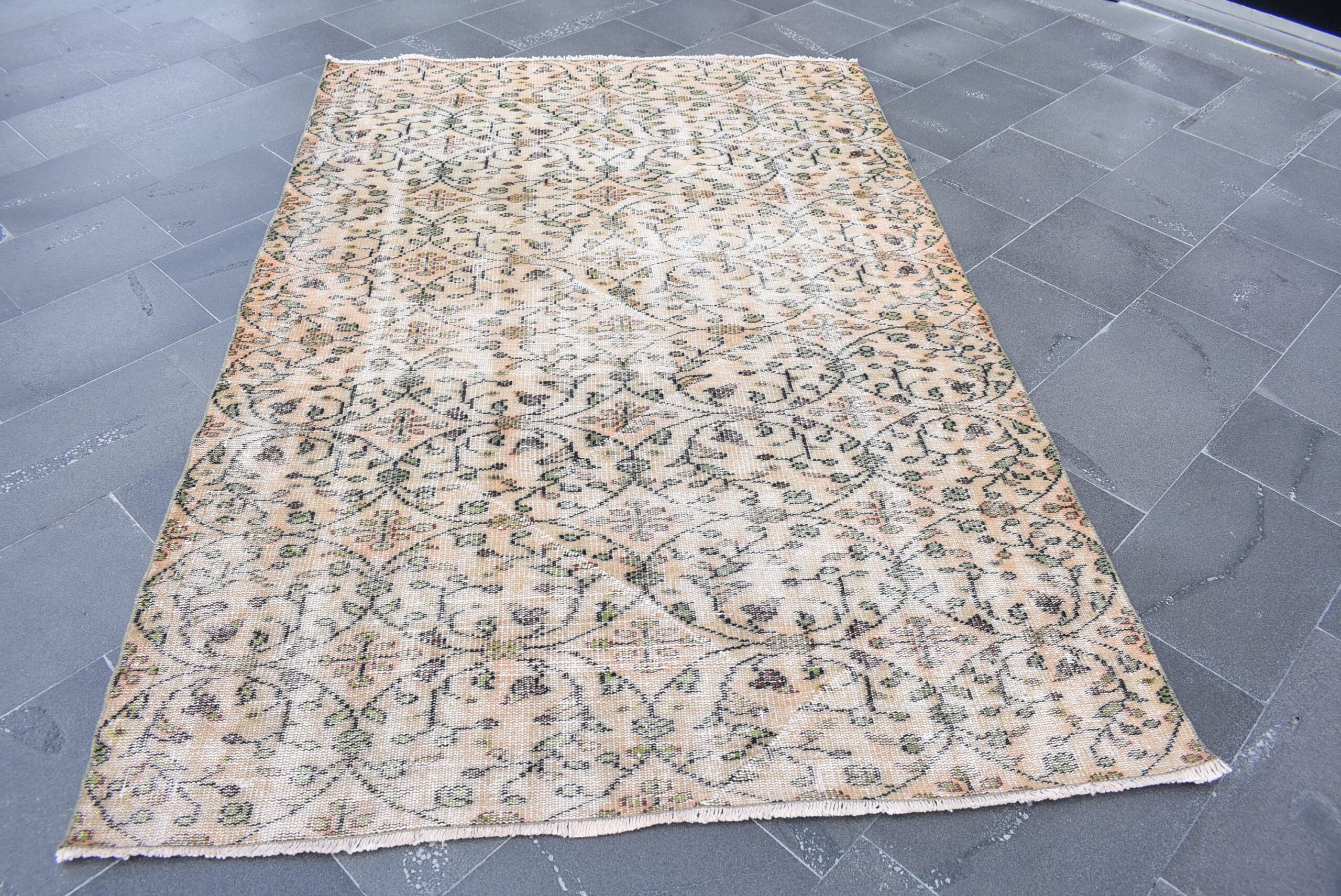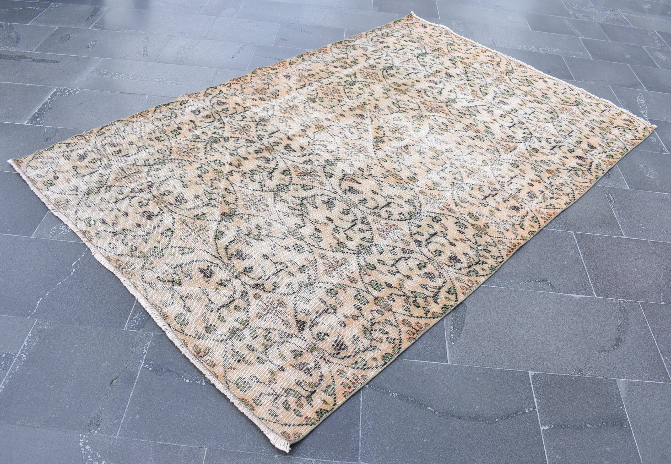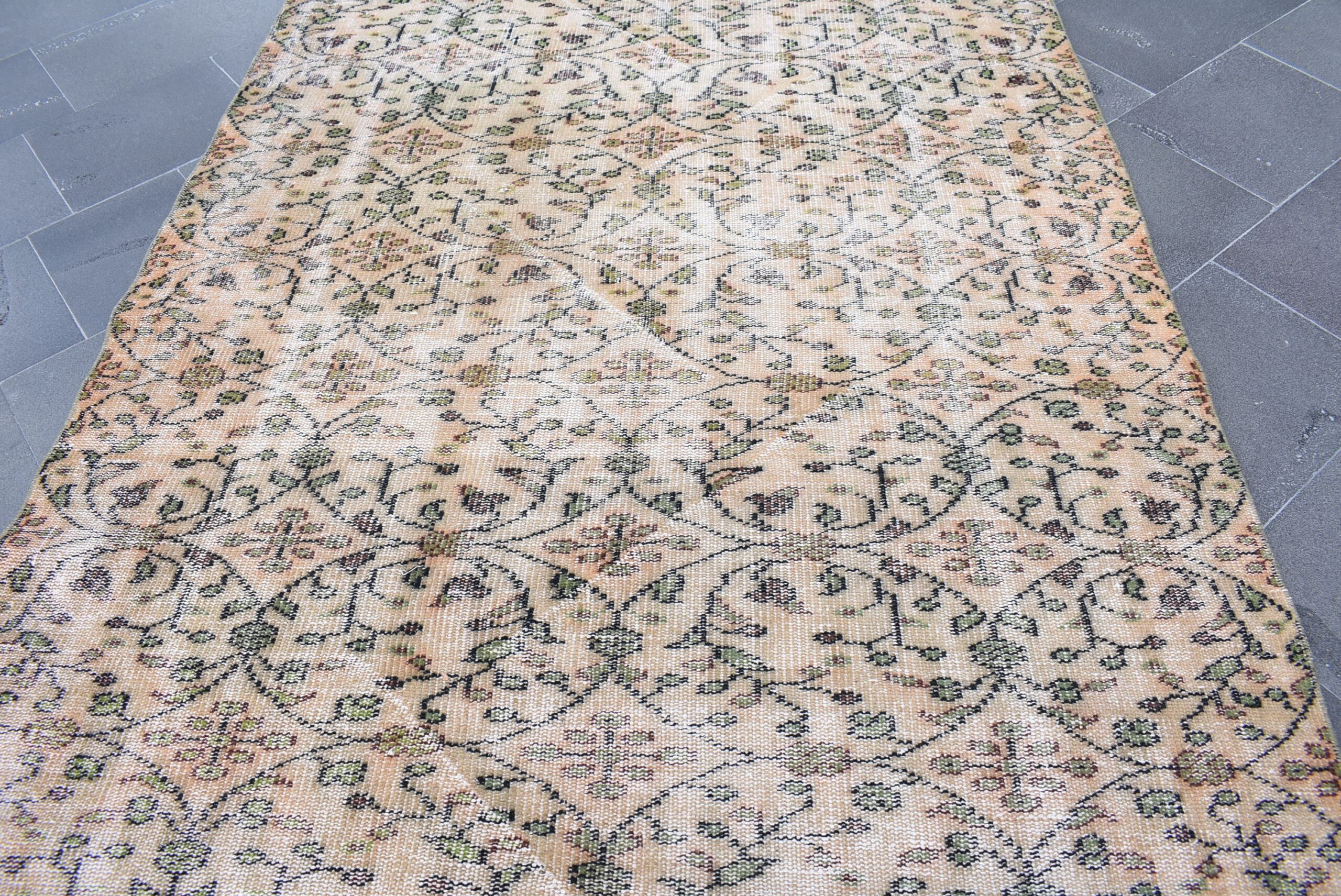 This is a vintage Turkish rug hand-knotted in a small village in Turkey by skilled Anatolian women during around the 1980s. It is made from natural wool (sheep) and dyed using all-natural (vegetable) dyes. Natural materials are more durable than synthetic materials guaranteeing a rug that can last for years while natural dyes provide colors that gets more beautiful as years pass by especially when in direct sunlight.