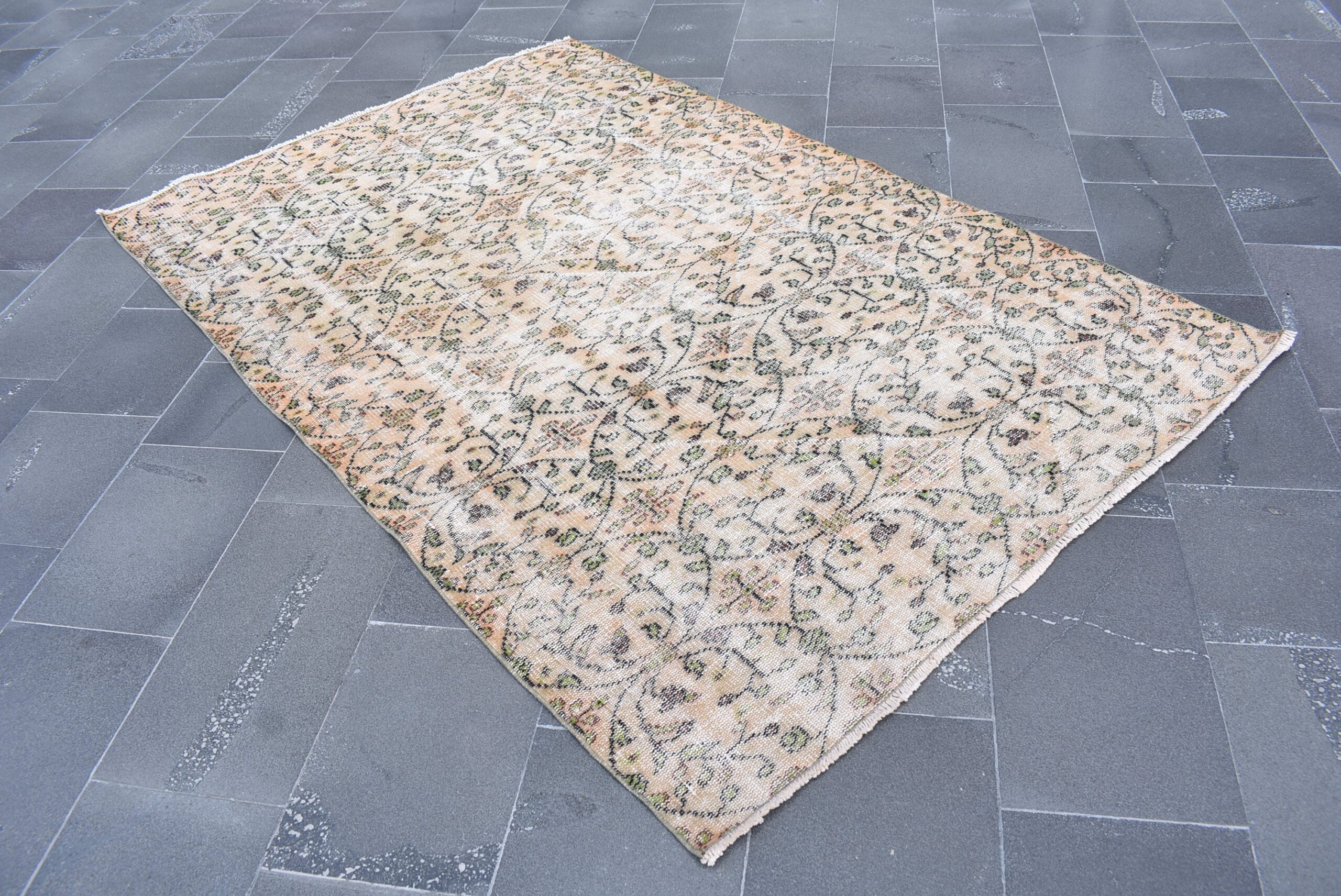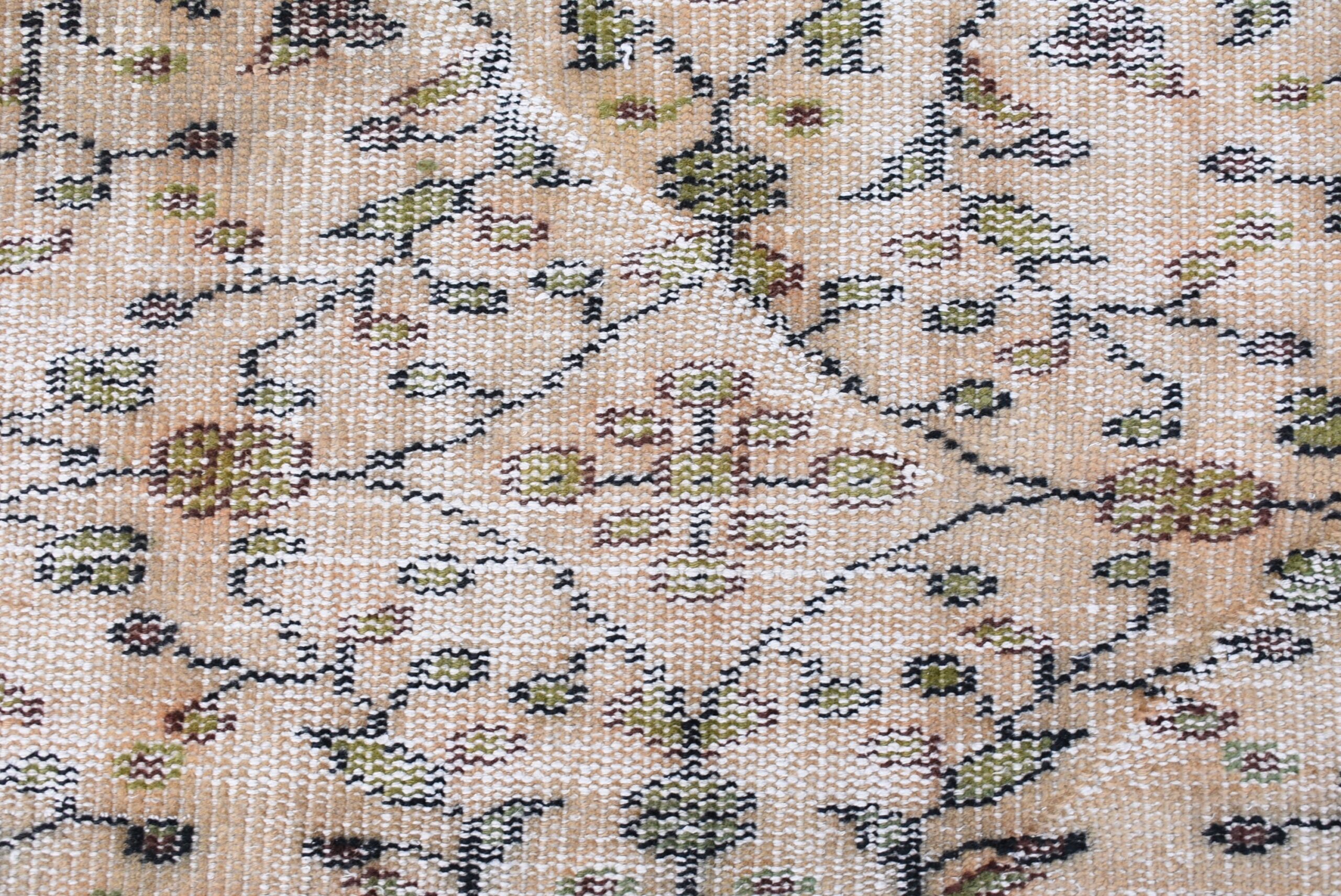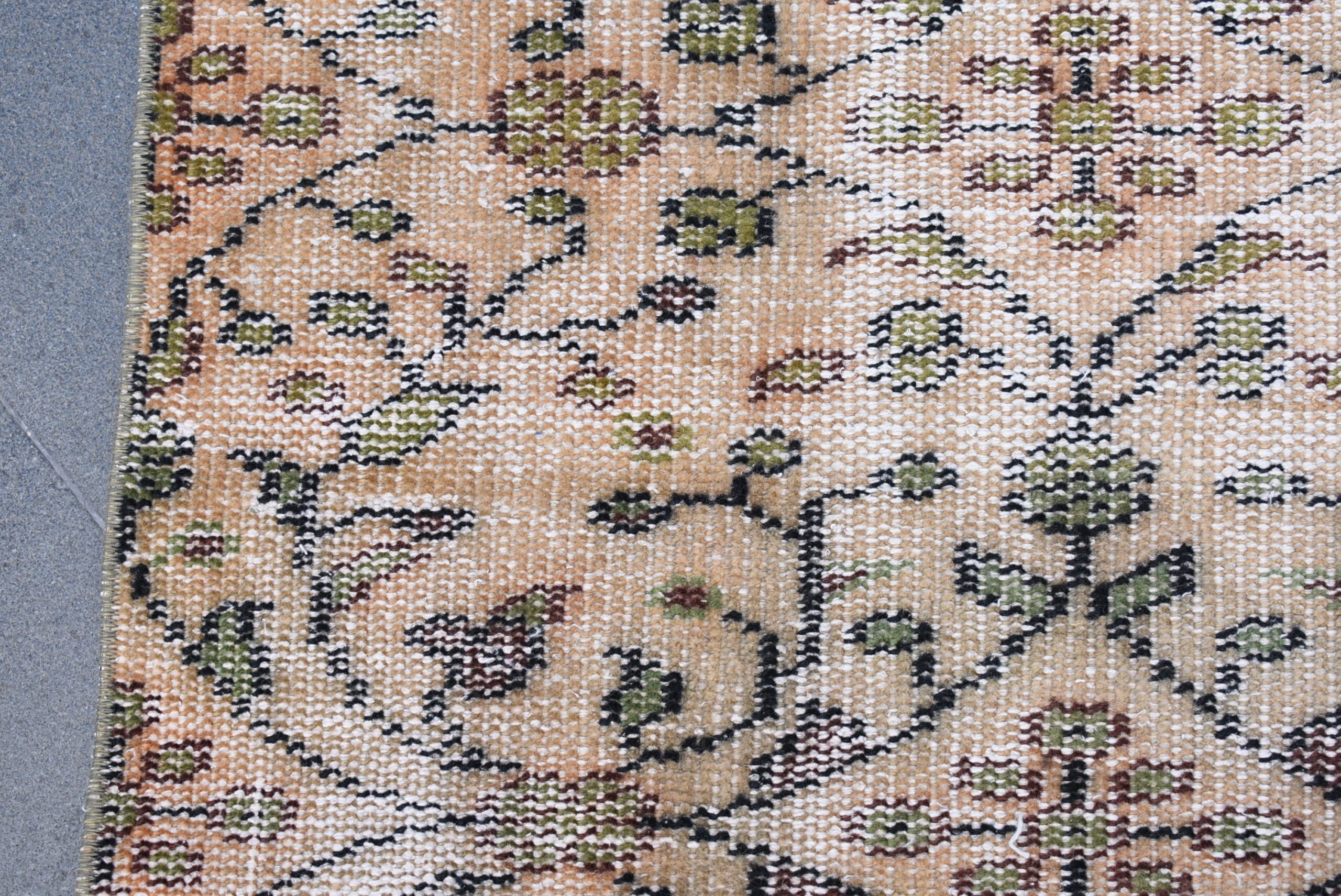 This is a vintage Turkish rug hand-knotted in a small village in Turkey by skilled Anatolian women during around the 1980s. It is made from natural wool (sheep) and dyed using all-natural (vegetable) dyes. Natural materials are more durable than synthetic materials guaranteeing a rug that can last for years while natural dyes provide colors that gets more beautiful as years pass by especially when in direct sunlight.