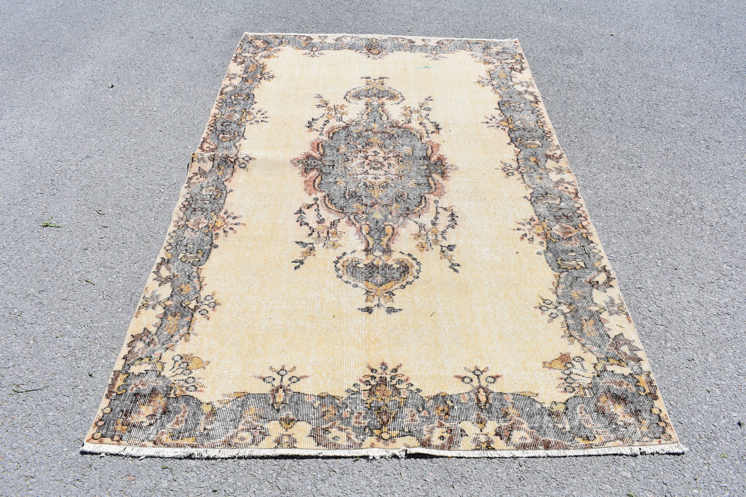 Lovely and unique 4.9 ft. x 8.4 ft. (150 cm x 255 cm) vintage Turkish rug hand-knotted in Turkey from organic wool. This is an authentic vintage Turkish rug from the 1980s that has worn beautifully to perfection.