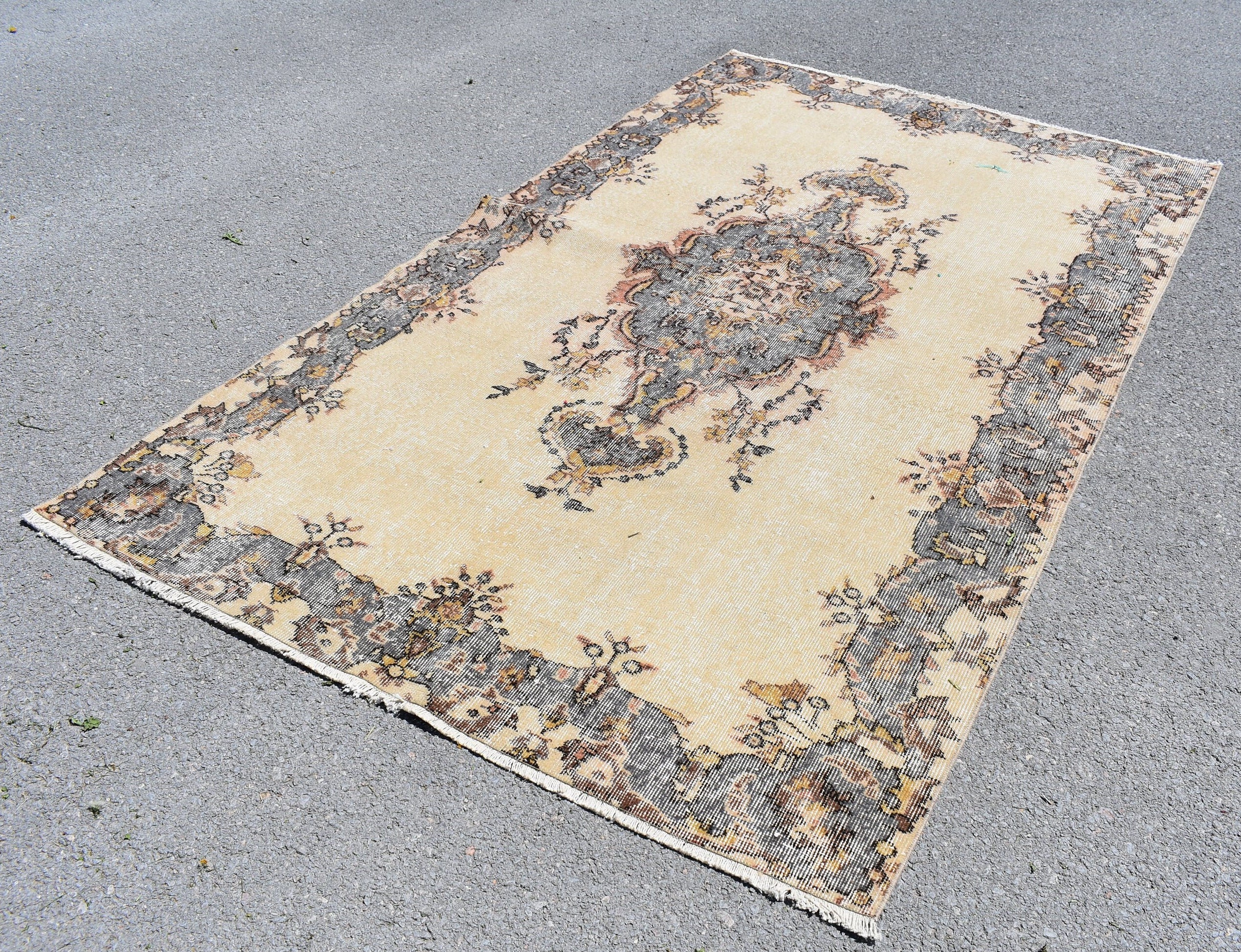 This is a vintage Turkish rug hand-knotted in a small village in Turkey by skilled Anatolian women during around the 1980s. It is made from natural wool (sheep) and dyed using all-natural (vegetable) dyes. Natural materials are more durable than synthetic materials guaranteeing a rug that can last for years while natural dyes provide colors that gets more beautiful as years pass by especially when in direct sunlight.