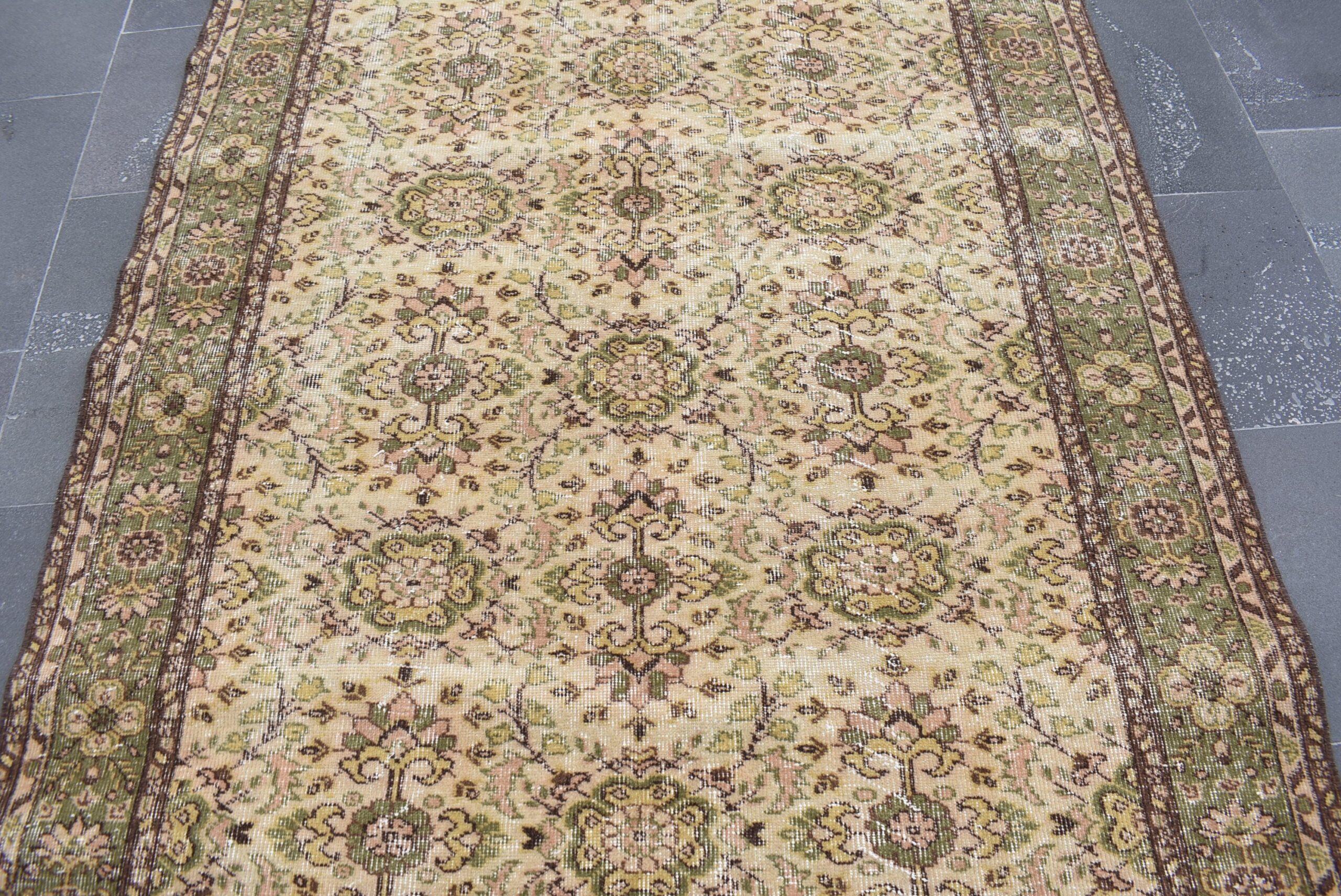 Lovely and unique 4.9 ft. x 8.5 ft. (148 cm x 260 cm) vintage Turkish rug hand-knotted in Turkey from organic wool. This is an authentic vintage Turkish rug from the 1990s that has worn beautifully to perfection.