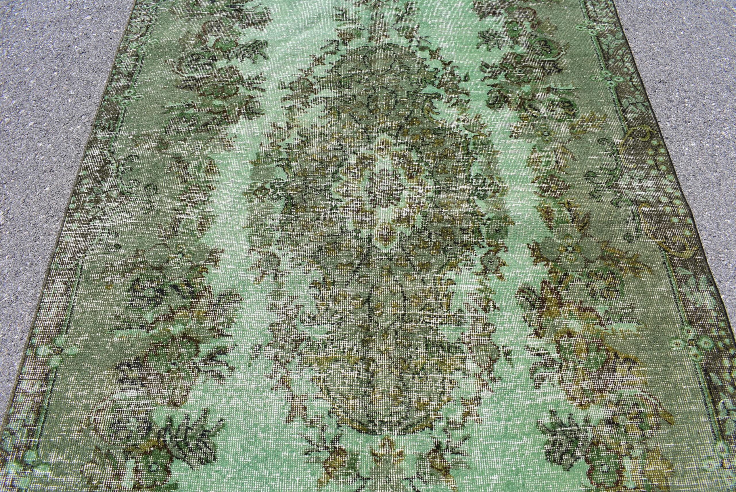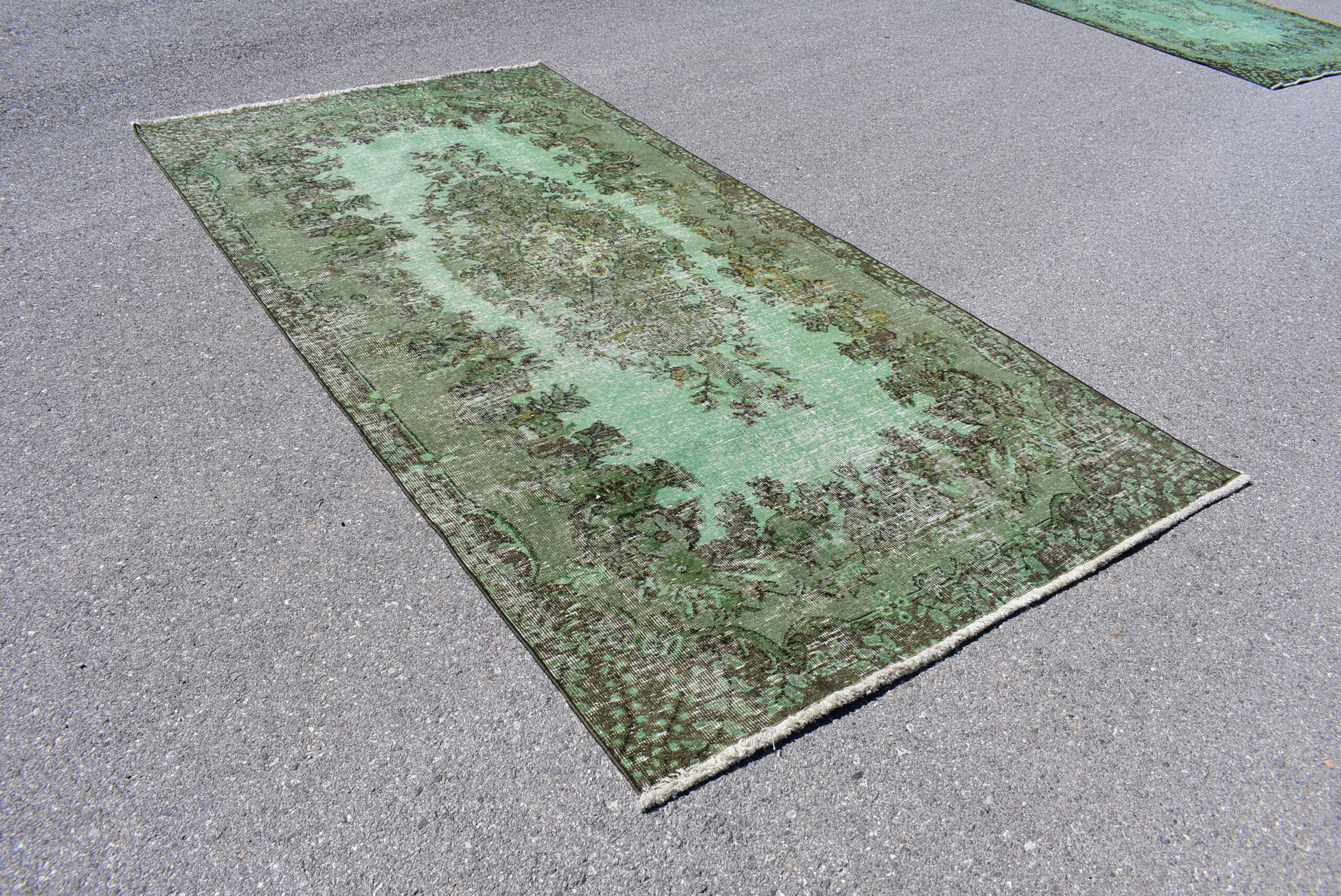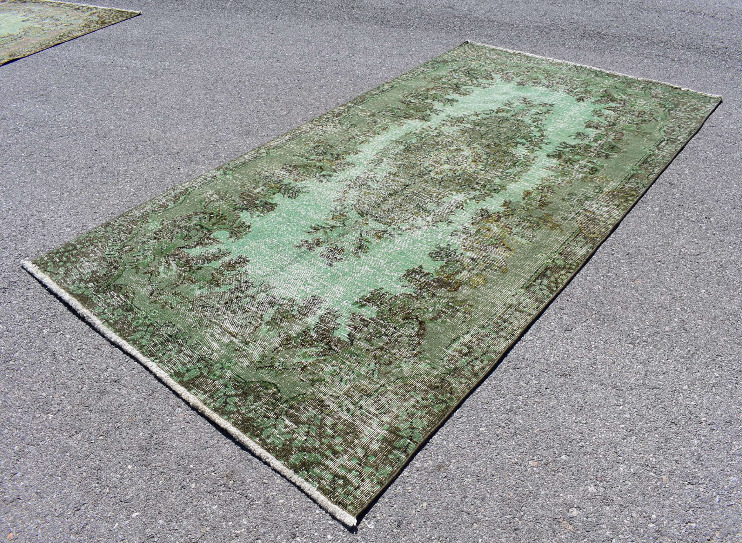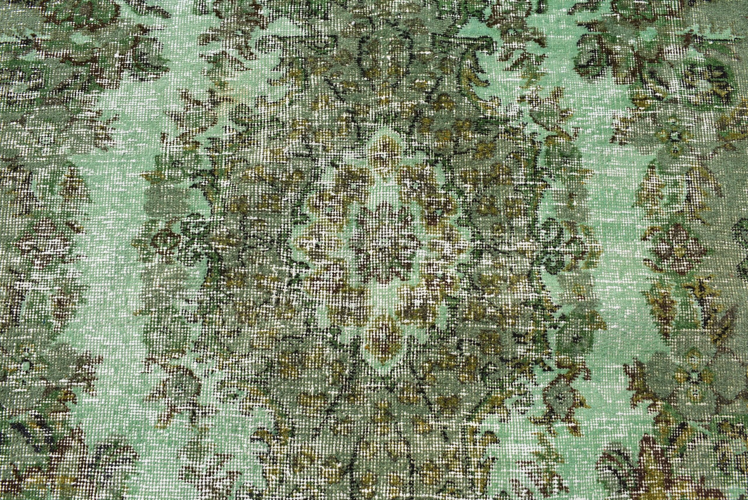 This is a vintage overdyed rug made through over-dyeing an authentic vintage Turkish rug using natural (vegetable) dyes. This rug originated in a small village in Turkey where it was hand-knotted from natural wool (sheep) by skilled Anatolian women during around the 1980s. Natural materials are more durable than synthetic materials guaranteeing a rug that can last for years while natural dyes provide colors that gets more beautiful as years pass by especially when in direct sunlight.