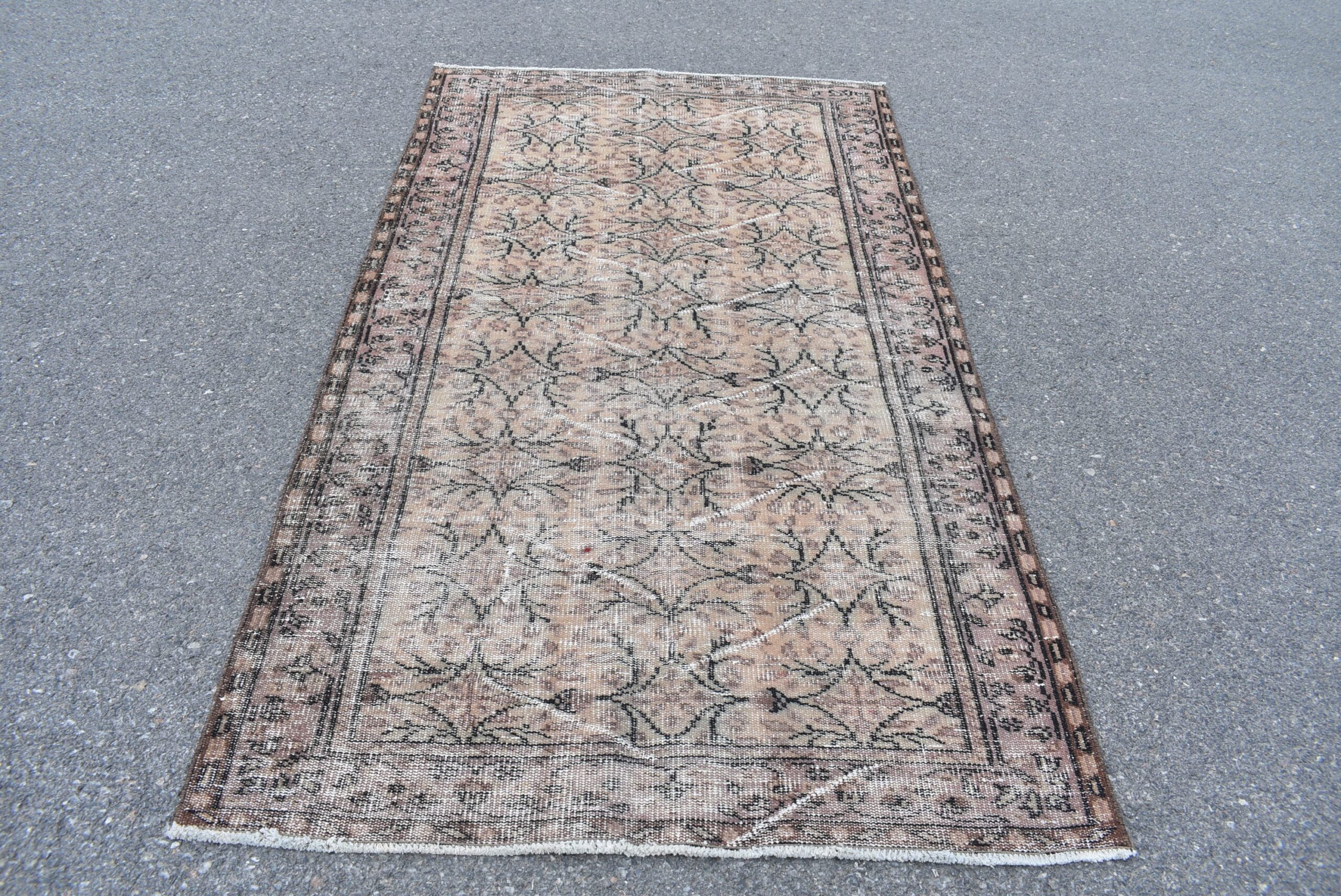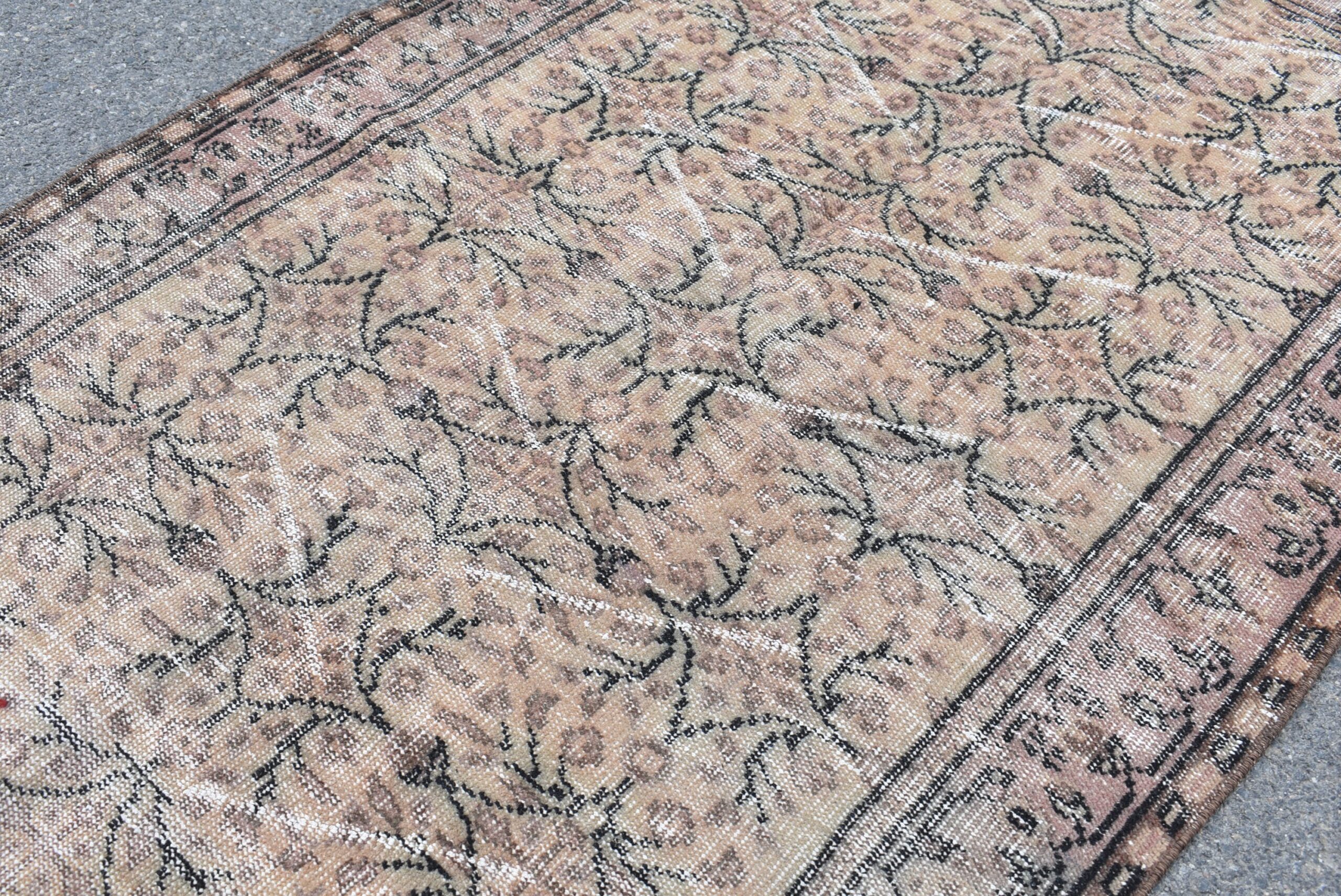 Lovely and unique 4 ft. x 7.1 ft. (121 cm x 217 cm) vintage Turkish rug hand-knotted in Turkey from organic wool. This is an authentic vintage Turkish rug from the 1980s that has worn beautifully to perfection.