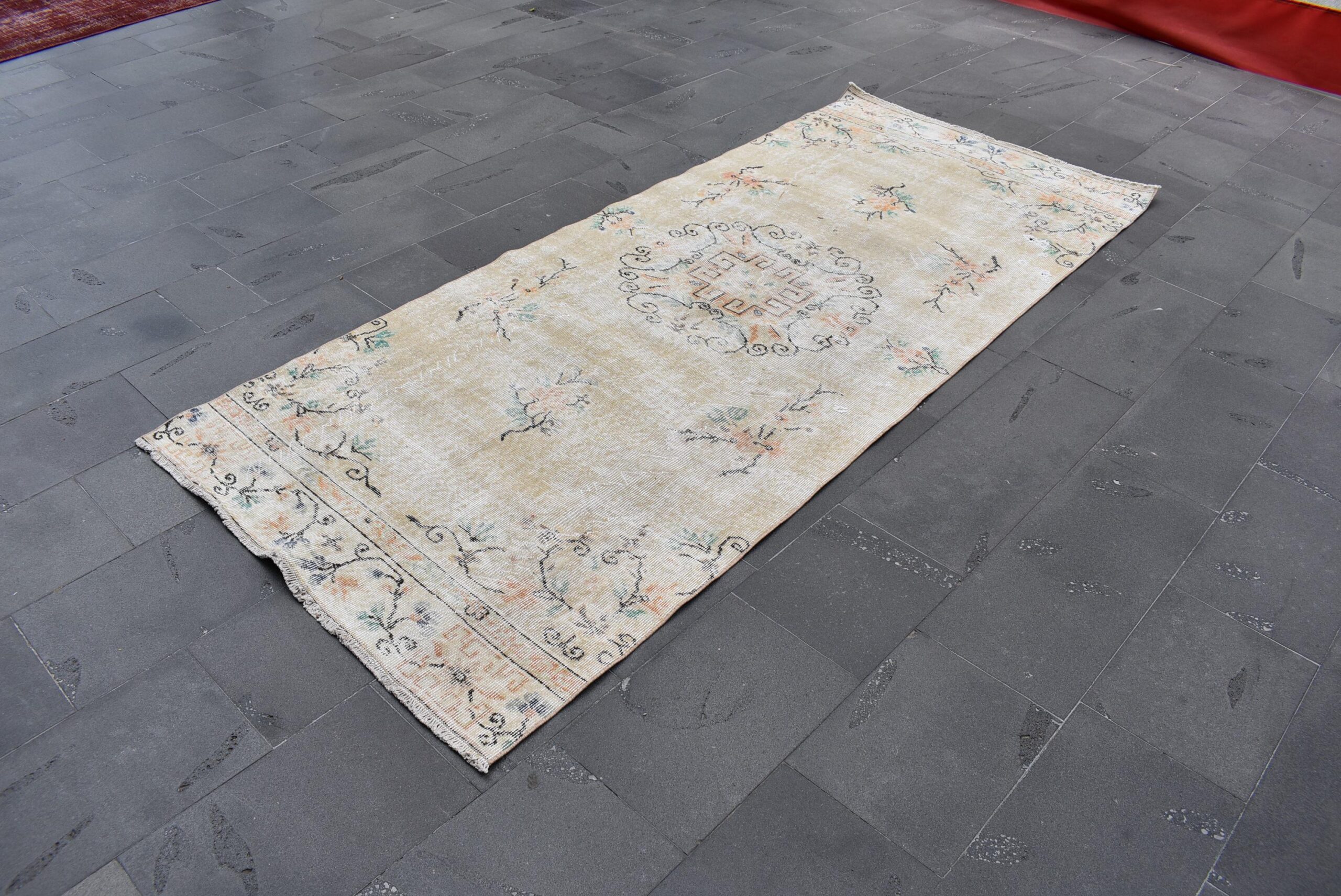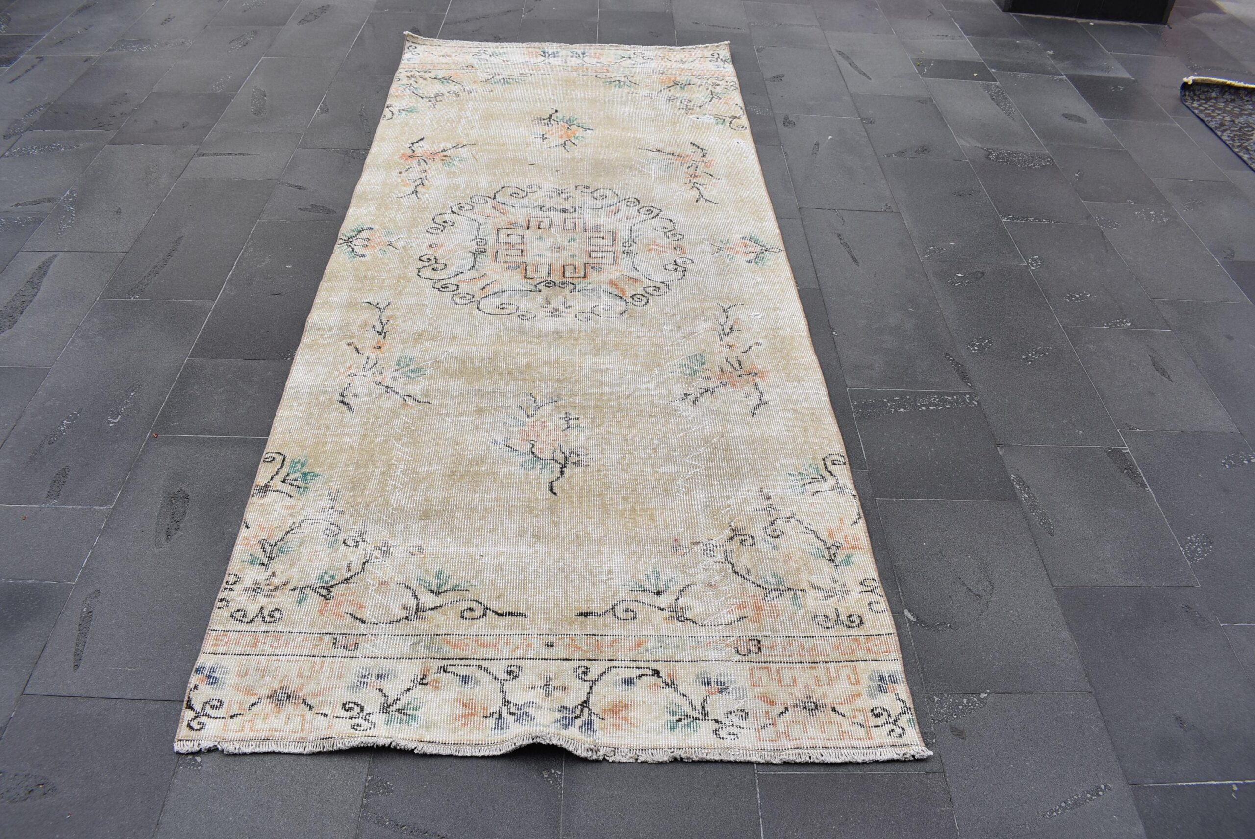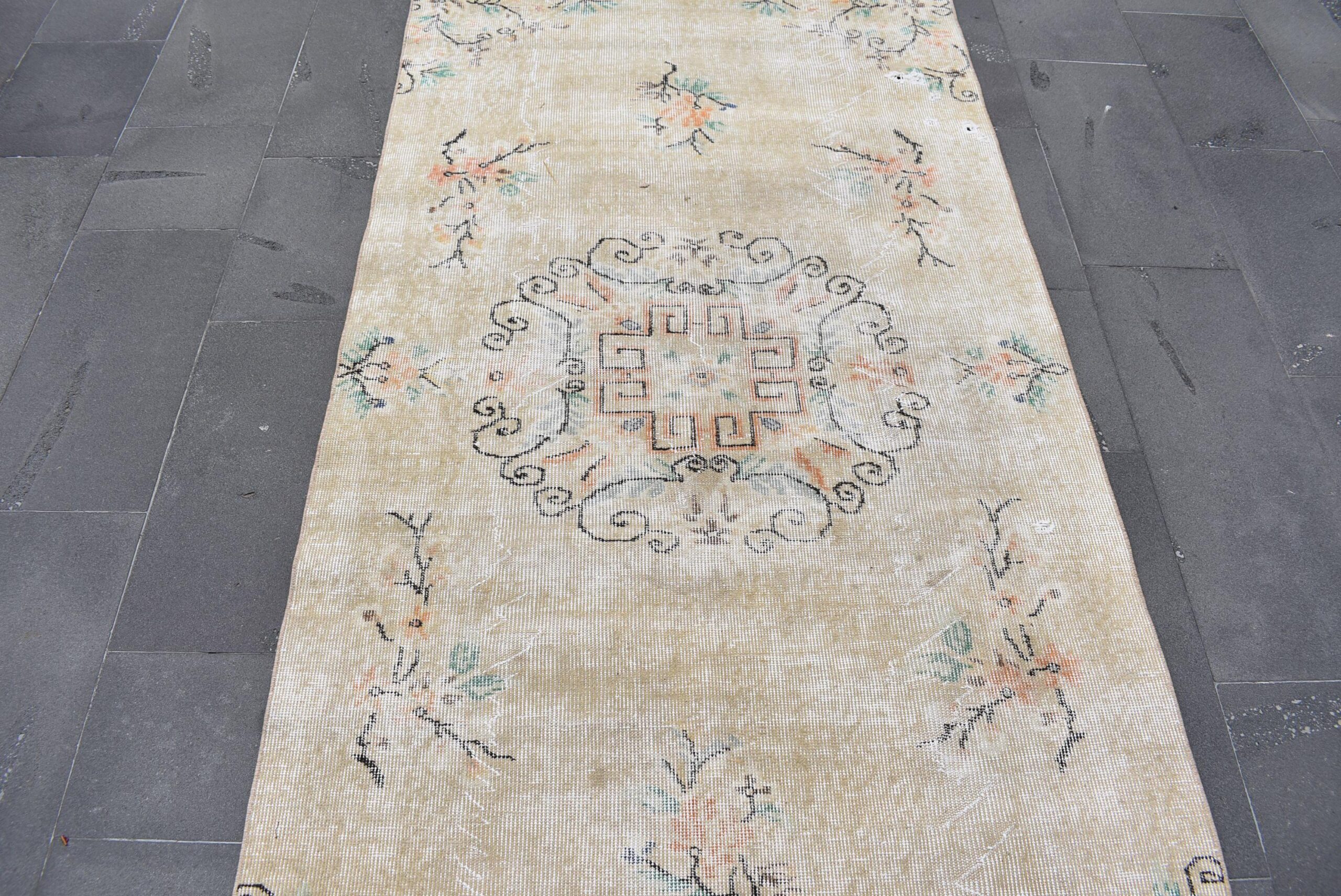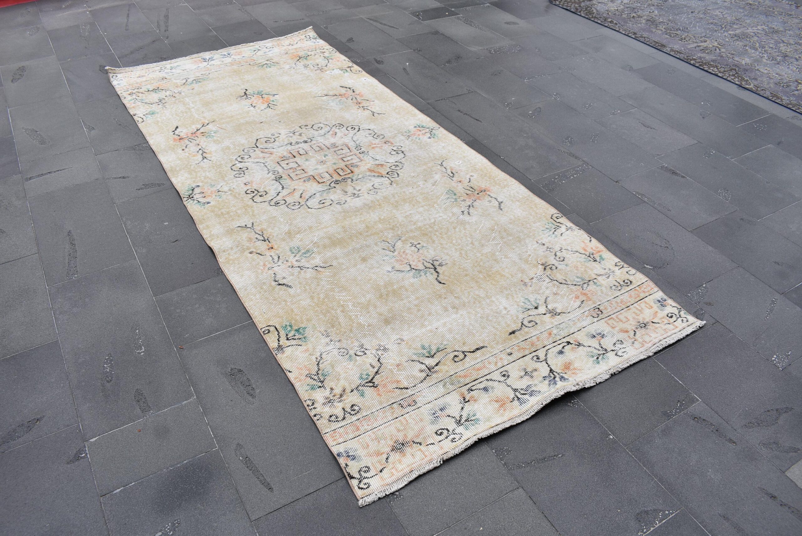 Pretty and one-of-a-kind 4 ft. x 9 ft. (123 cm x 273 cm) vintage Turkish rug hand-knotted in Turkey from organic wool. This is an authentic vintage Turkish rug from the 1980s that has worn splendidly to perfection.