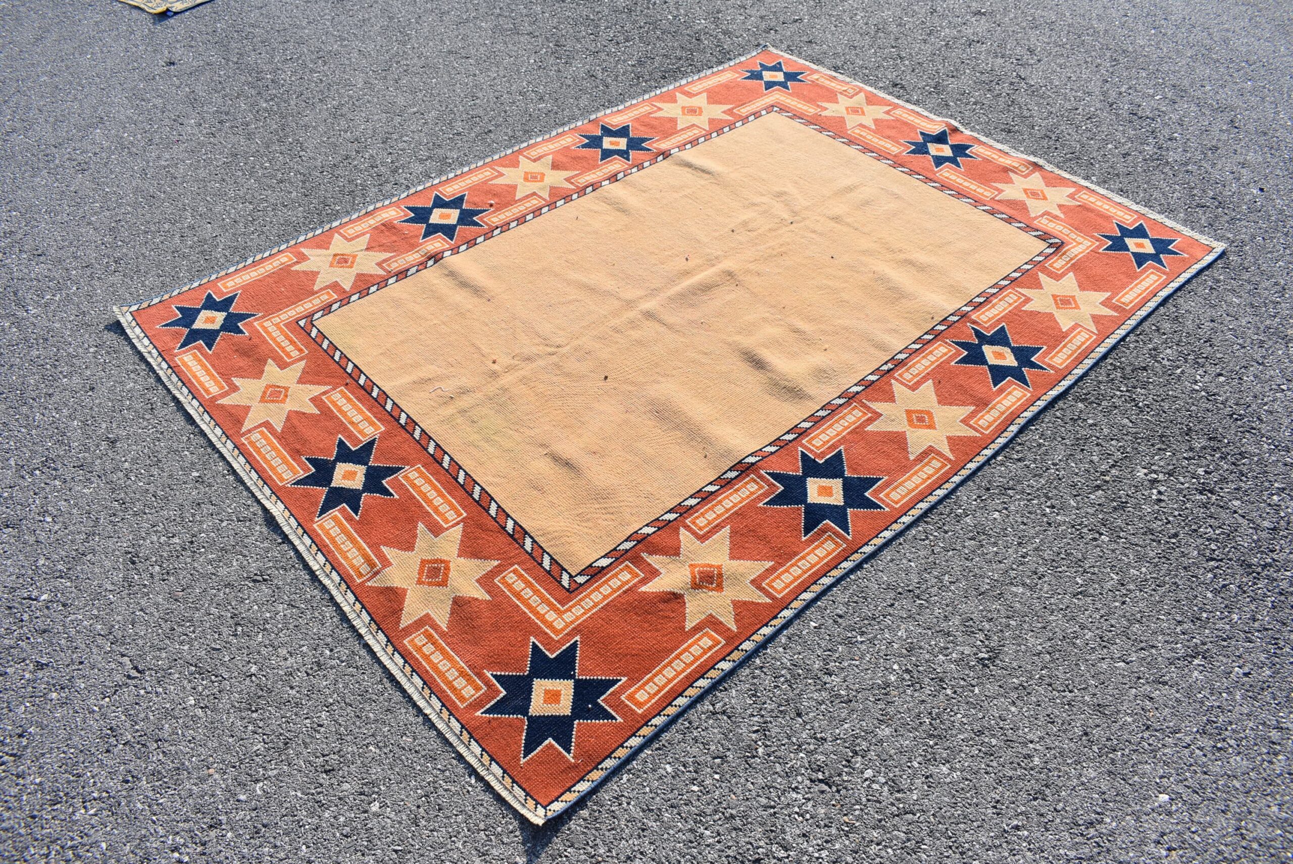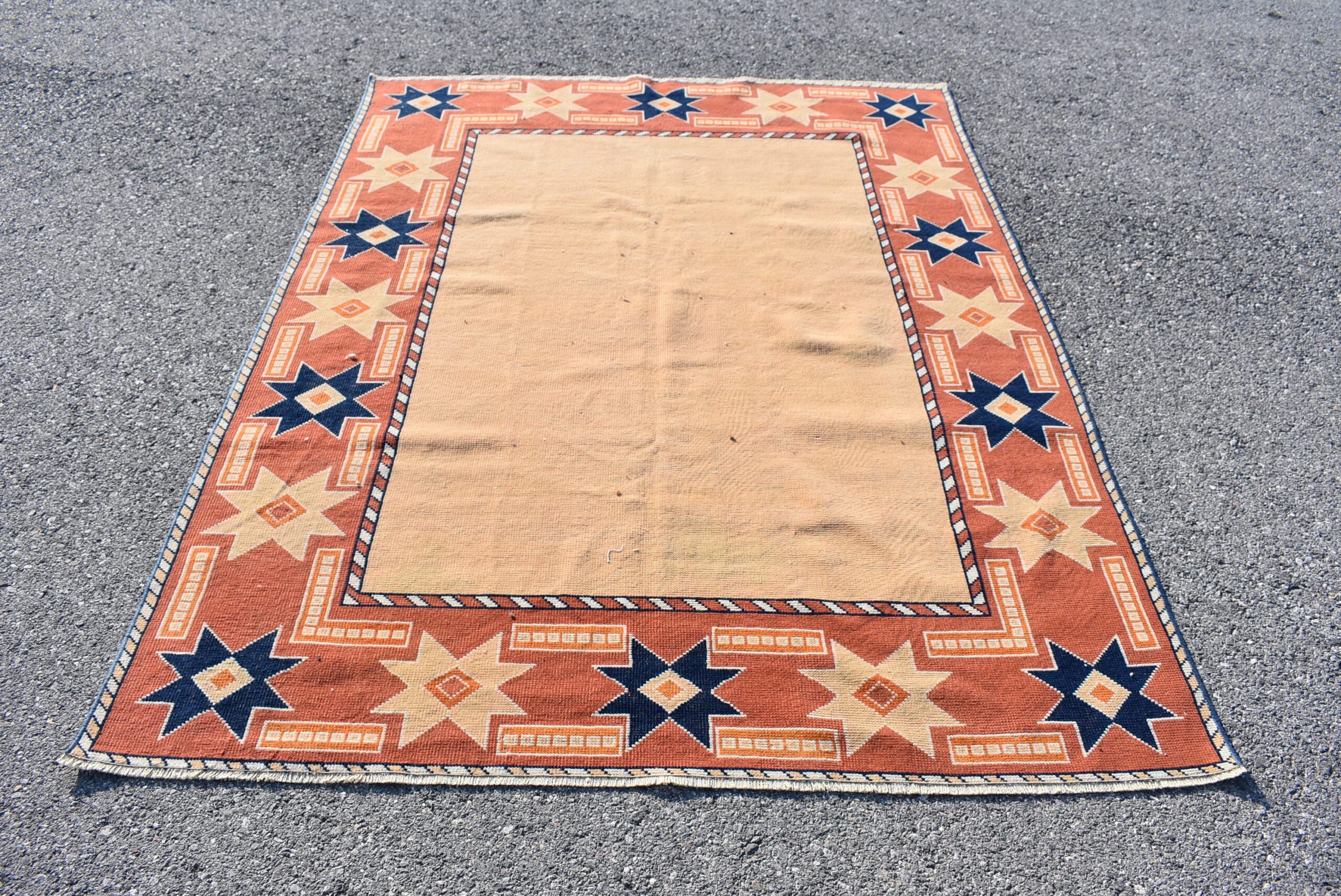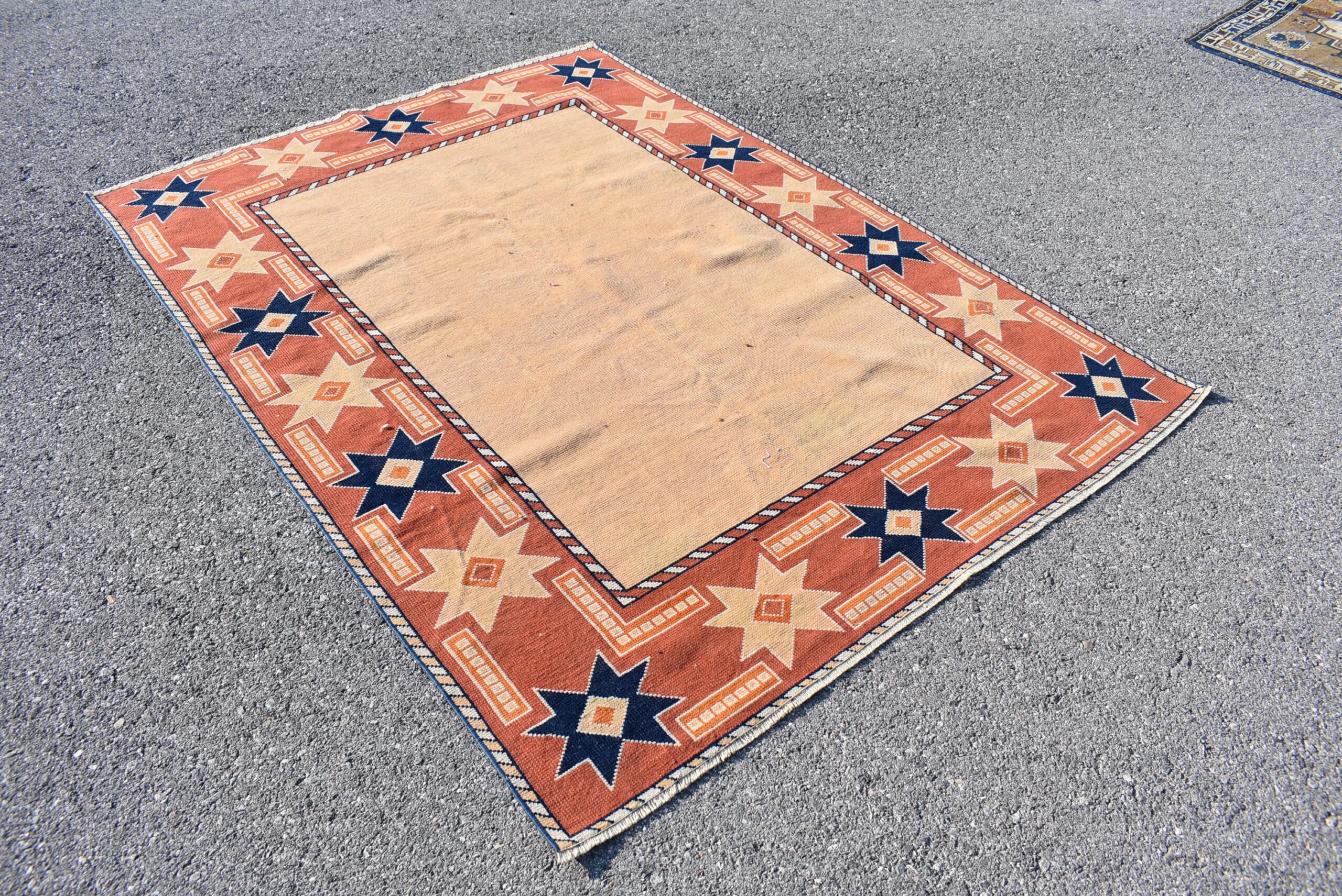 Lovely and unique 5.1 ft. x 6.9 ft. (155 cm x 210 cm) vintage Turkish rug hand-knotted in Turkey from organic wool. This is an authentic vintage Turkish rug from the 1990s that has worn beautifully to perfection.