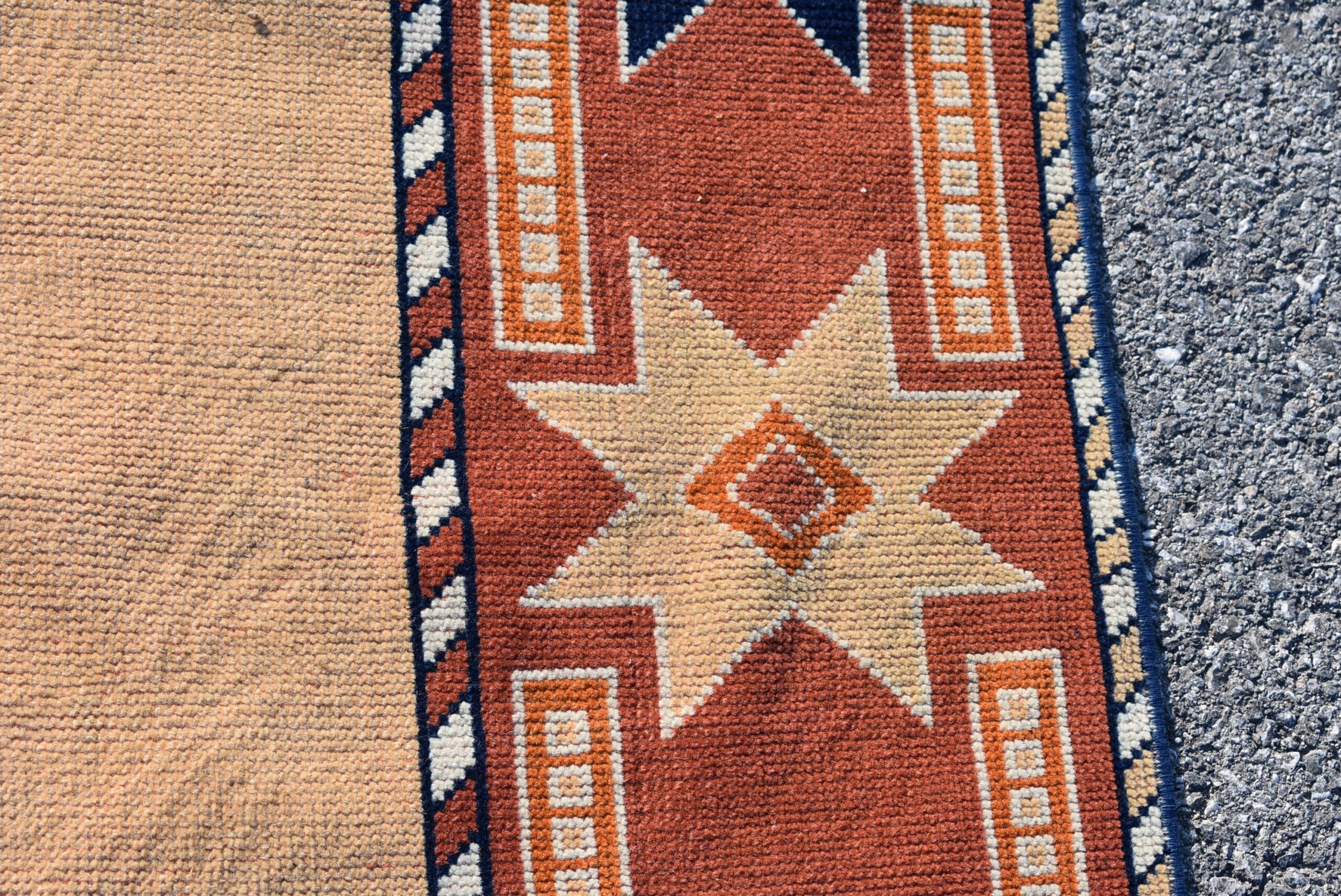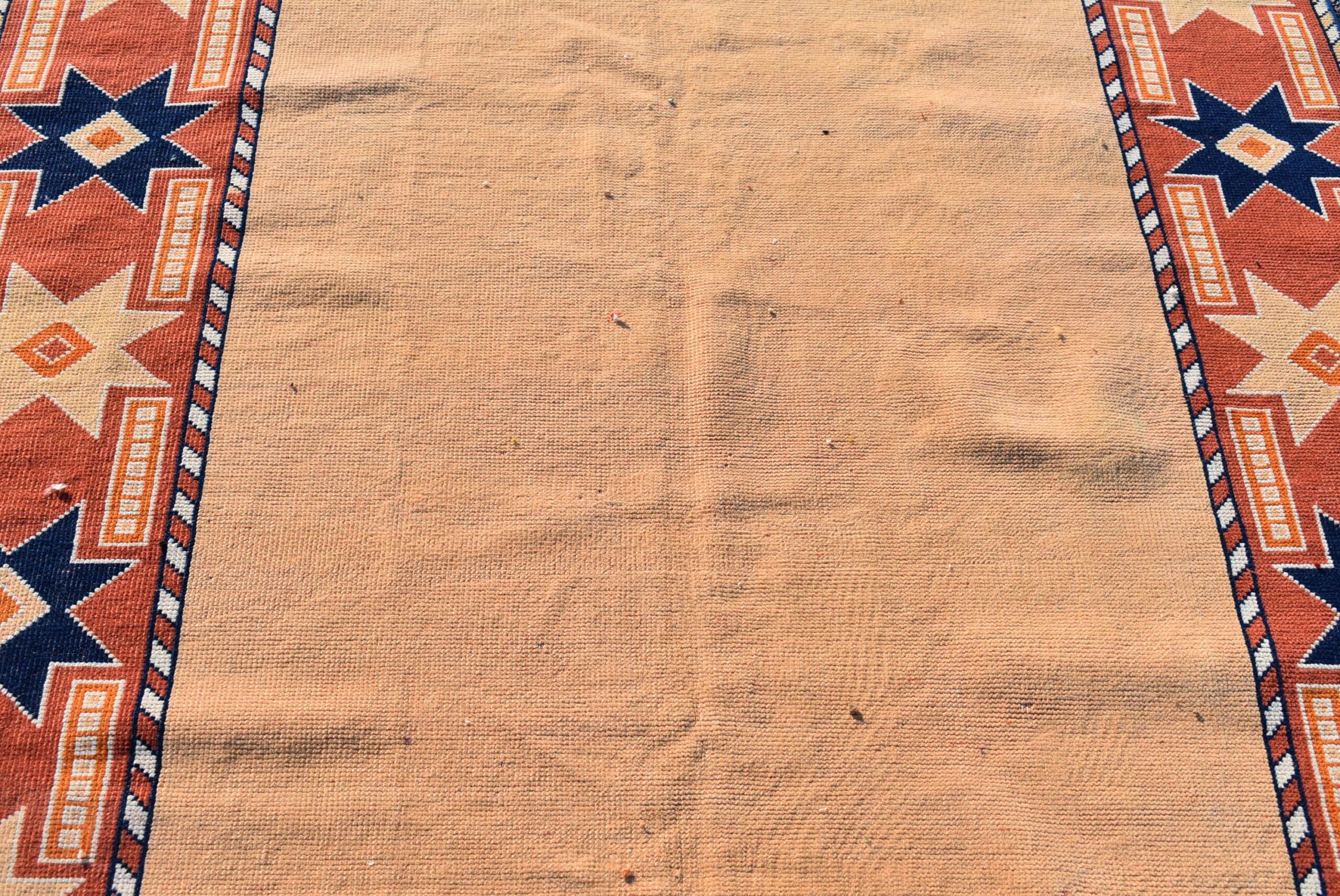 This is a vintage Turkish rug hand-knotted in a small village in Turkey by skilled Anatolian women during around the 1990s. It is made from natural wool (sheep) and dyed using all-natural (vegetable) dyes. Natural materials are more durable than synthetic materials guaranteeing a rug that can last for years while natural dyes provide colors that gets more beautiful as years pass by especially when in direct sunlight.