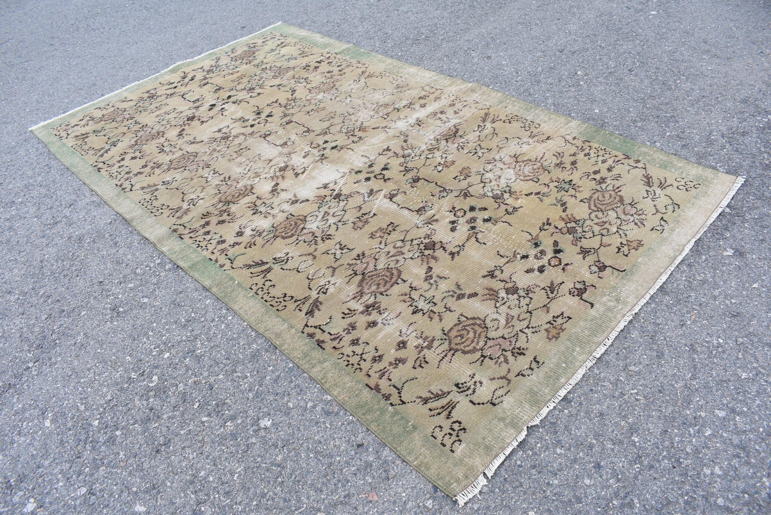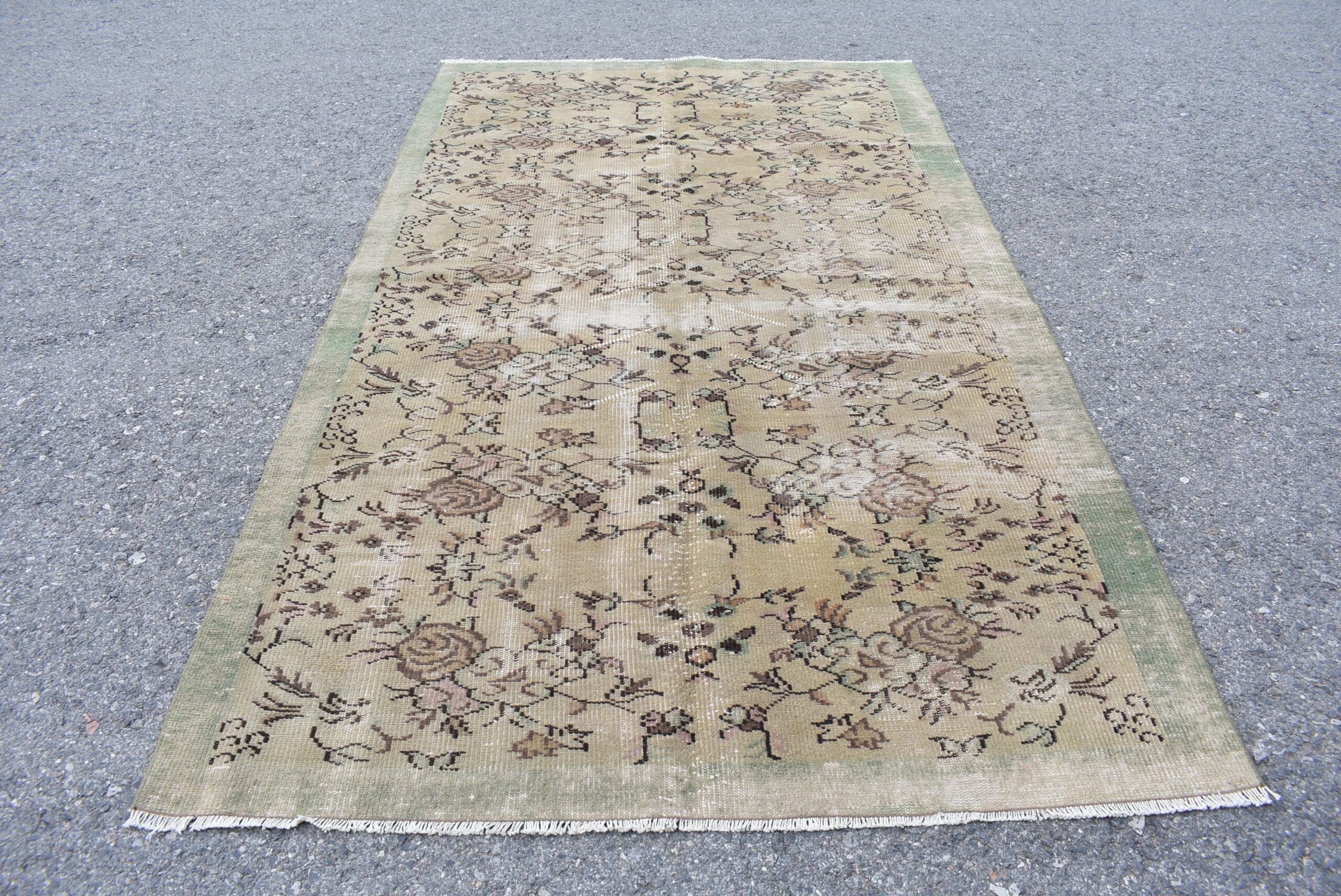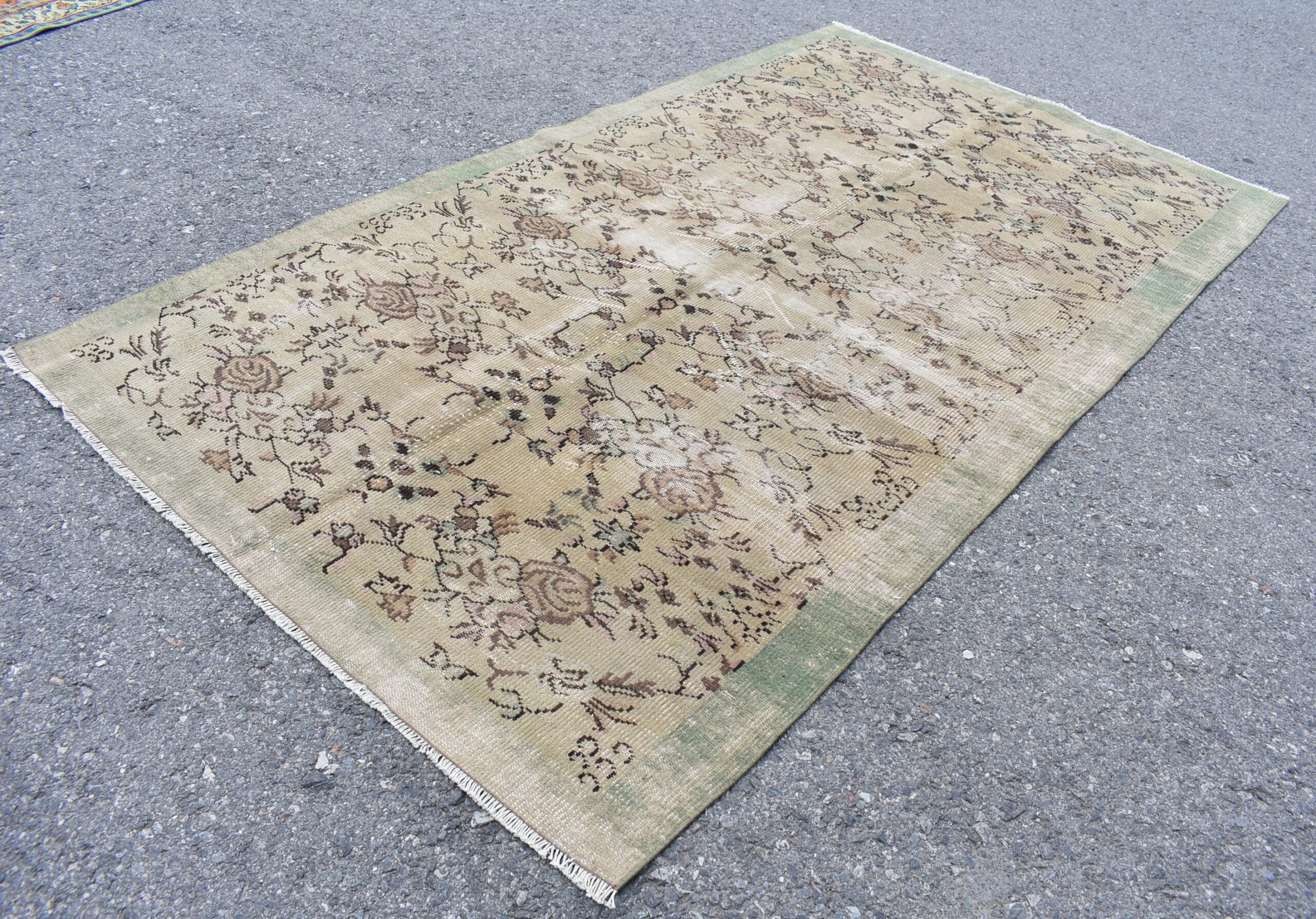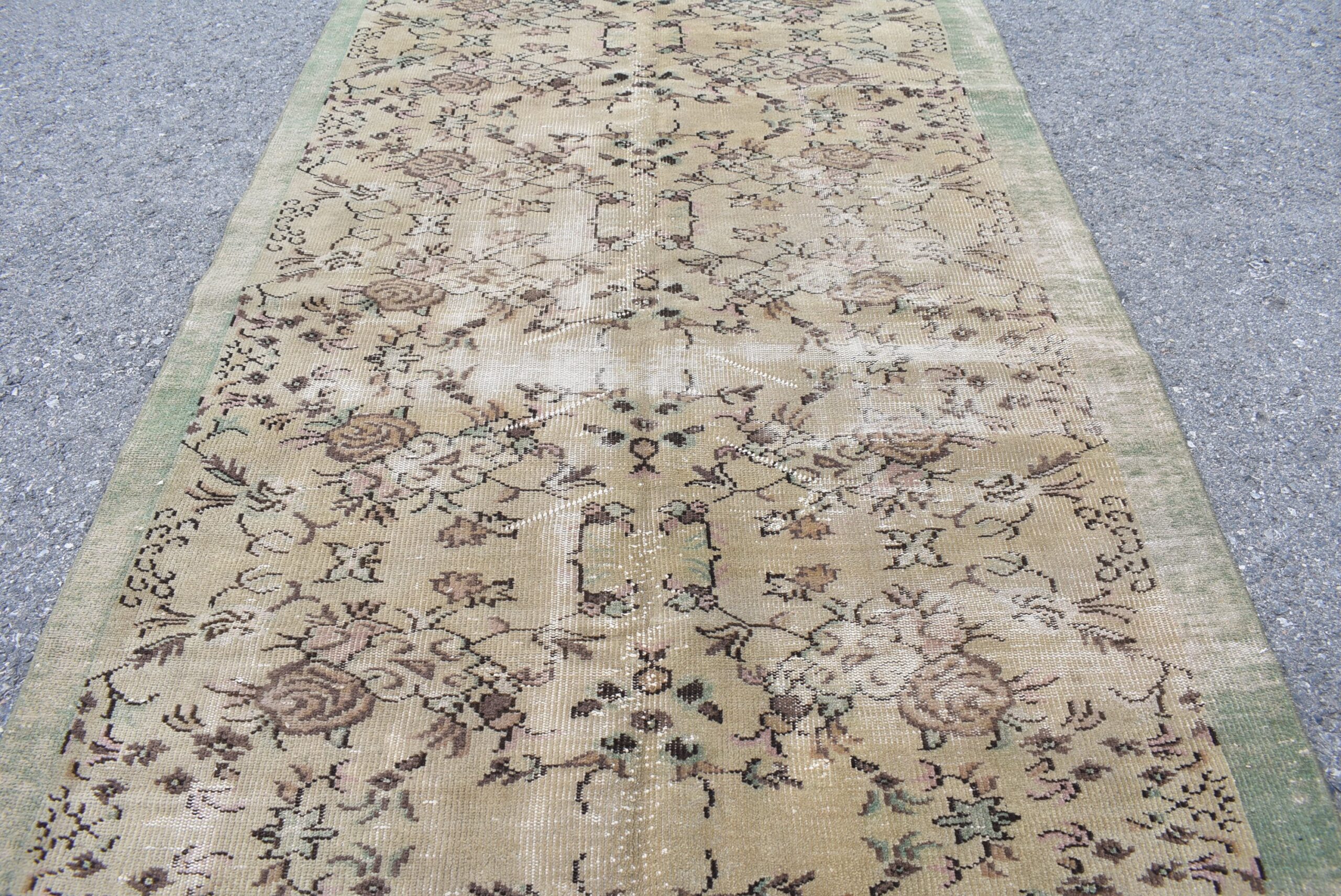 Pretty and one-of-a-kind 5.1 ft. x 8.9 ft. (154 cm x 270 cm) vintage Turkish rug hand-knotted in Turkey from organic wool. This is an authentic vintage Turkish rug from the 1980s that has worn splendidly to perfection.