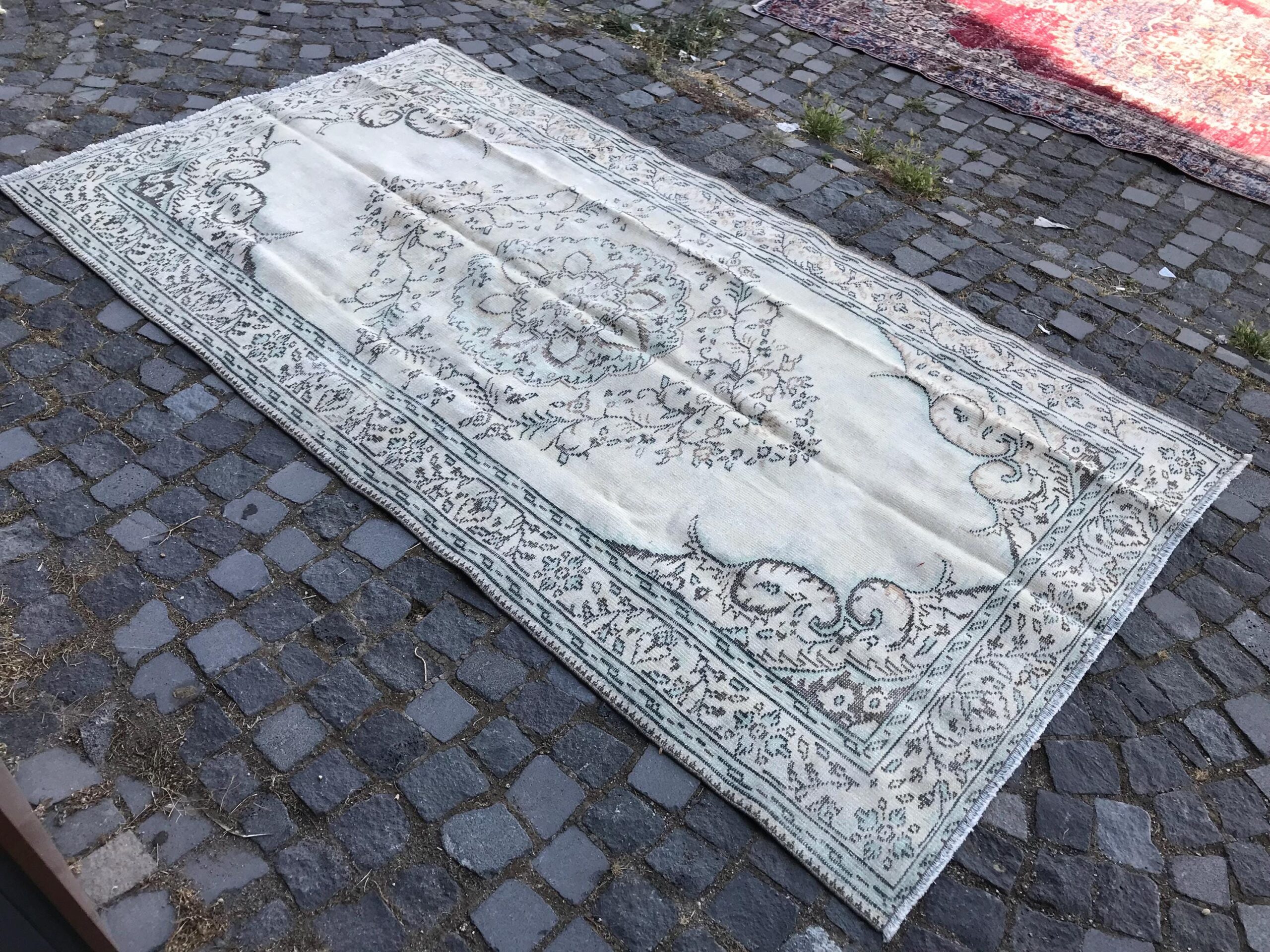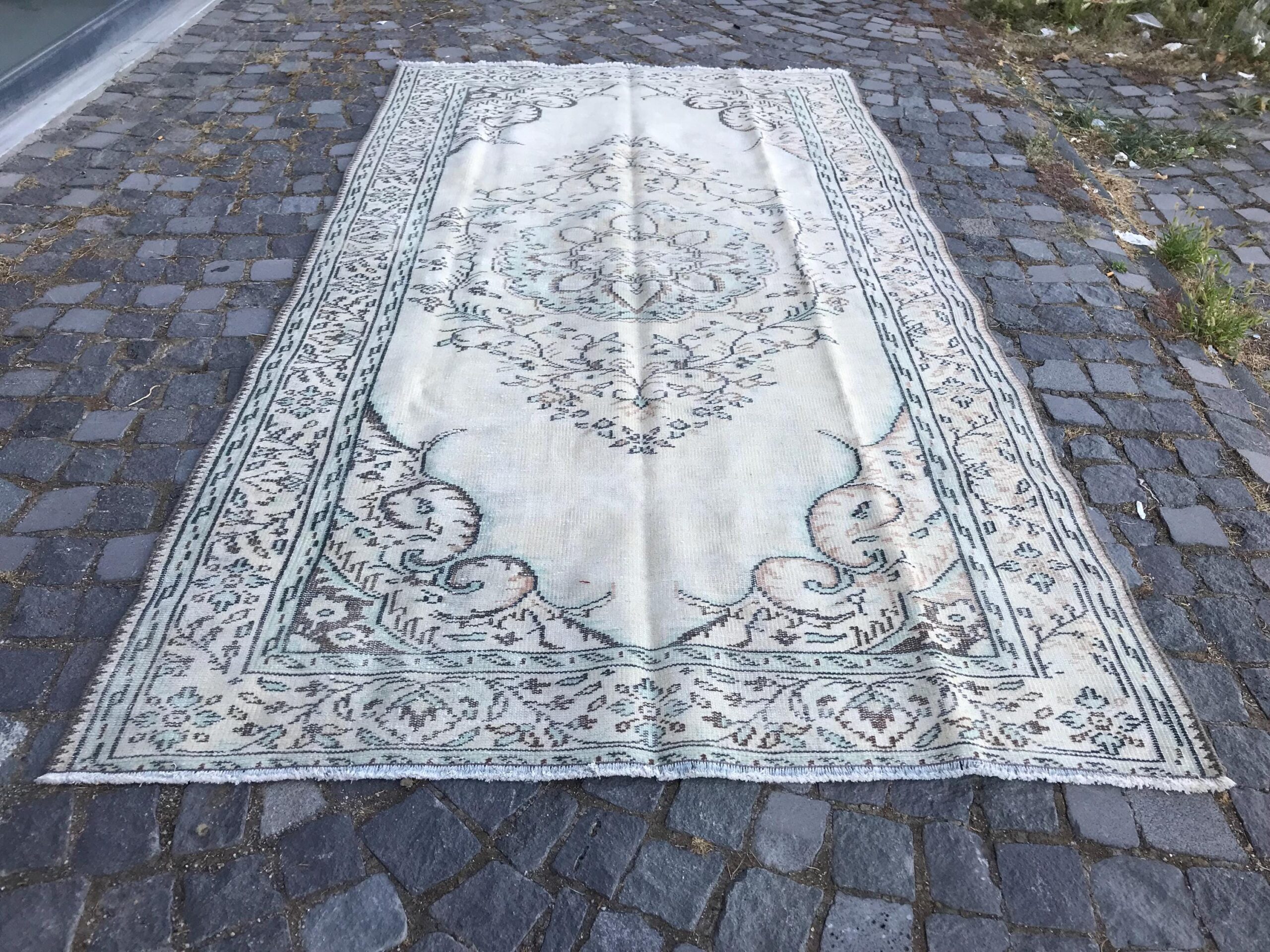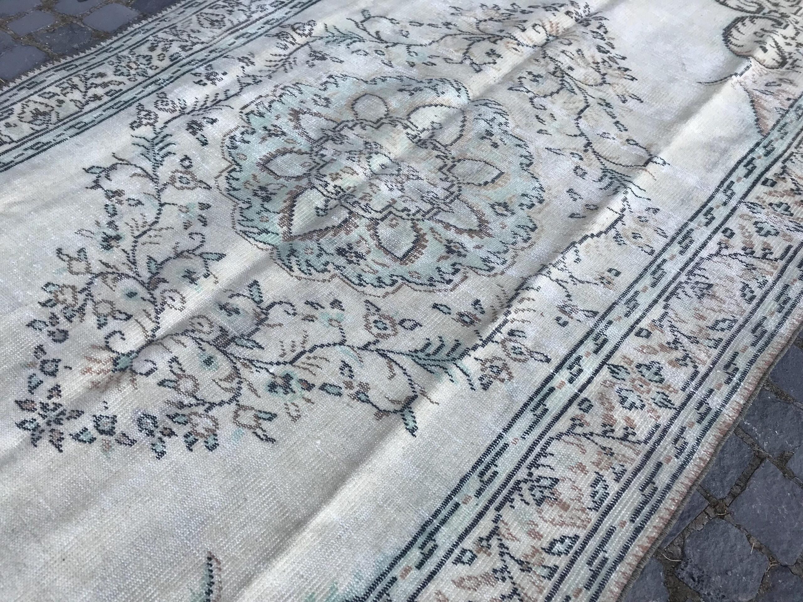 Lovely and unique 5.1 ft. x 9.4 ft. (154 cm x 286 cm) vintage Turkish rug hand-knotted in Turkey from organic wool. This is an authentic vintage Turkish rug from the 1980s that has worn beautifully to perfection.
