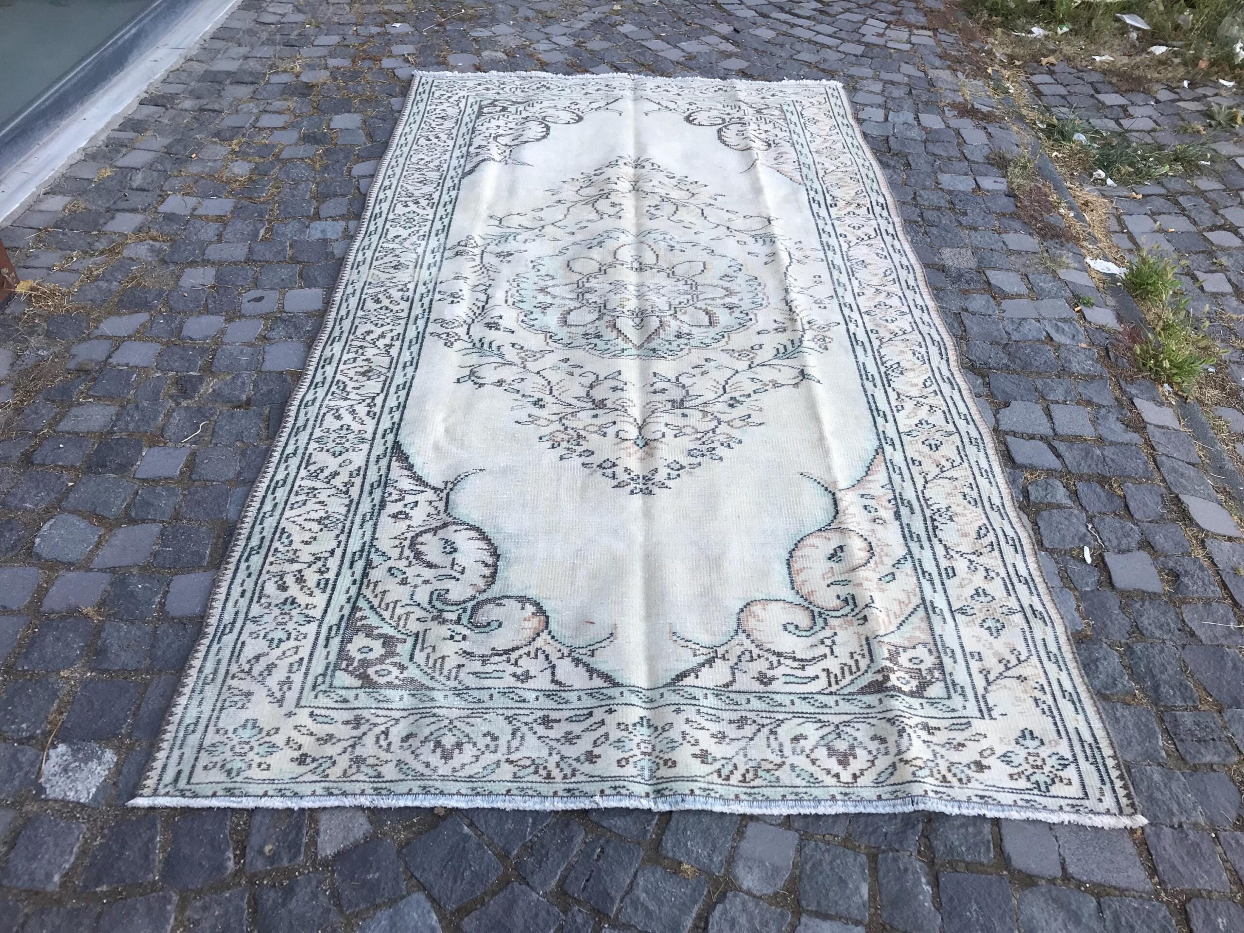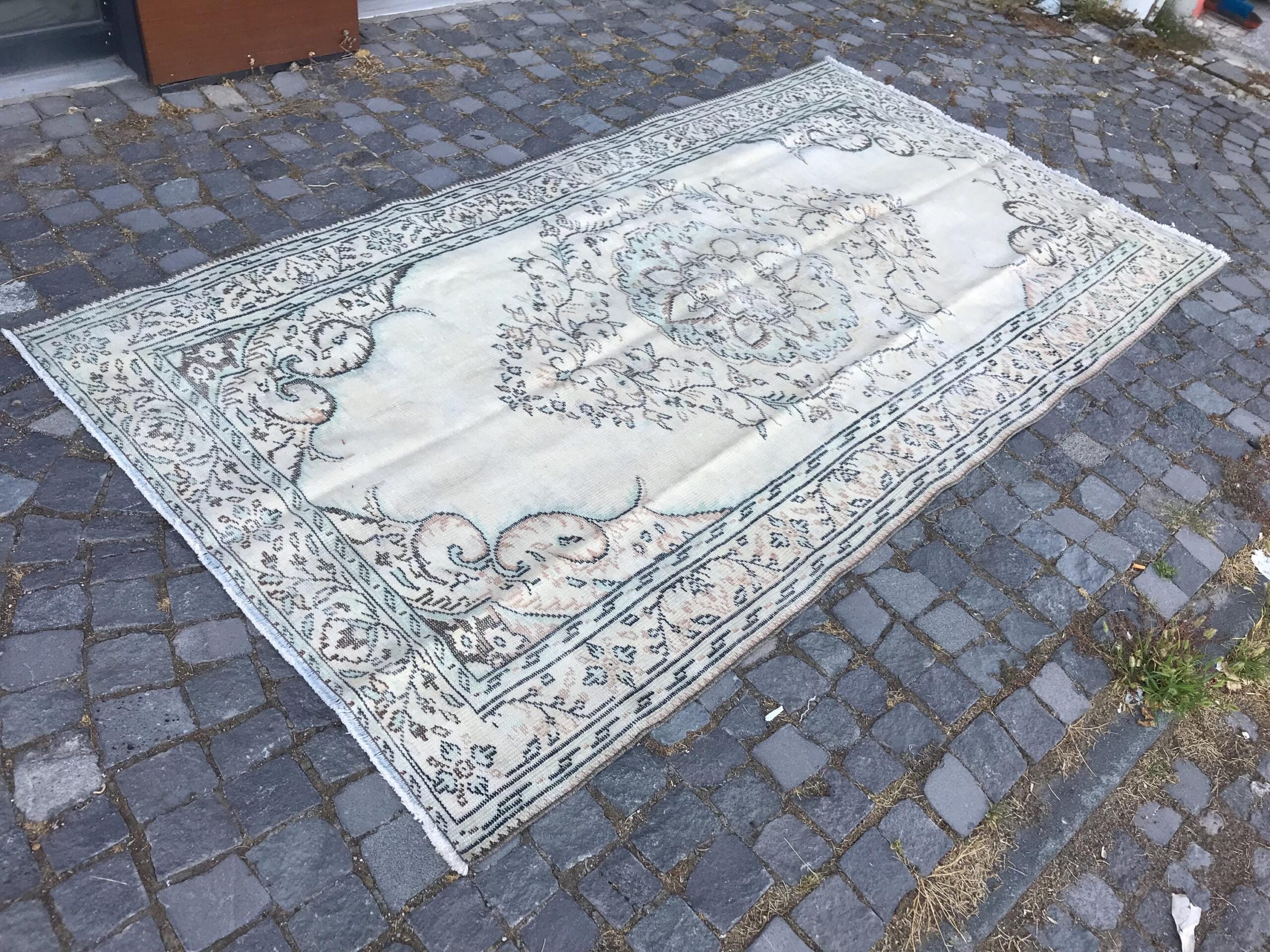This is a vintage Turkish rug hand-knotted in a small village in Turkey by skilled Anatolian women during around the 1980s. It is made from natural wool (sheep) and dyed using all-natural (vegetable) dyes. Natural materials are more durable than synthetic materials guaranteeing a rug that can last for years while natural dyes provide colors that gets more beautiful as years pass by especially when in direct sunlight.