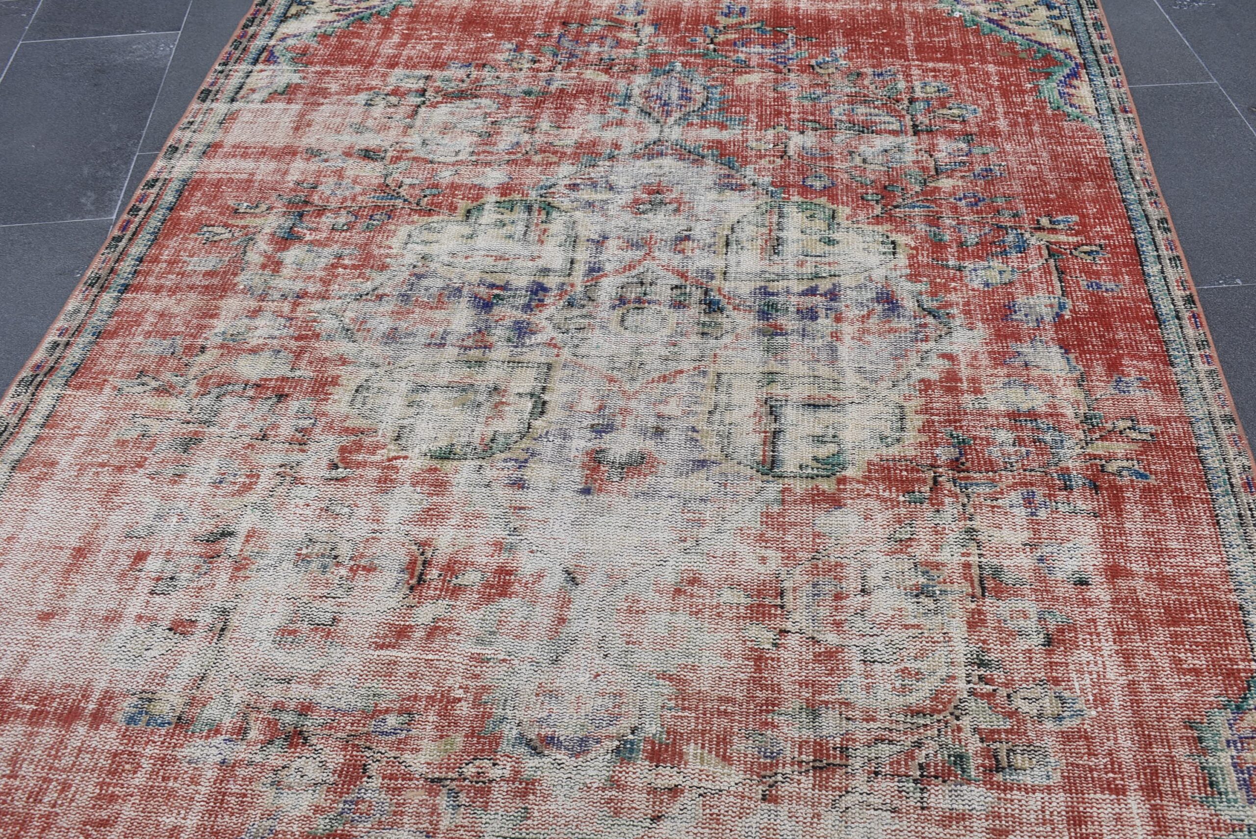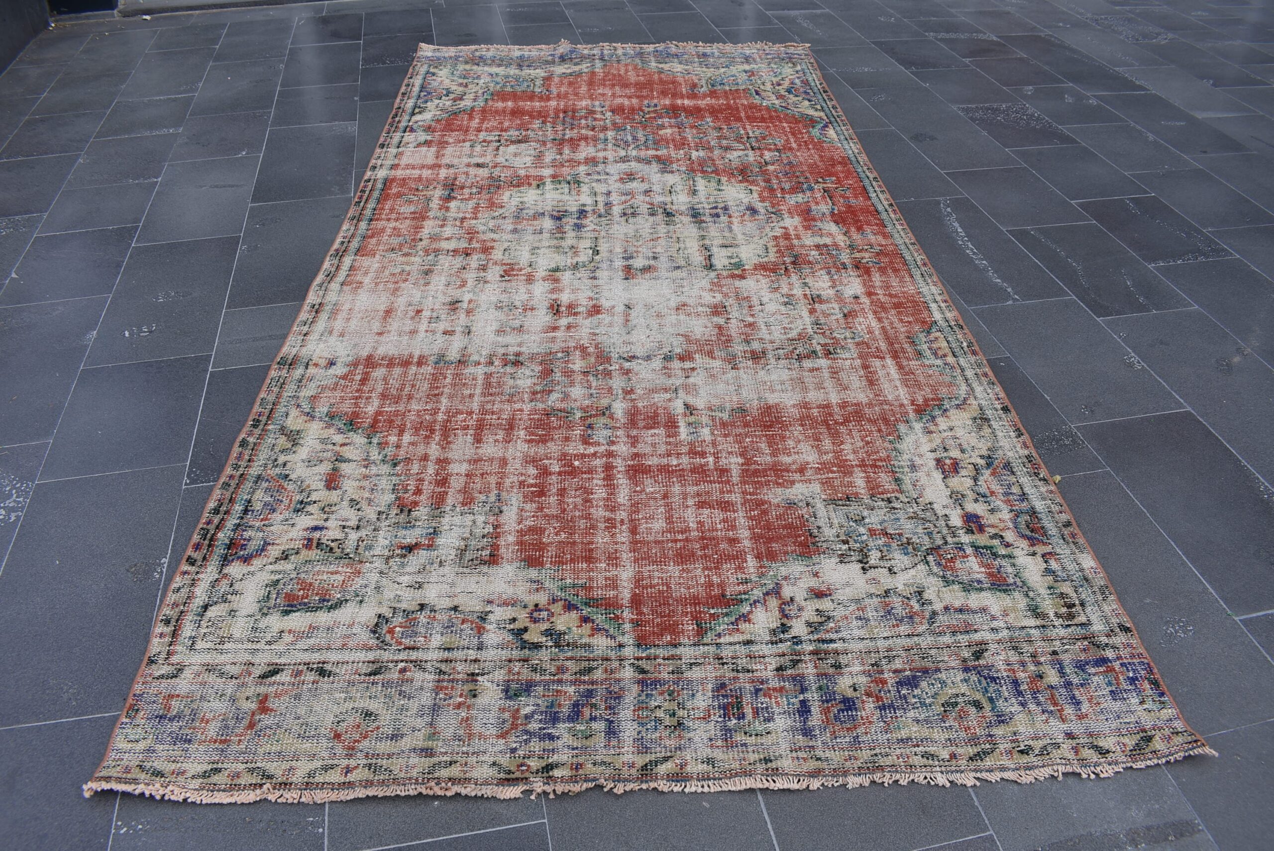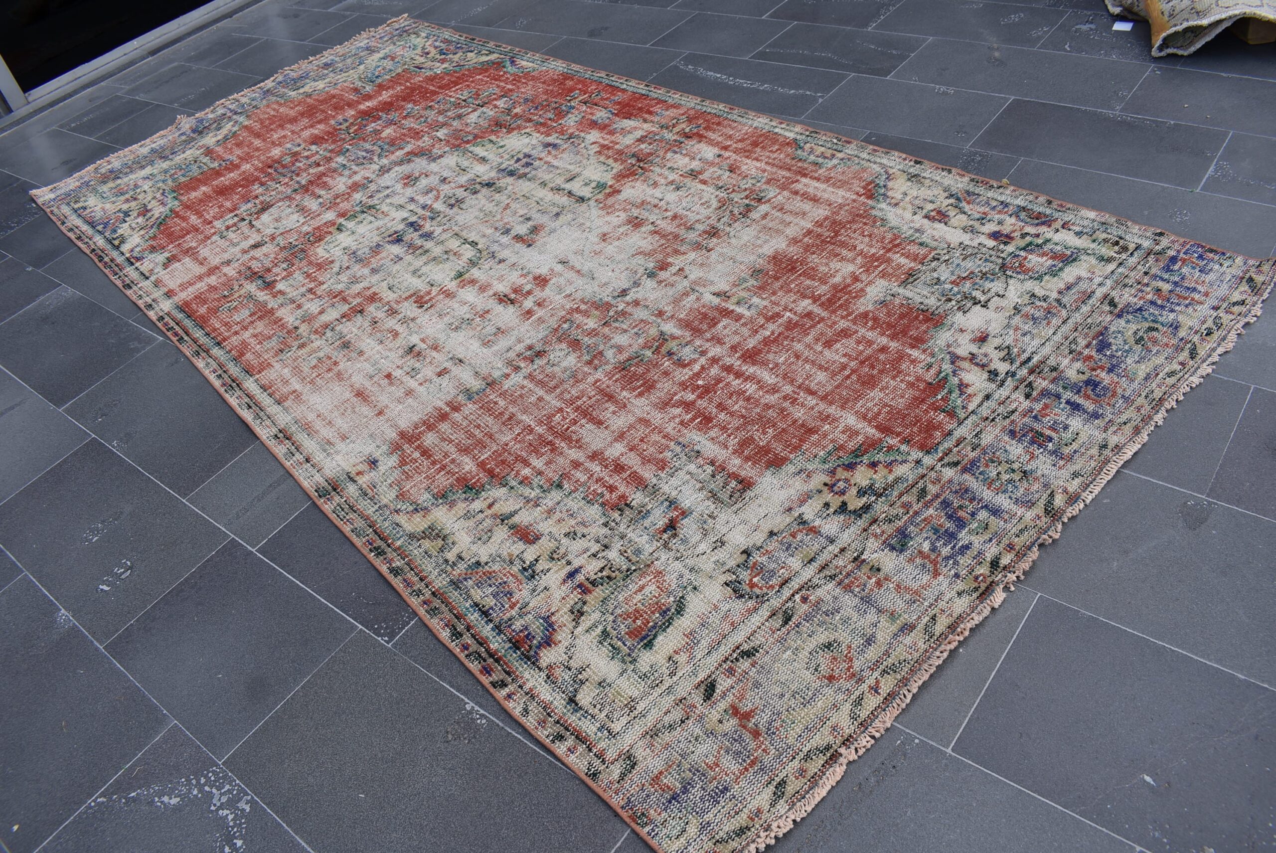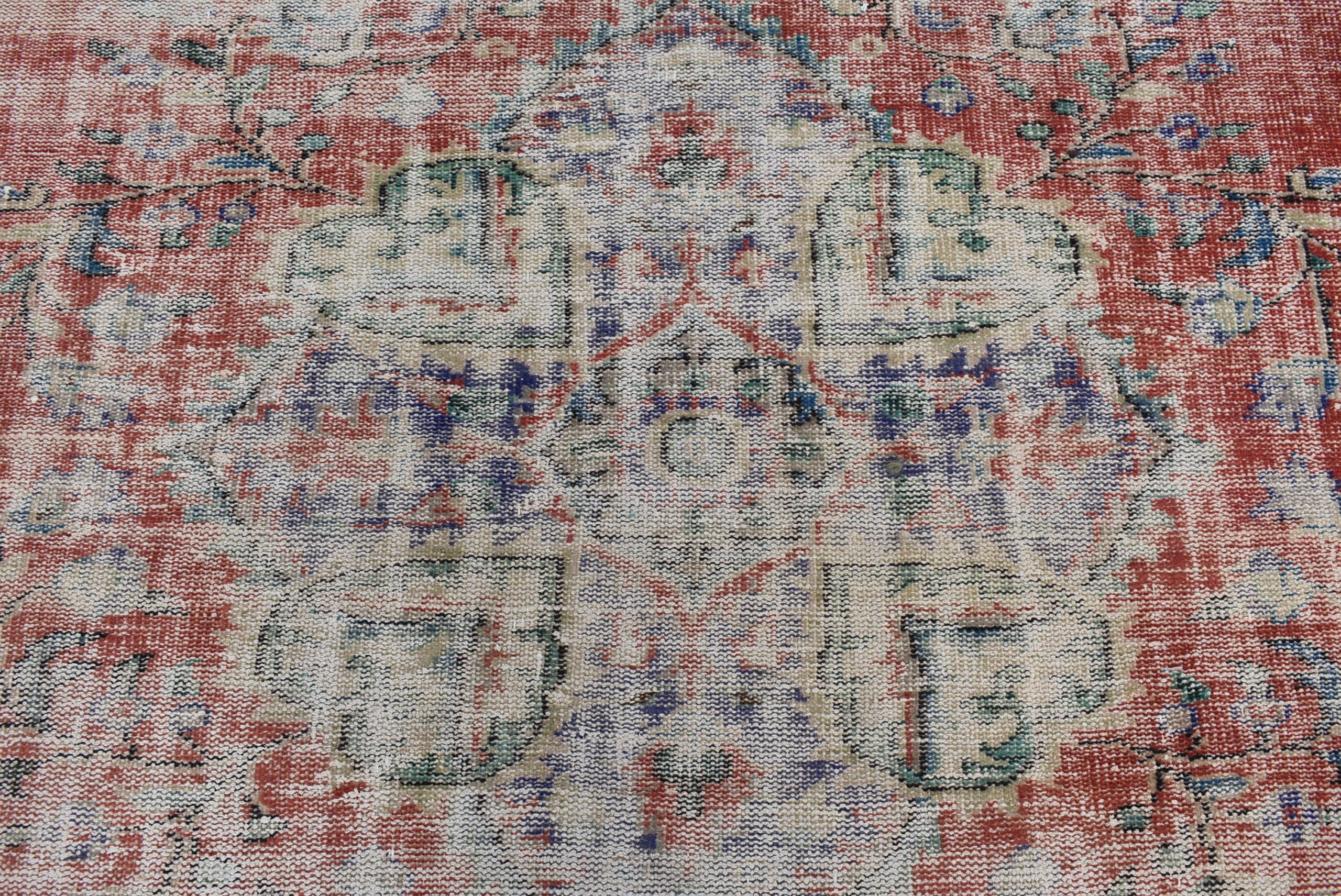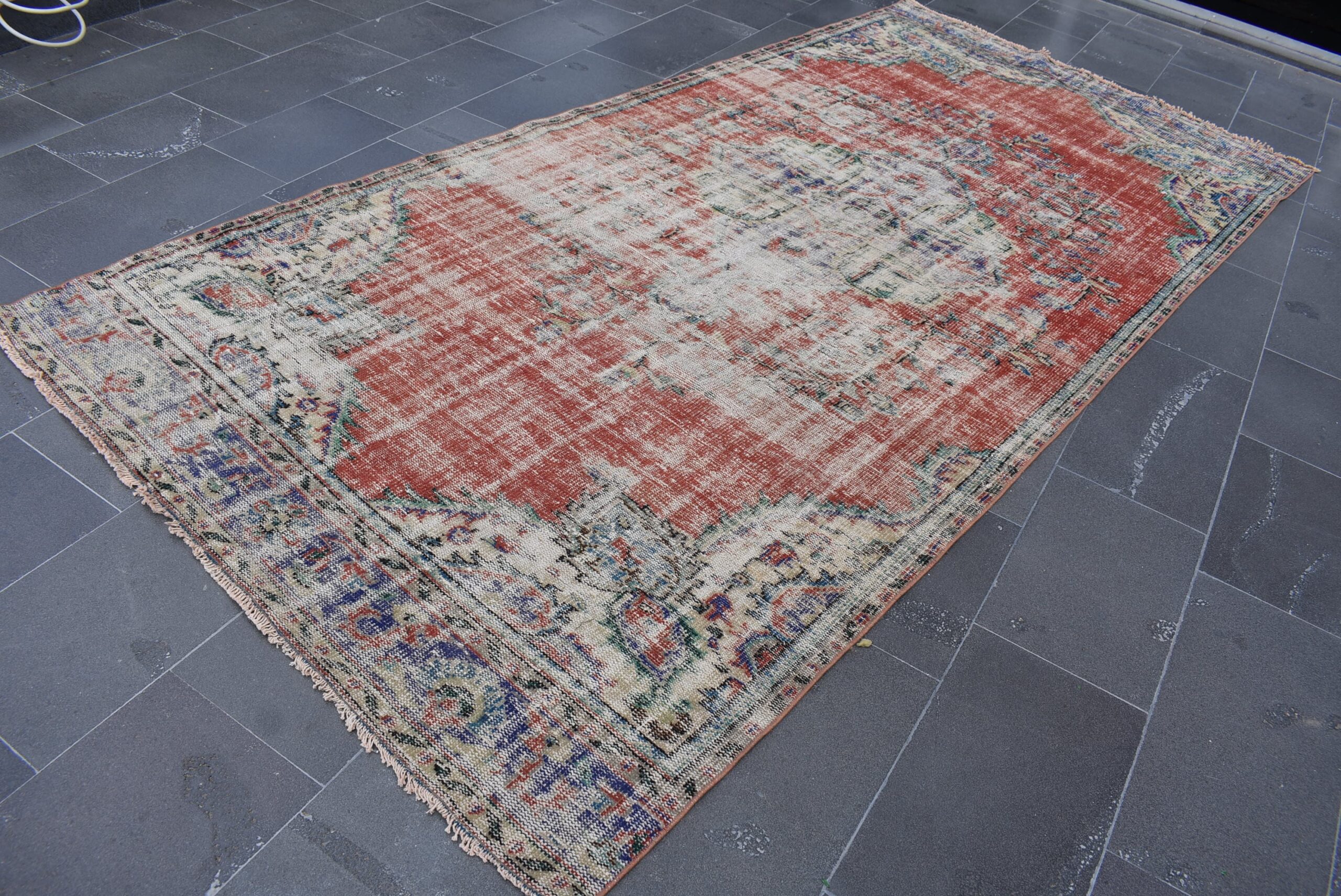 This is a vintage Turkish rug hand-knotted in a small village in Turkey by skilled Anatolian women during around the 1970s. It is made from natural wool (sheep) and dyed using all-natural (vegetable) dyes. Natural materials are more durable than synthetic materials guaranteeing a rug that can last for years while natural dyes provide colors that gets more beautiful as years pass by especially when in direct sunlight.