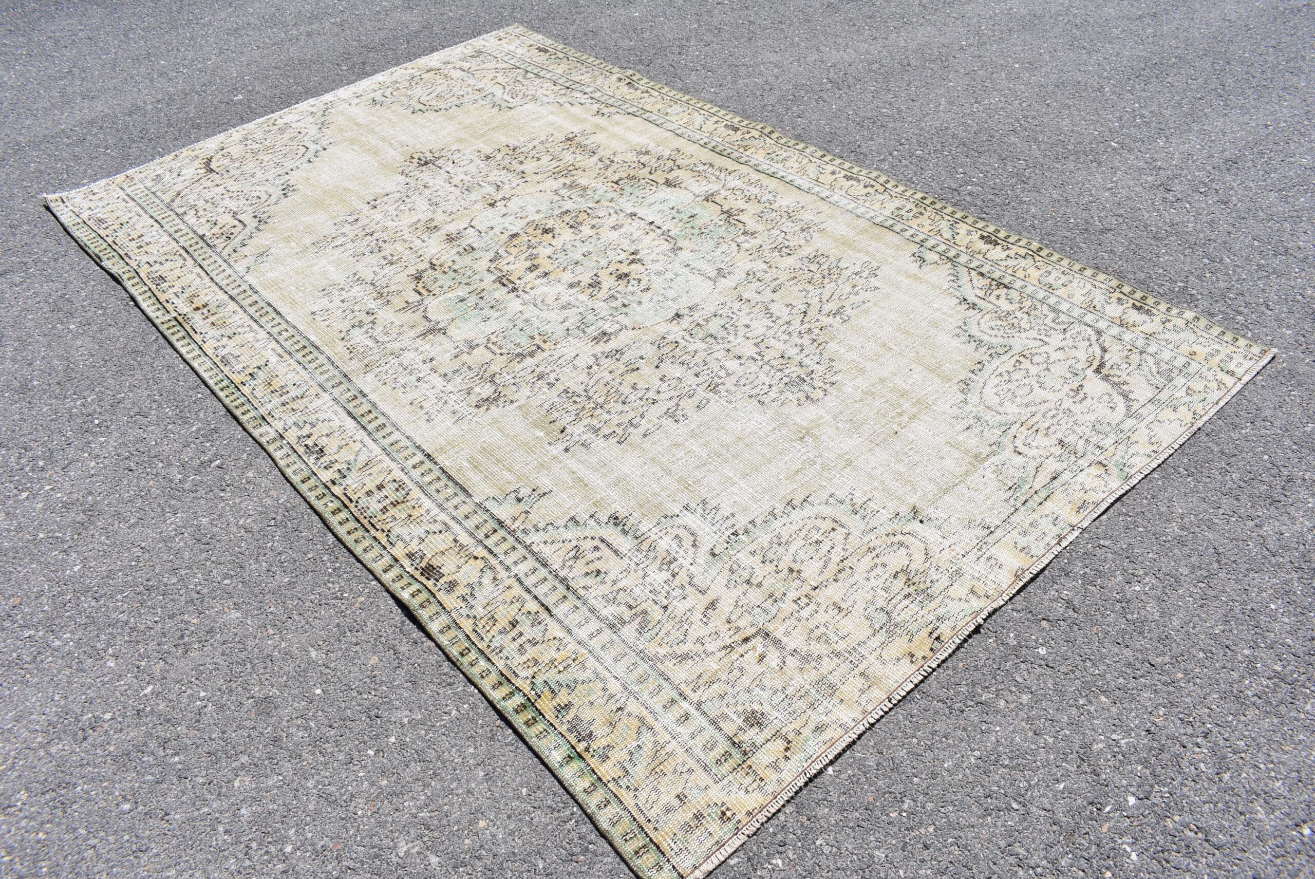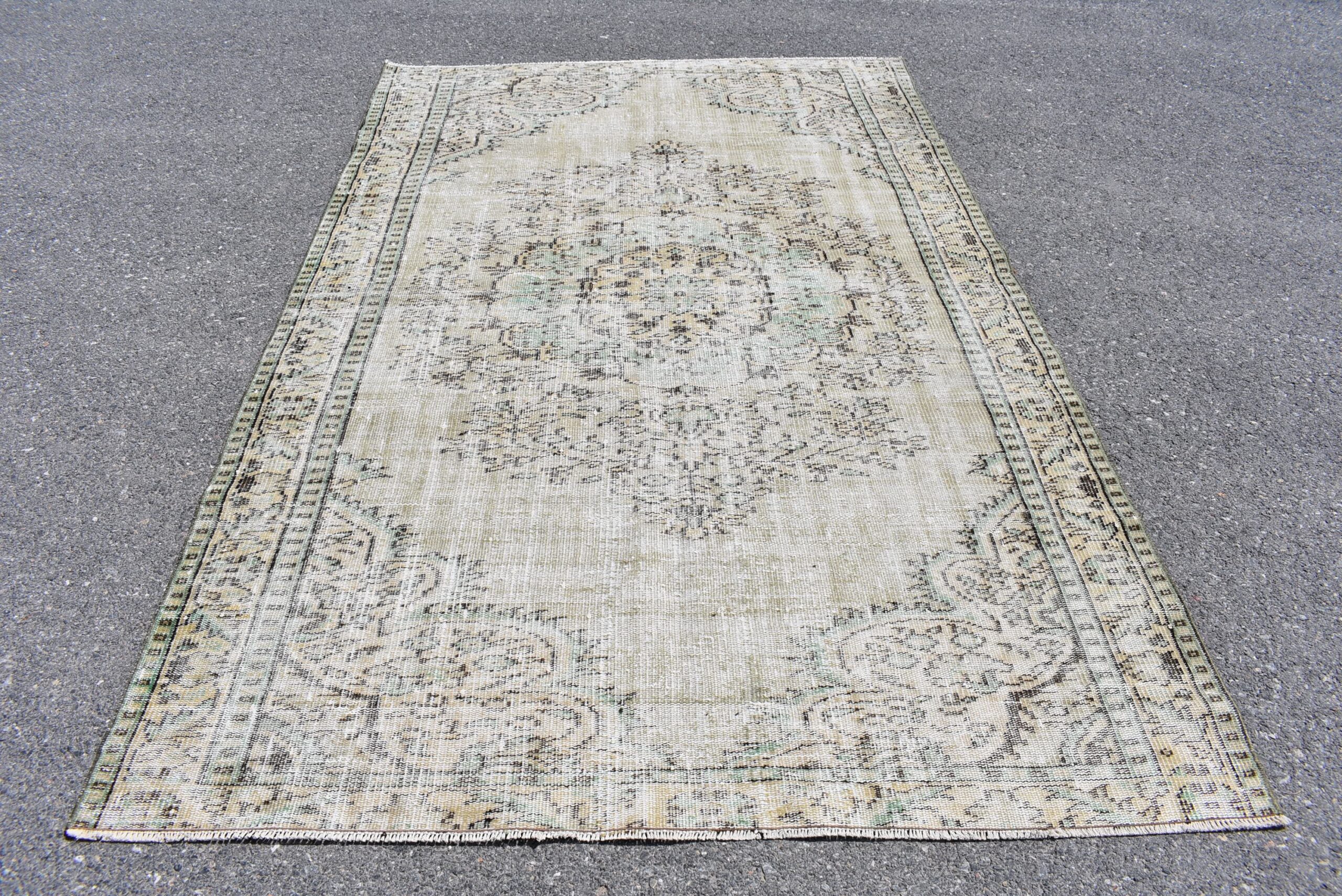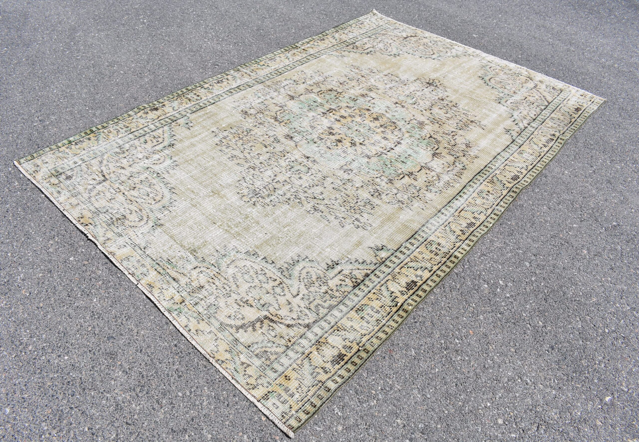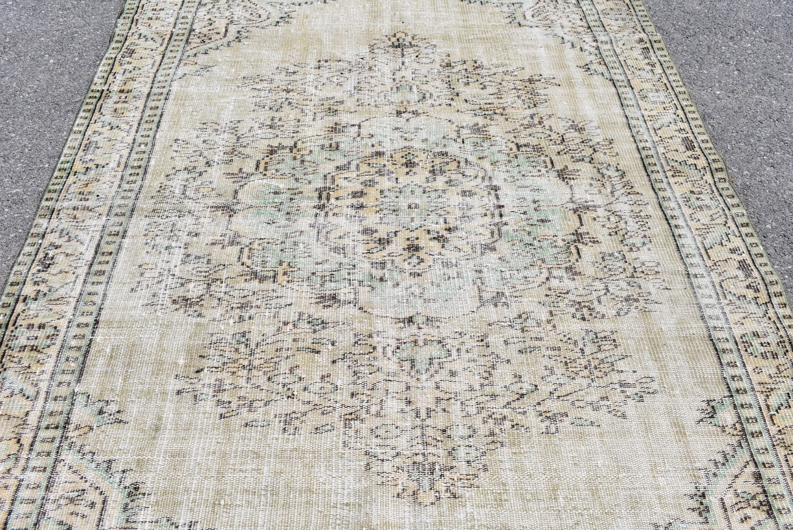 Pretty and one-of-a-kind 5.2 ft. x 8.1 ft. (160 cm x 248 cm) vintage Turkish rug hand-knotted in Turkey from organic wool. This is an authentic vintage Turkish rug from the 1980s that has worn splendidly to perfection.
