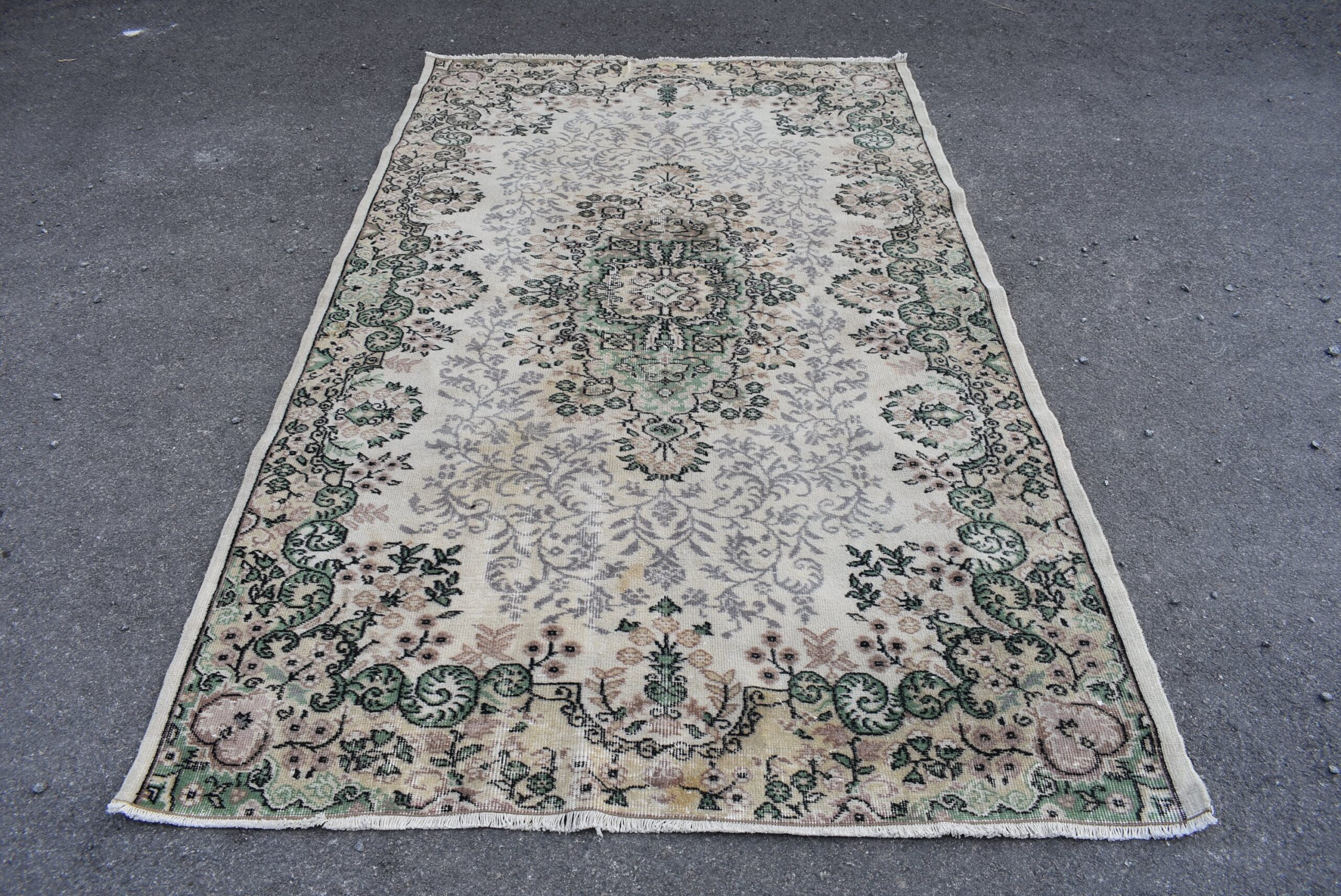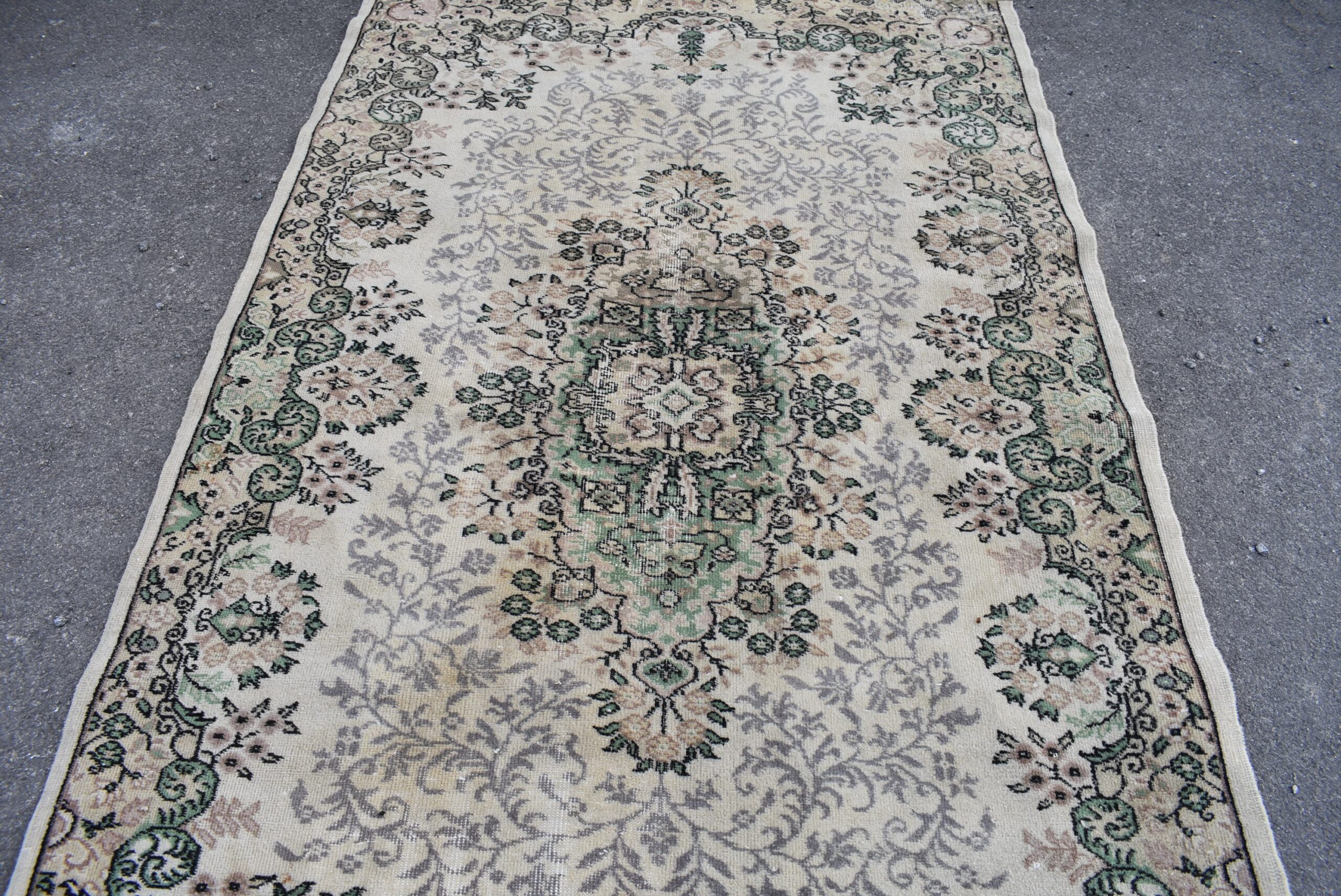 Pretty and one-of-a-kind 5.2 ft. x 8.6 ft. (158 cm x 263 cm) vintage Turkish rug hand-knotted in Turkey from organic wool. This is an authentic vintage Turkish rug from the 1990s that has worn splendidly to perfection.