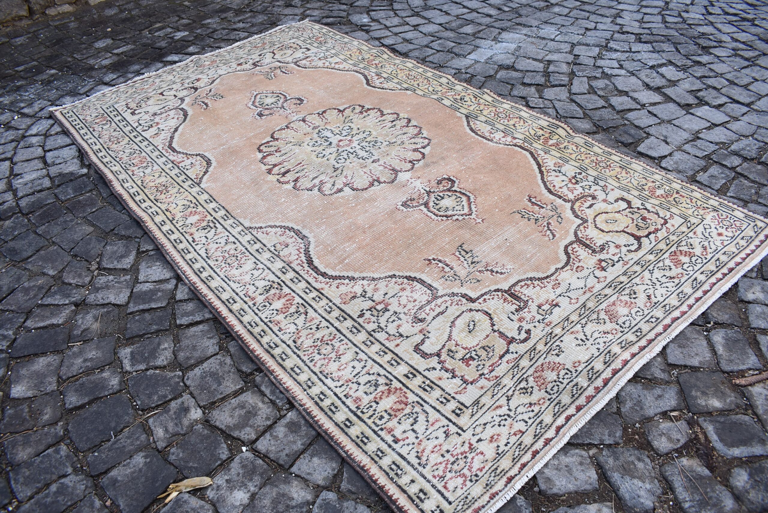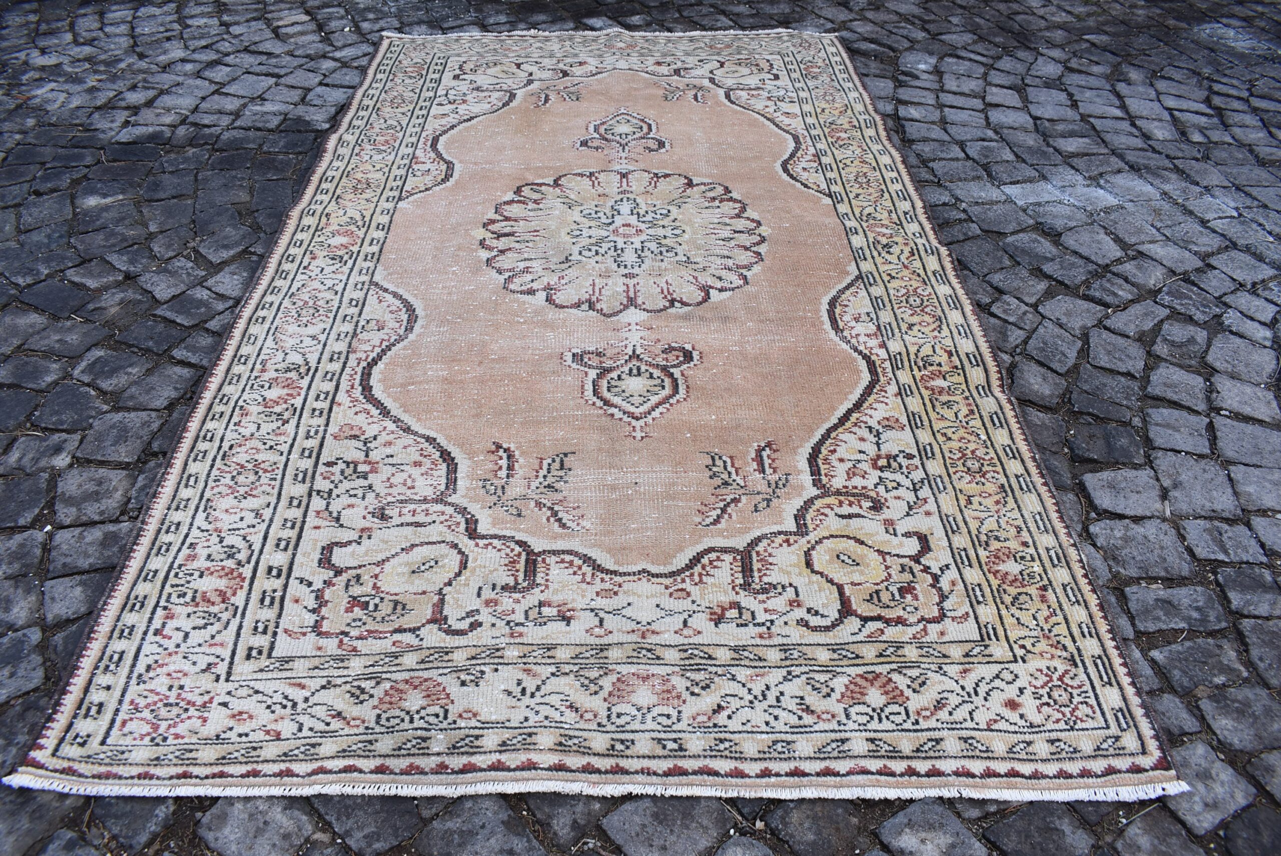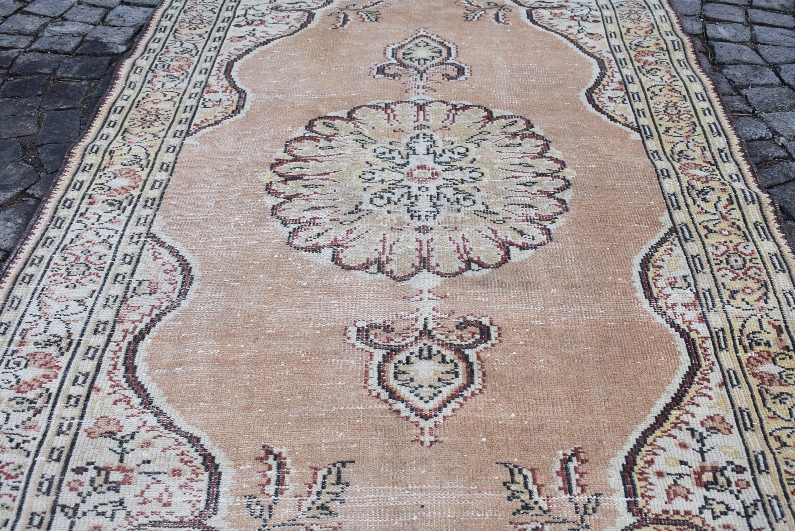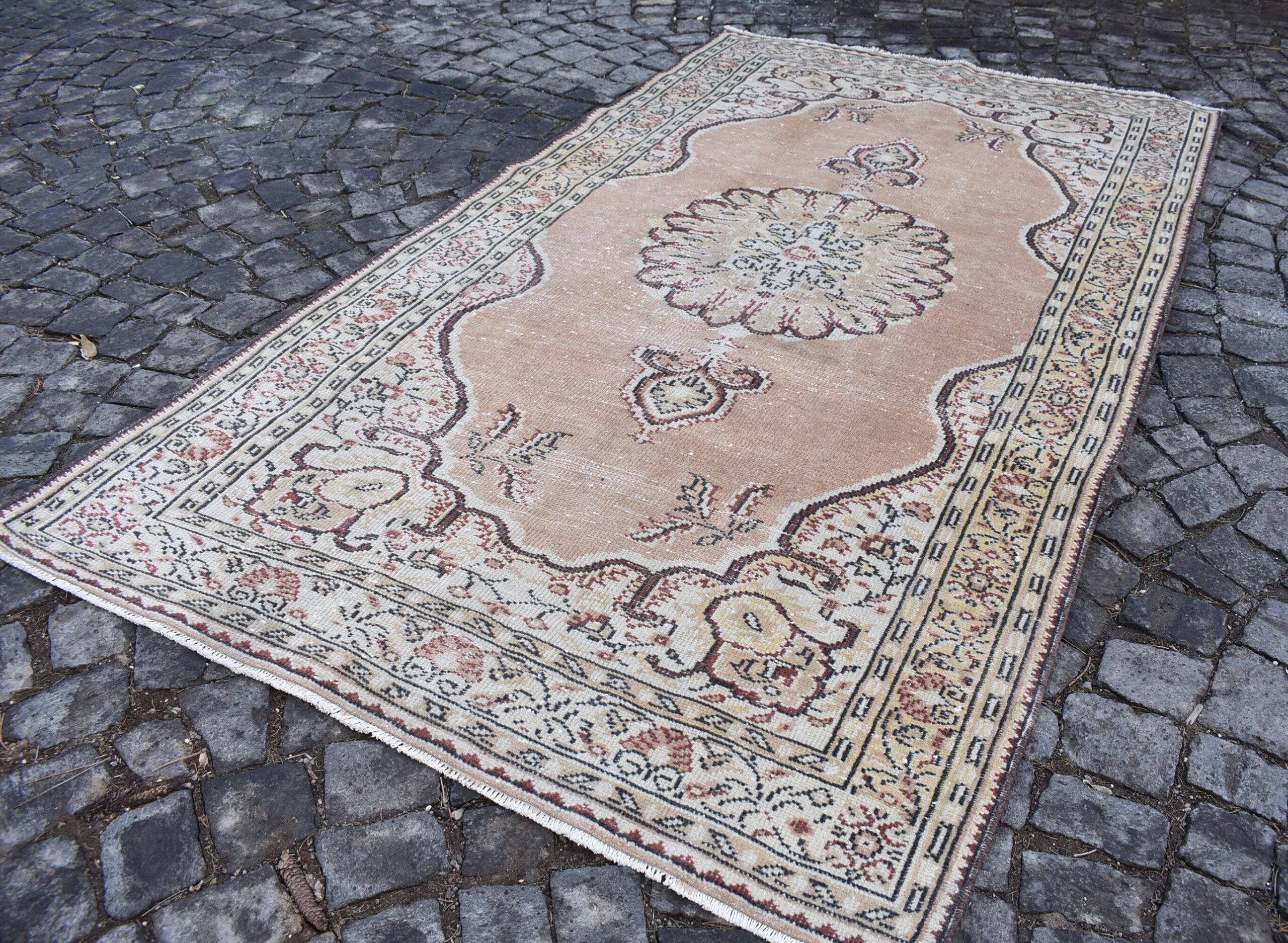 This is a vintage Turkish rug hand-knotted in a small village in Turkey by skilled Anatolian women during around the 1980s. It is made from natural wool (sheep) and dyed using all-natural (vegetable) dyes. Natural materials are more durable than synthetic materials guaranteeing a rug that can last for years while natural dyes provide colors that gets more beautiful as years pass by especially when in direct sunlight.