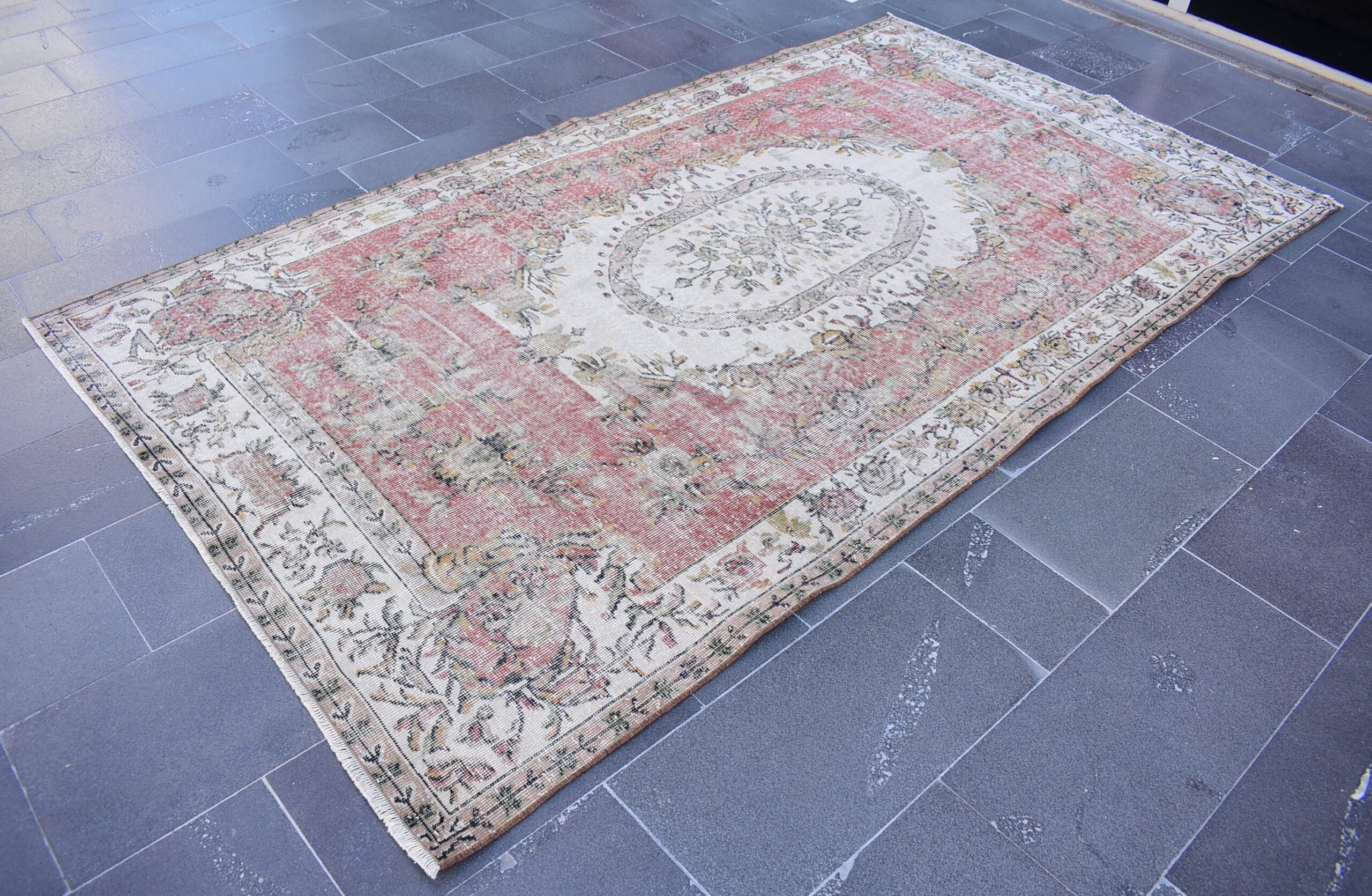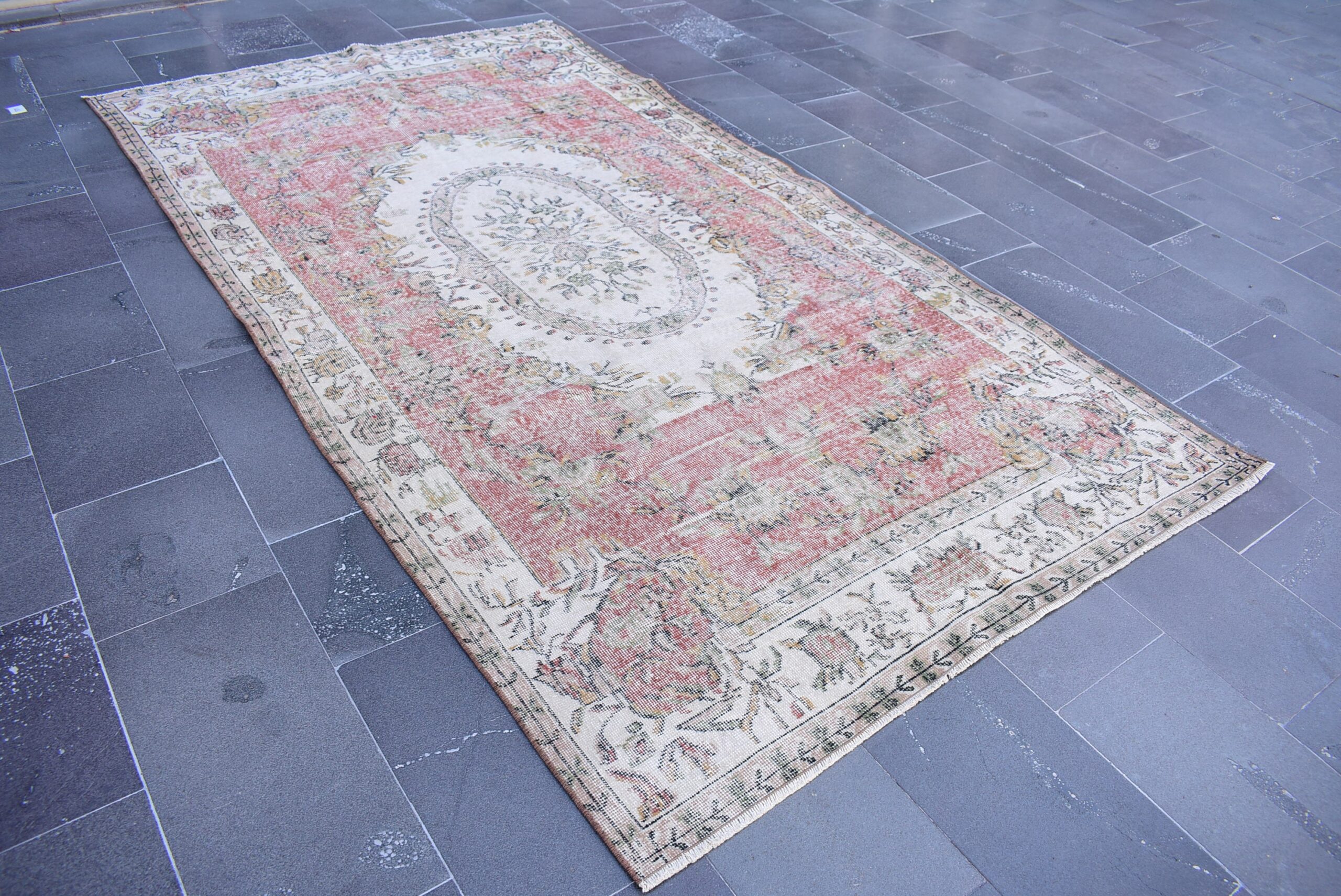 Pretty and one-of-a-kind 5.2 ft. x 9.6 ft. (160 cm x 294 cm) vintage Turkish rug hand-knotted in Turkey from organic wool. This is an authentic vintage Turkish rug from the 1980s that has worn splendidly to perfection.