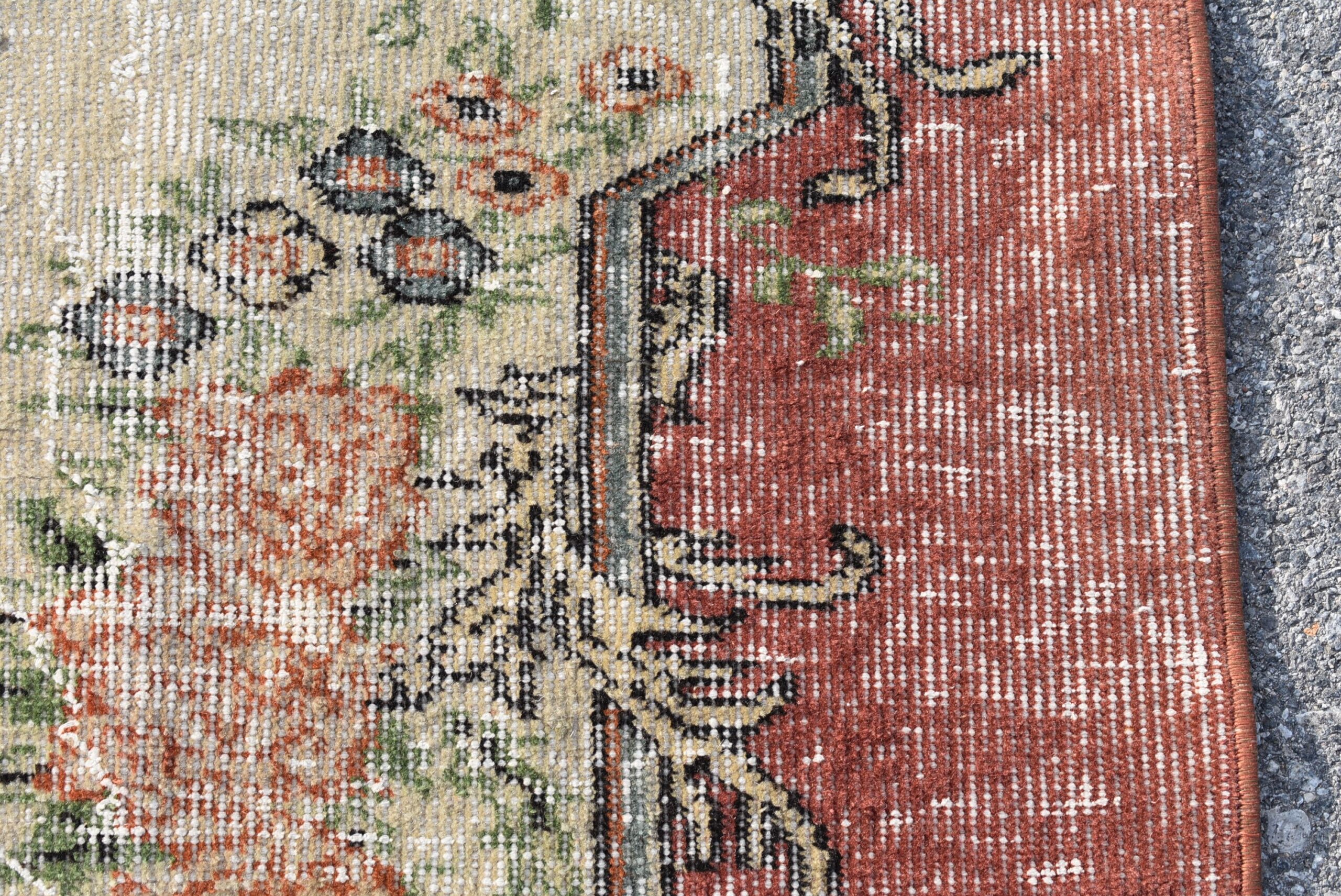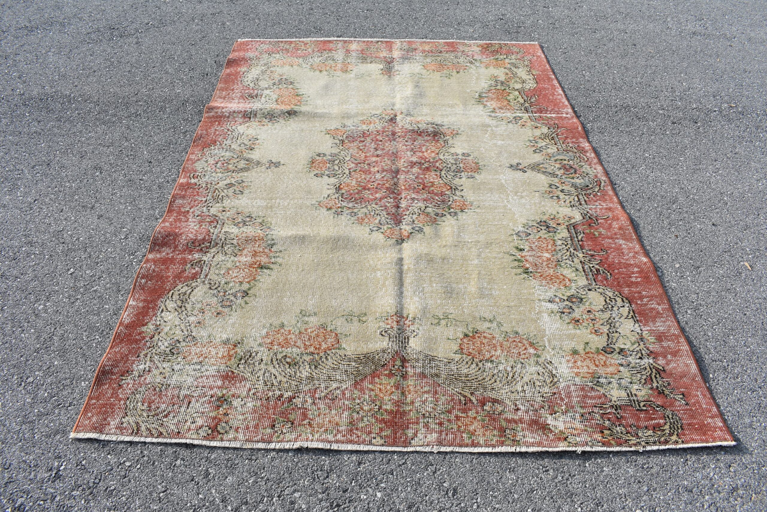 This is a vintage Turkish rug hand-knotted in a small village in Turkey by skilled Anatolian women during around the 1980s. It is made from natural wool (sheep) and dyed using all-natural (vegetable) dyes. Natural materials are more durable than synthetic materials guaranteeing a rug that can last for years while natural dyes provide colors that gets more beautiful as years pass by especially when in direct sunlight.