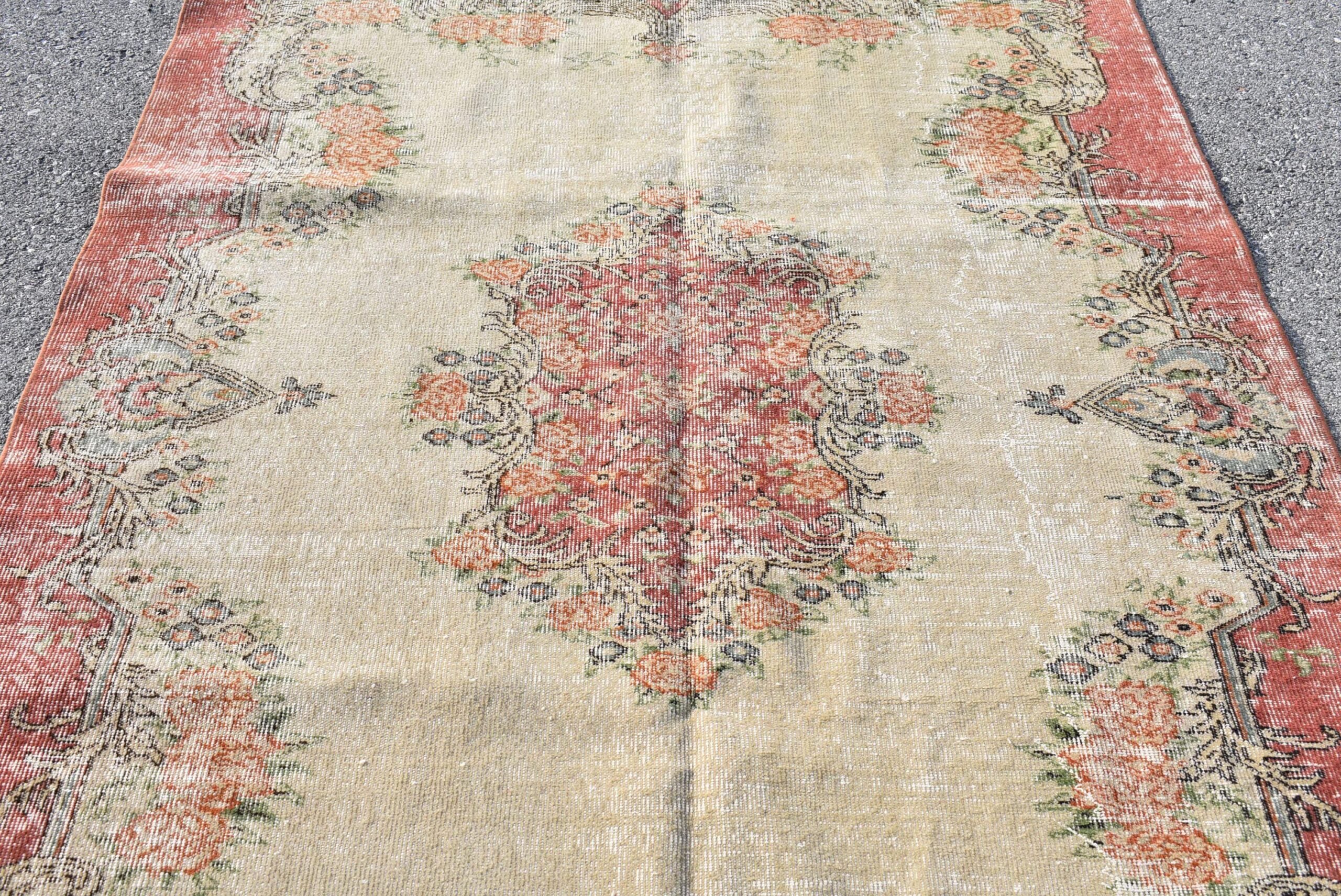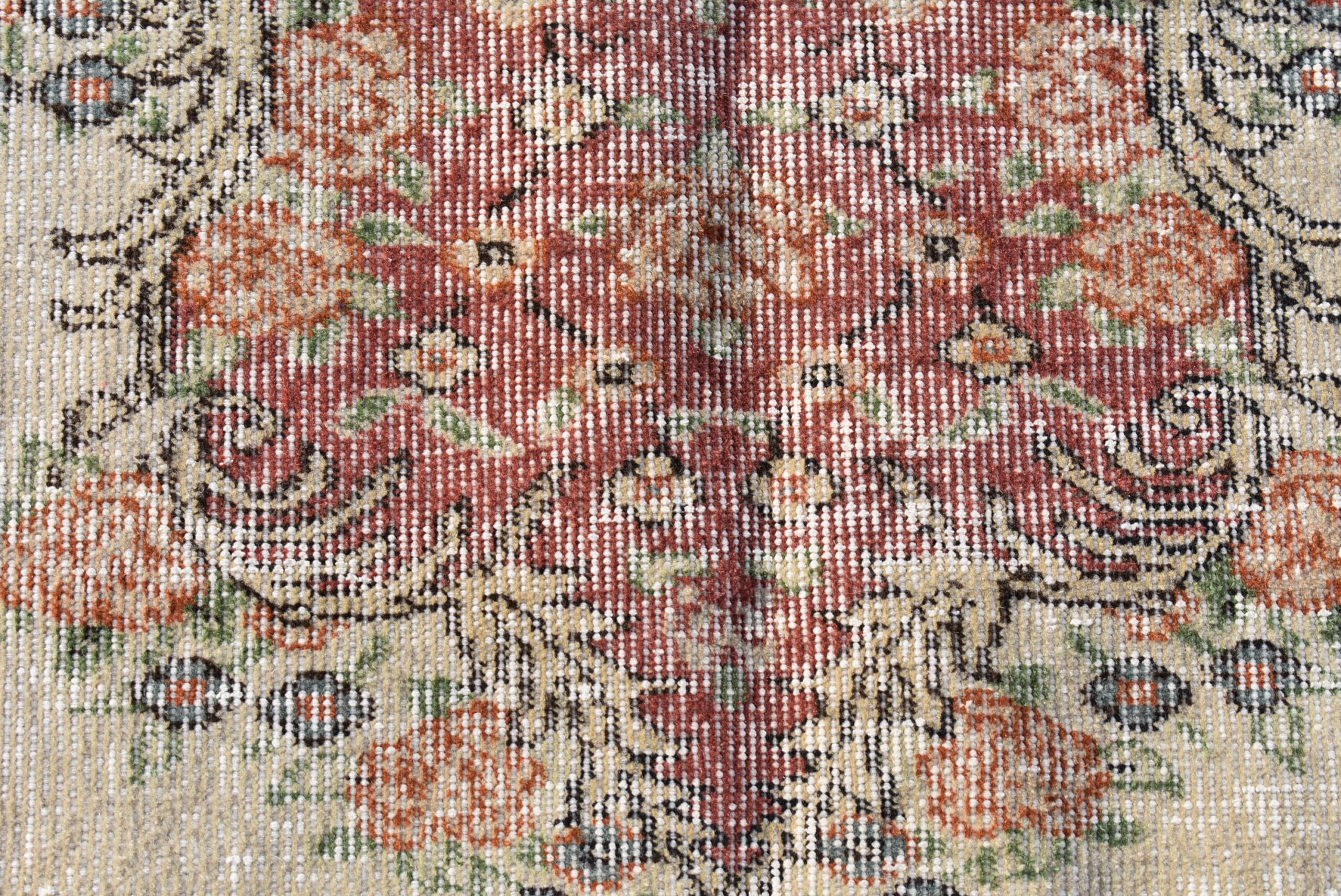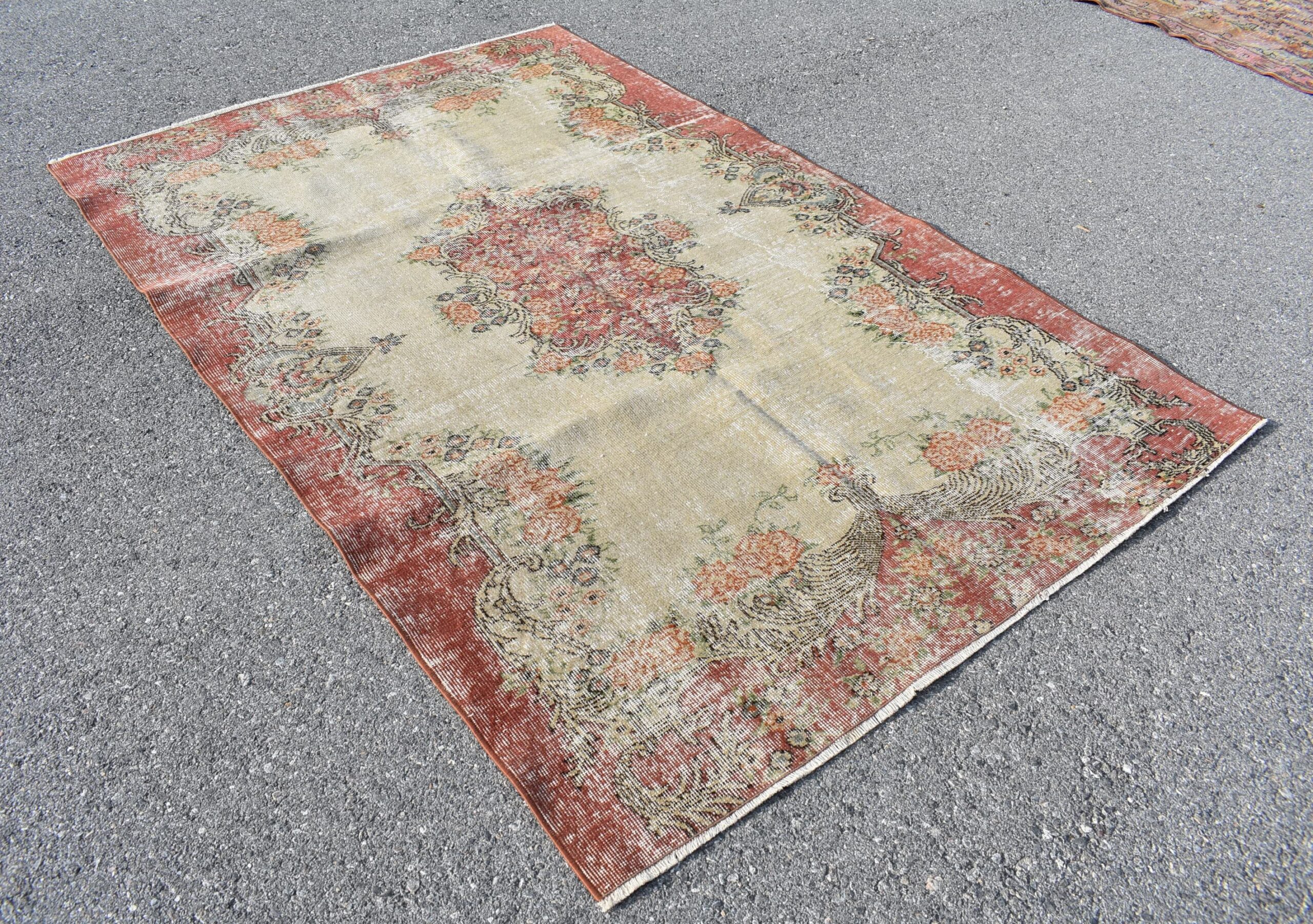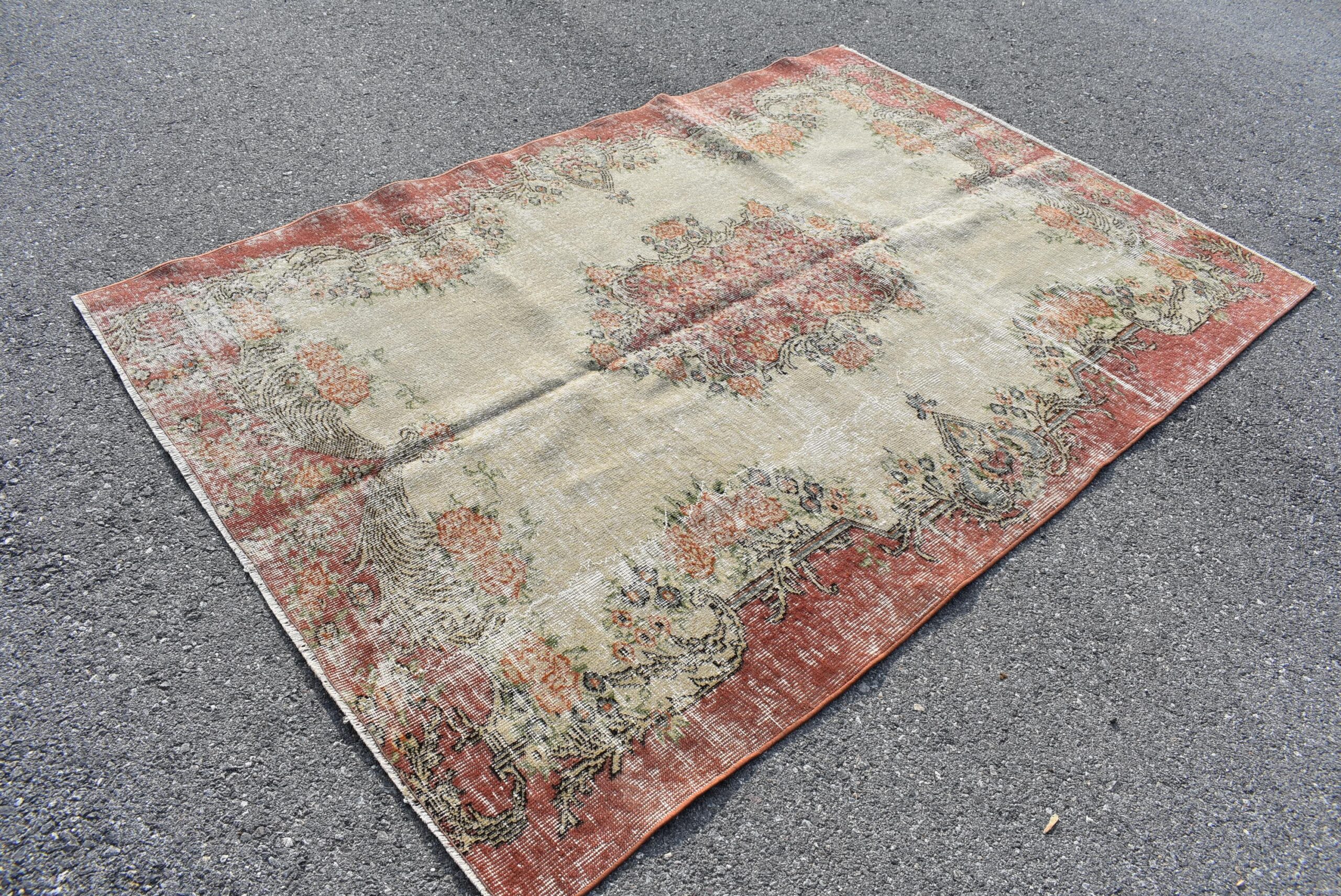 Lovely and unique 5.3 ft. x 7.9 ft. (162 cm x 240 cm) vintage Turkish rug hand-knotted in Turkey from organic wool. This is an authentic vintage Turkish rug from the 1980s that has worn beautifully to perfection.
