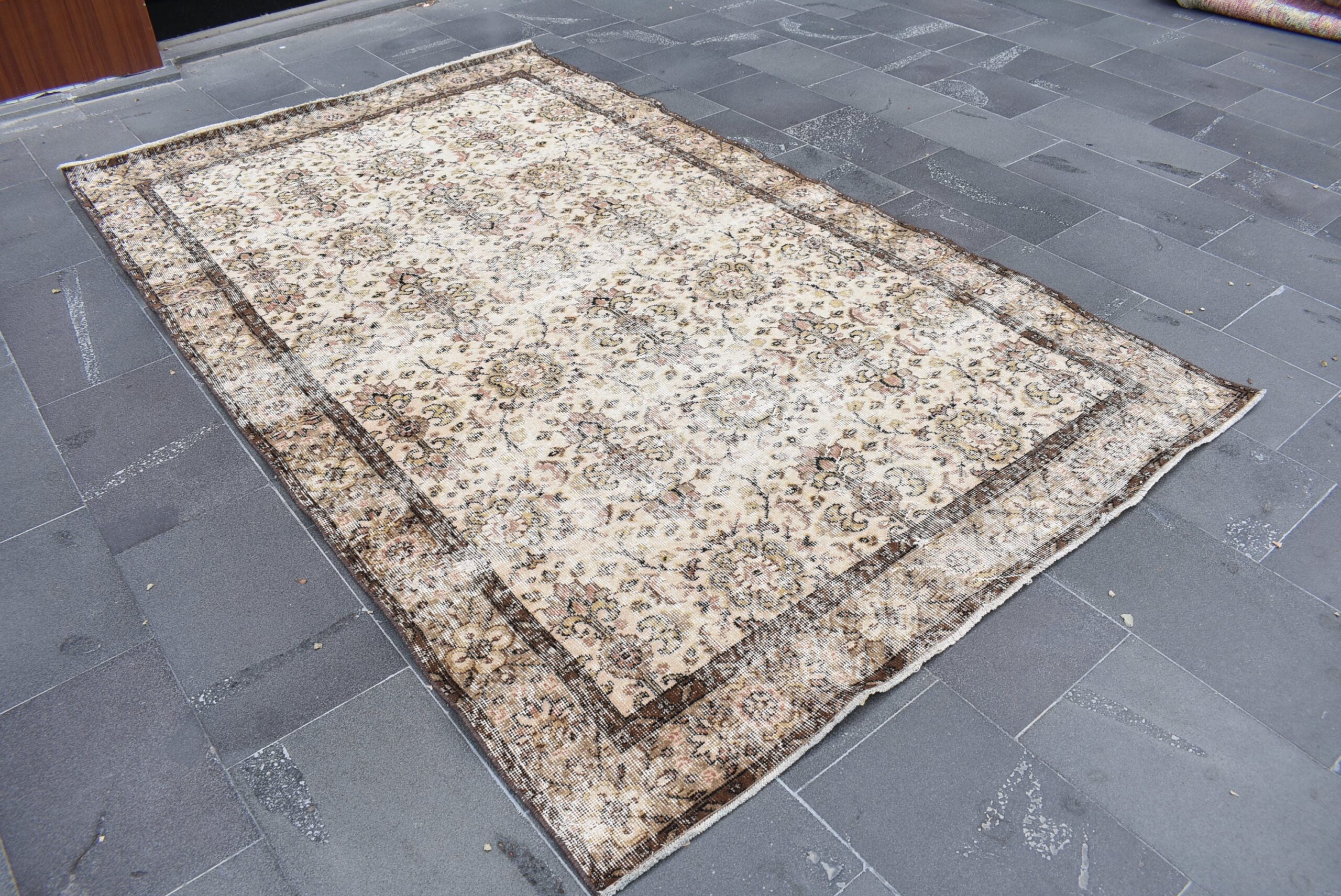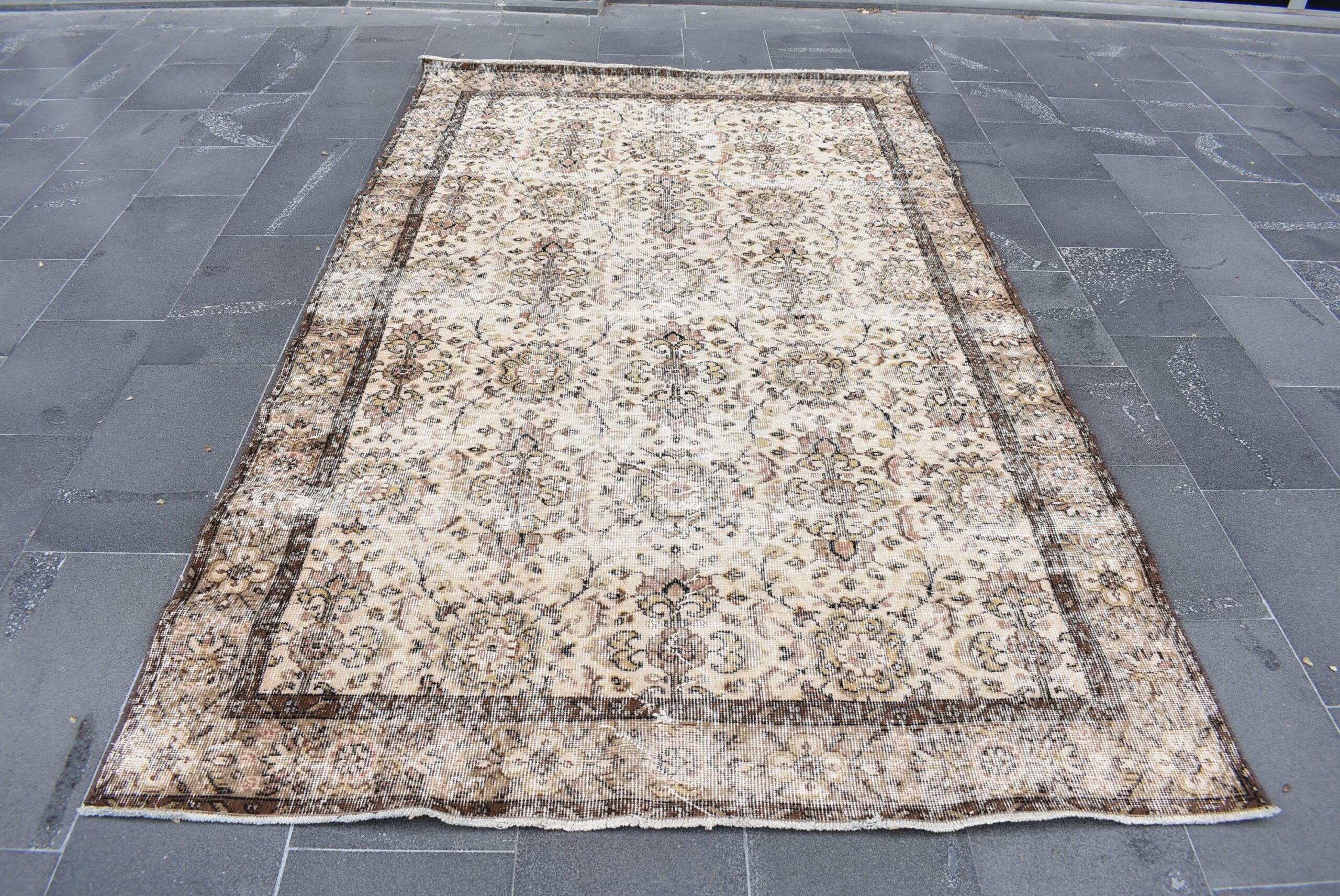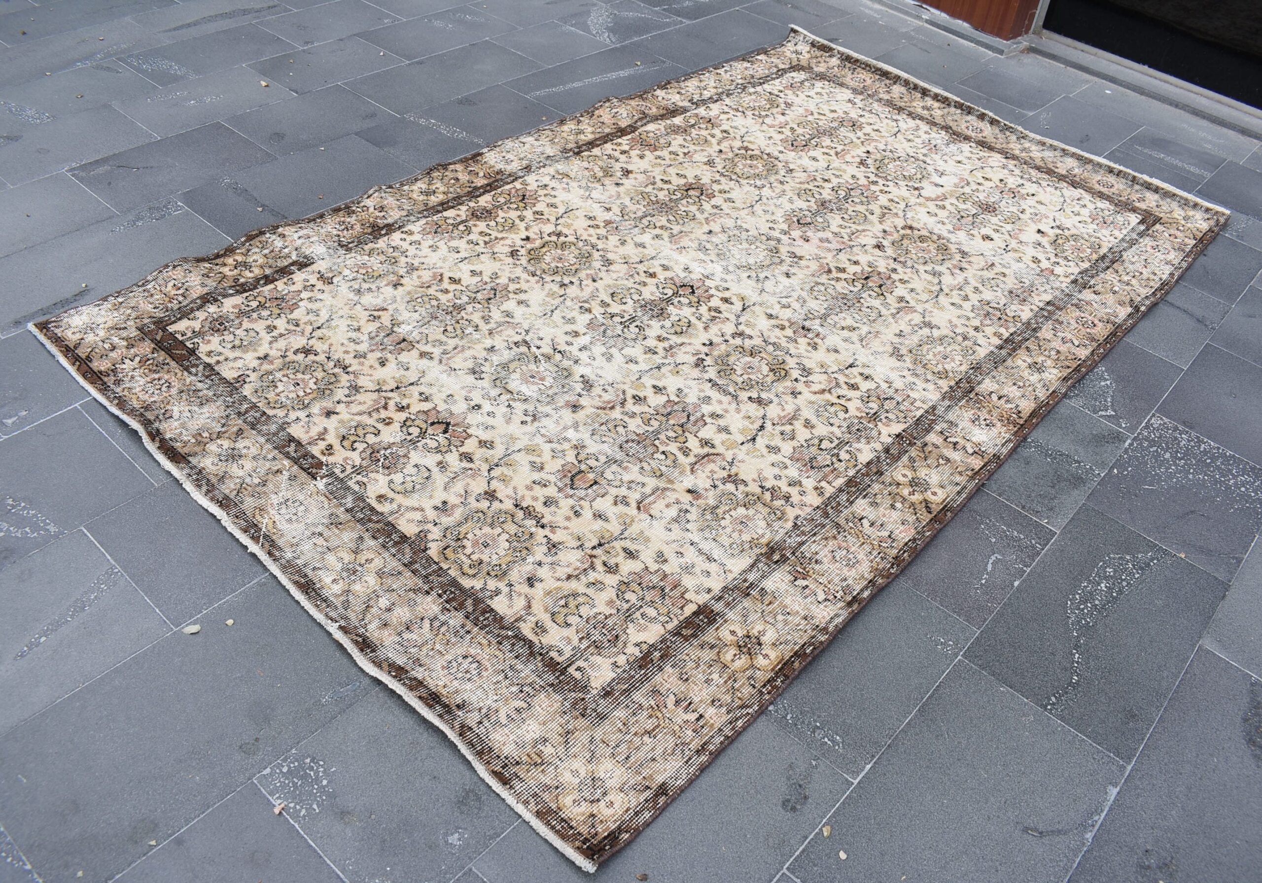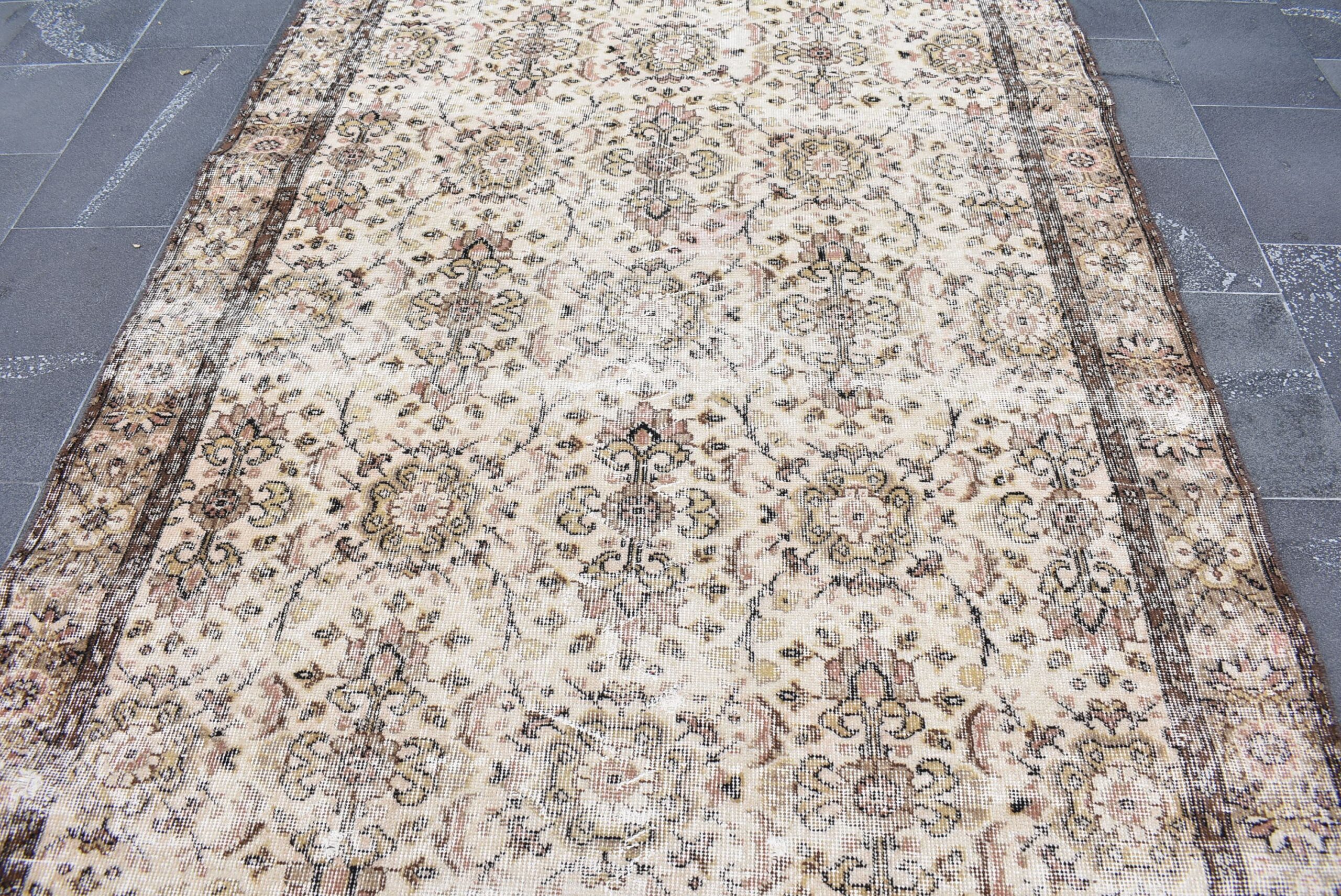 Pretty and one-of-a-kind 5.3 ft. x 8.9 ft. (162 cm x 270 cm) vintage Turkish rug hand-knotted in Turkey from organic wool. This is an authentic vintage Turkish rug from the 1980s that has worn splendidly to perfection.