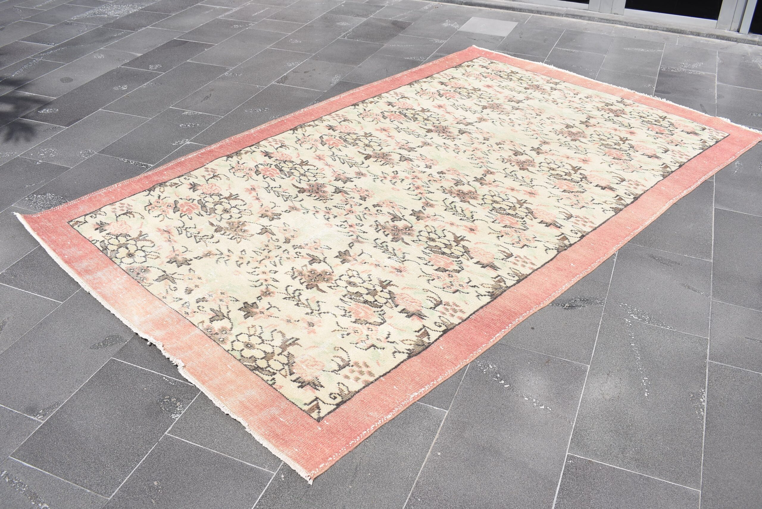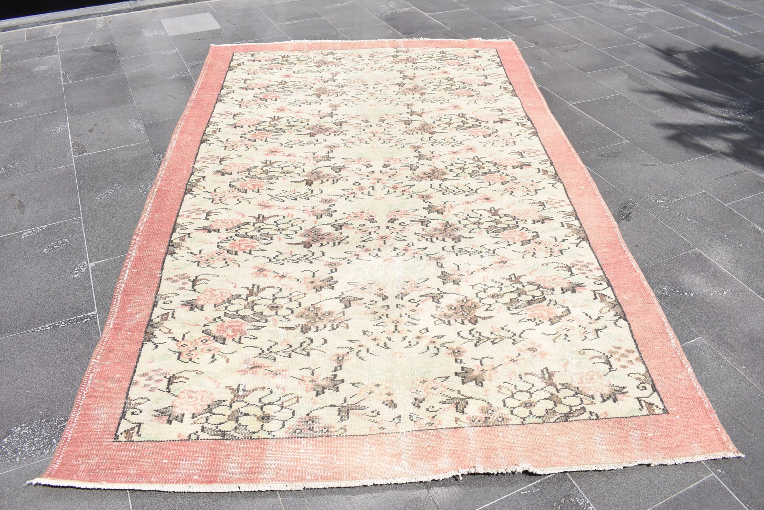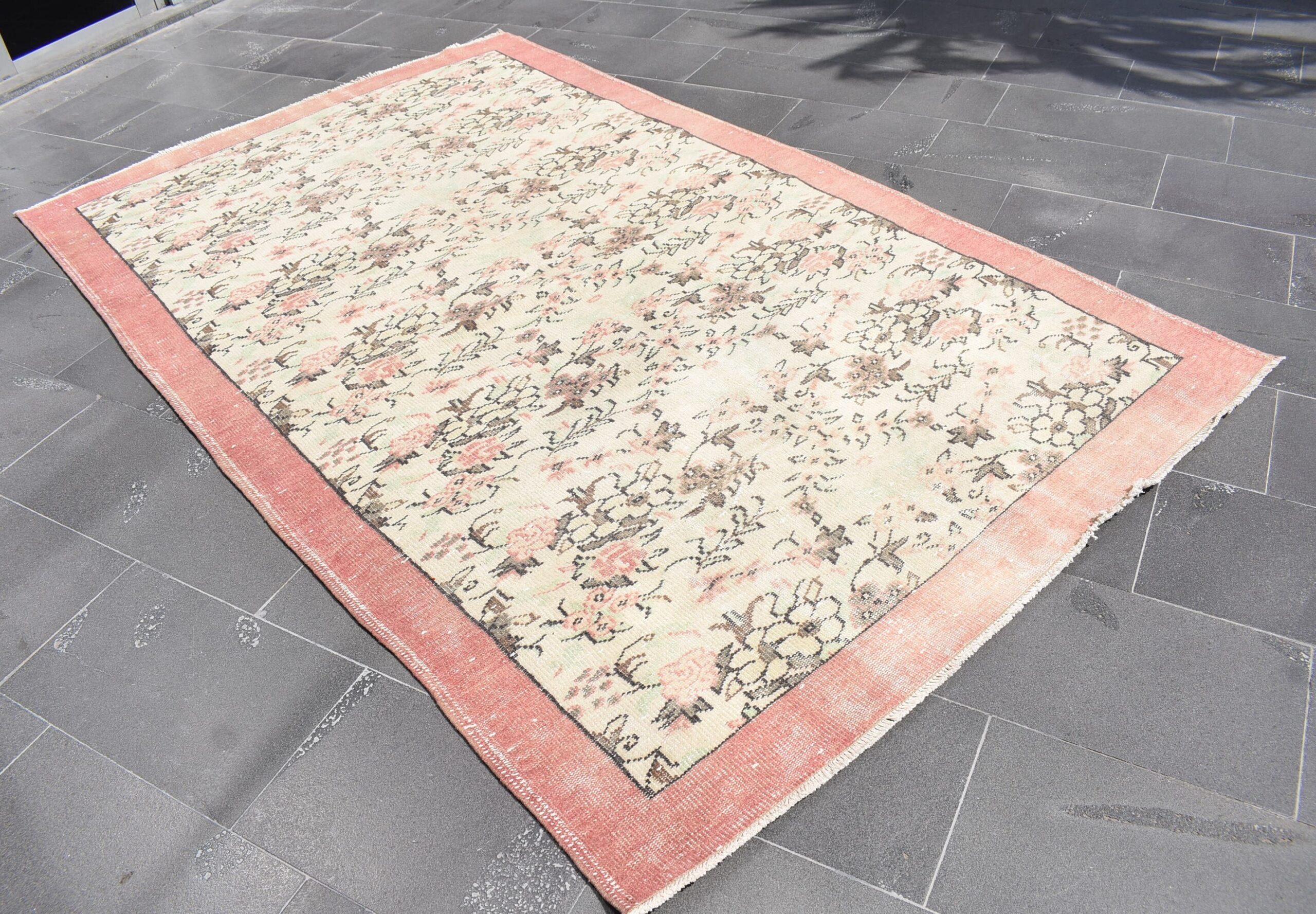 Beautiful and one-of-a-kind 5.3 ft. x 8.9 ft. (163 cm x 270 cm) vintage Turkish rug hand-knotted in Turkey from organic wool. This is an authentic vintage Turkish rug from the 1980s that has worn admirably to perfection.