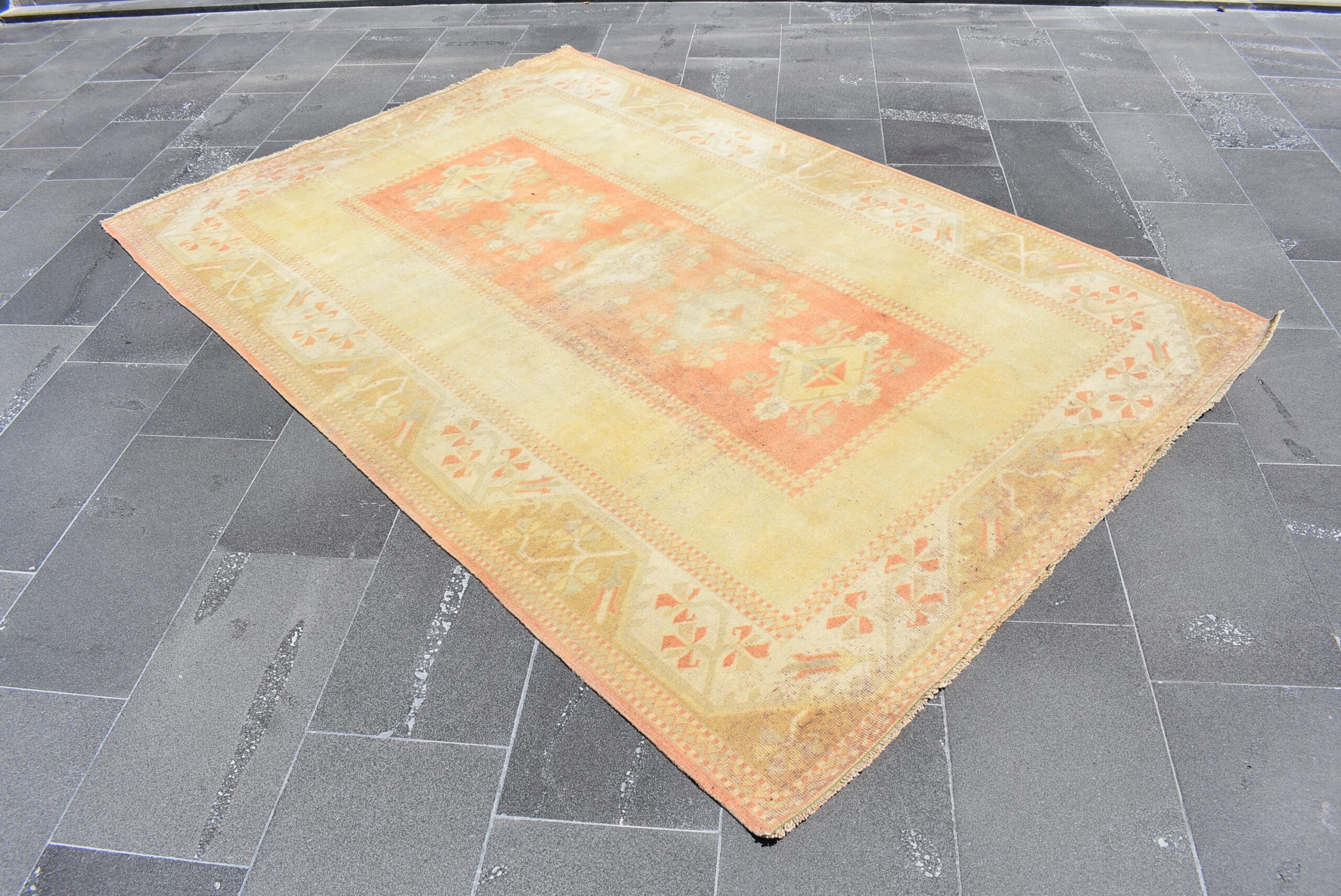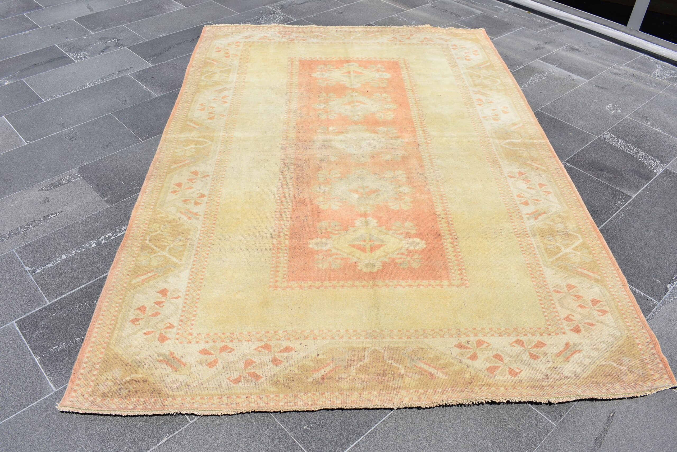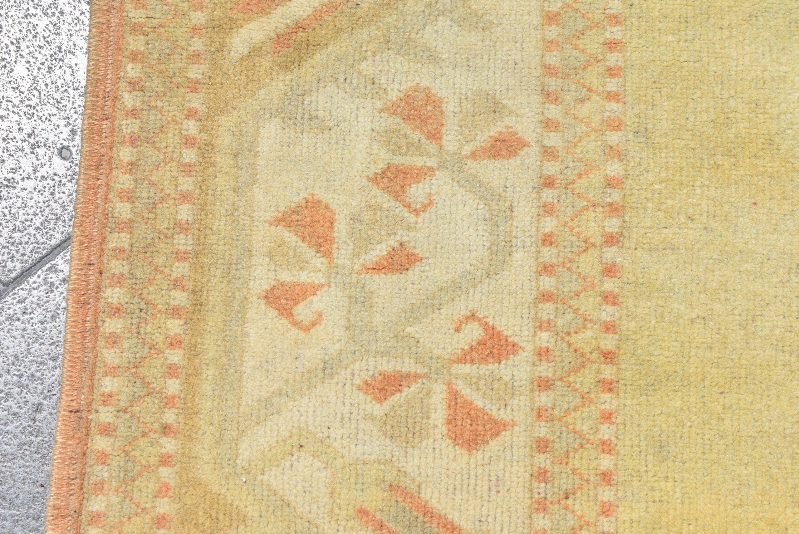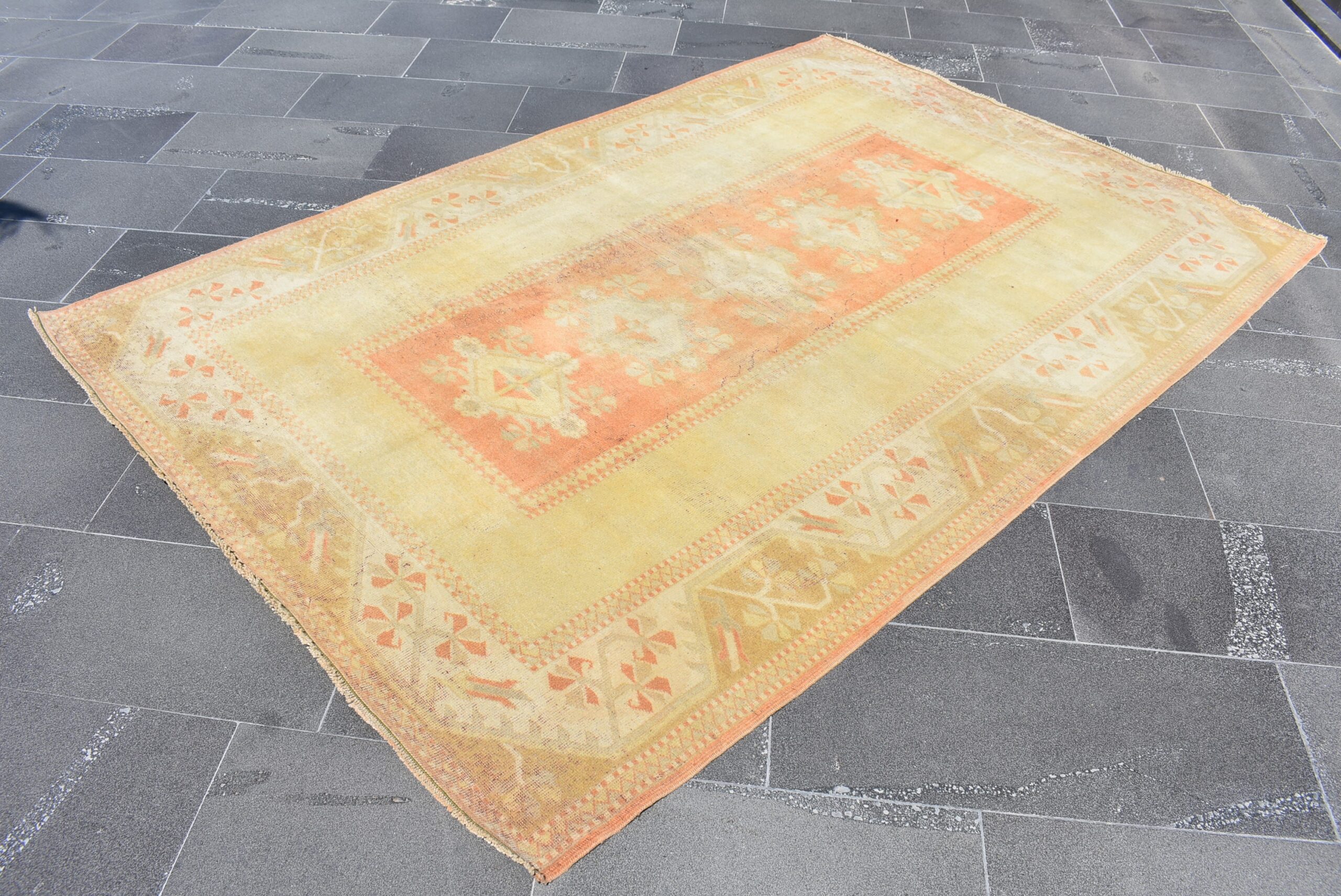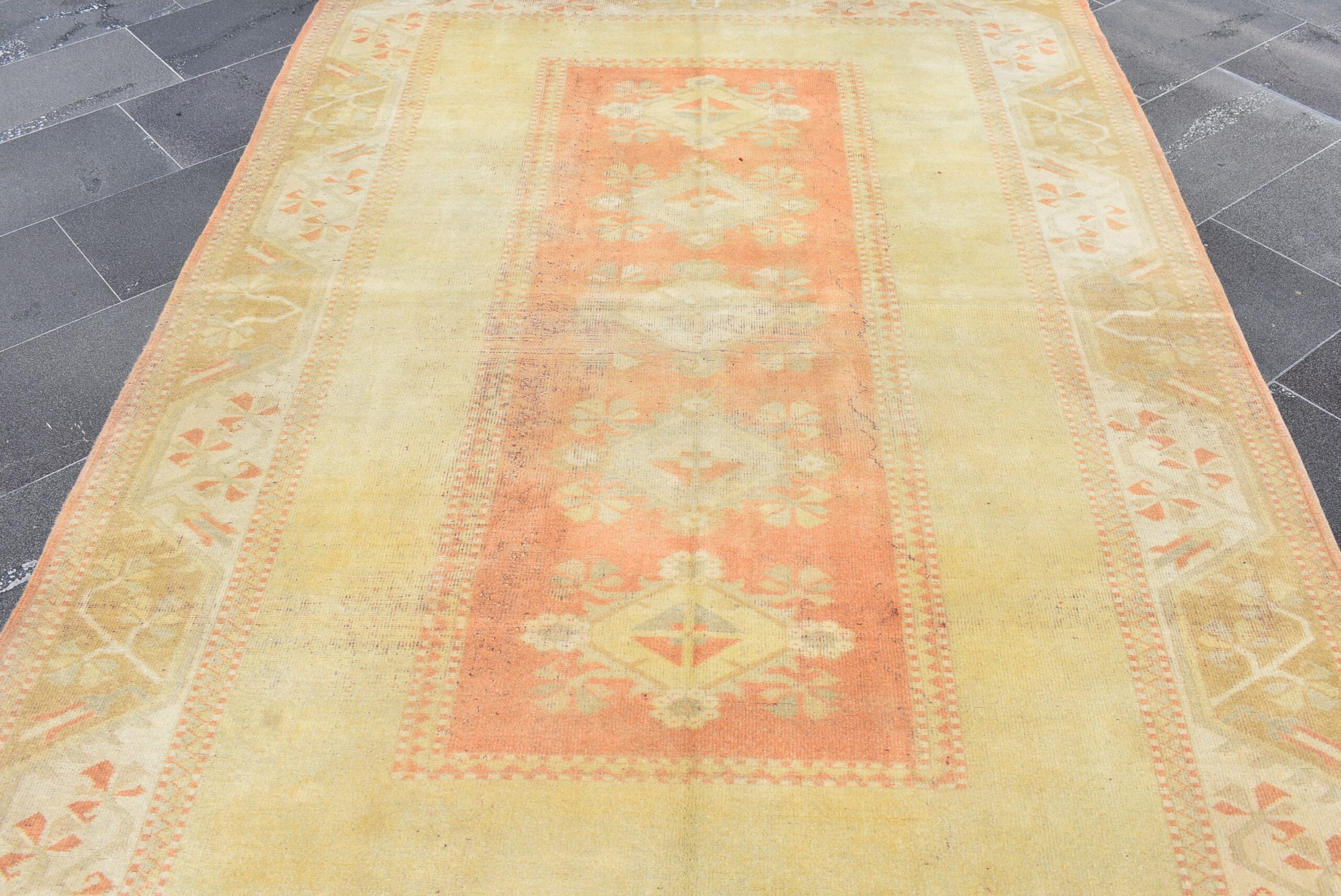 This is a vintage Turkish rug hand-knotted in a small village in Turkey by skilled Anatolian women during around the 1980s. It is made from natural wool (sheep) and dyed using all-natural (vegetable) dyes. Natural materials are more durable than synthetic materials guaranteeing a rug that can last for years while natural dyes provide colors that gets more beautiful as years pass by especially when in direct sunlight.