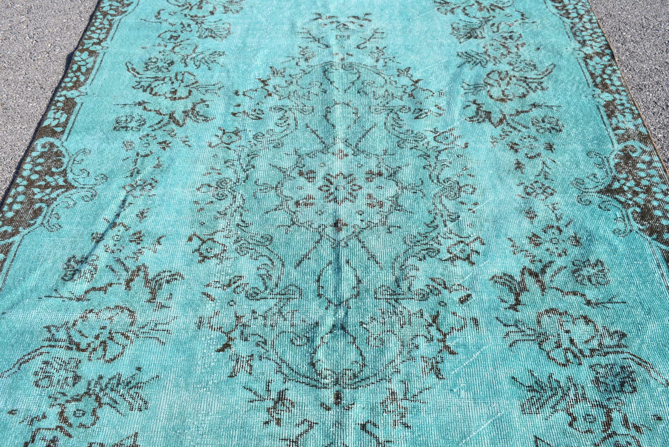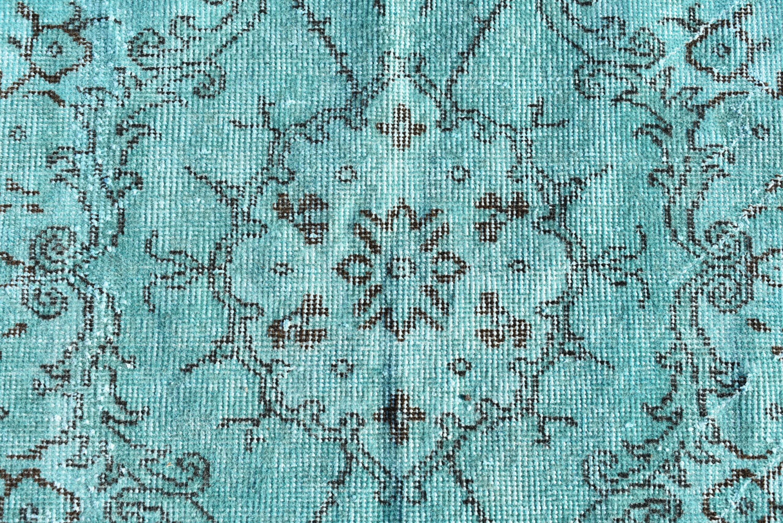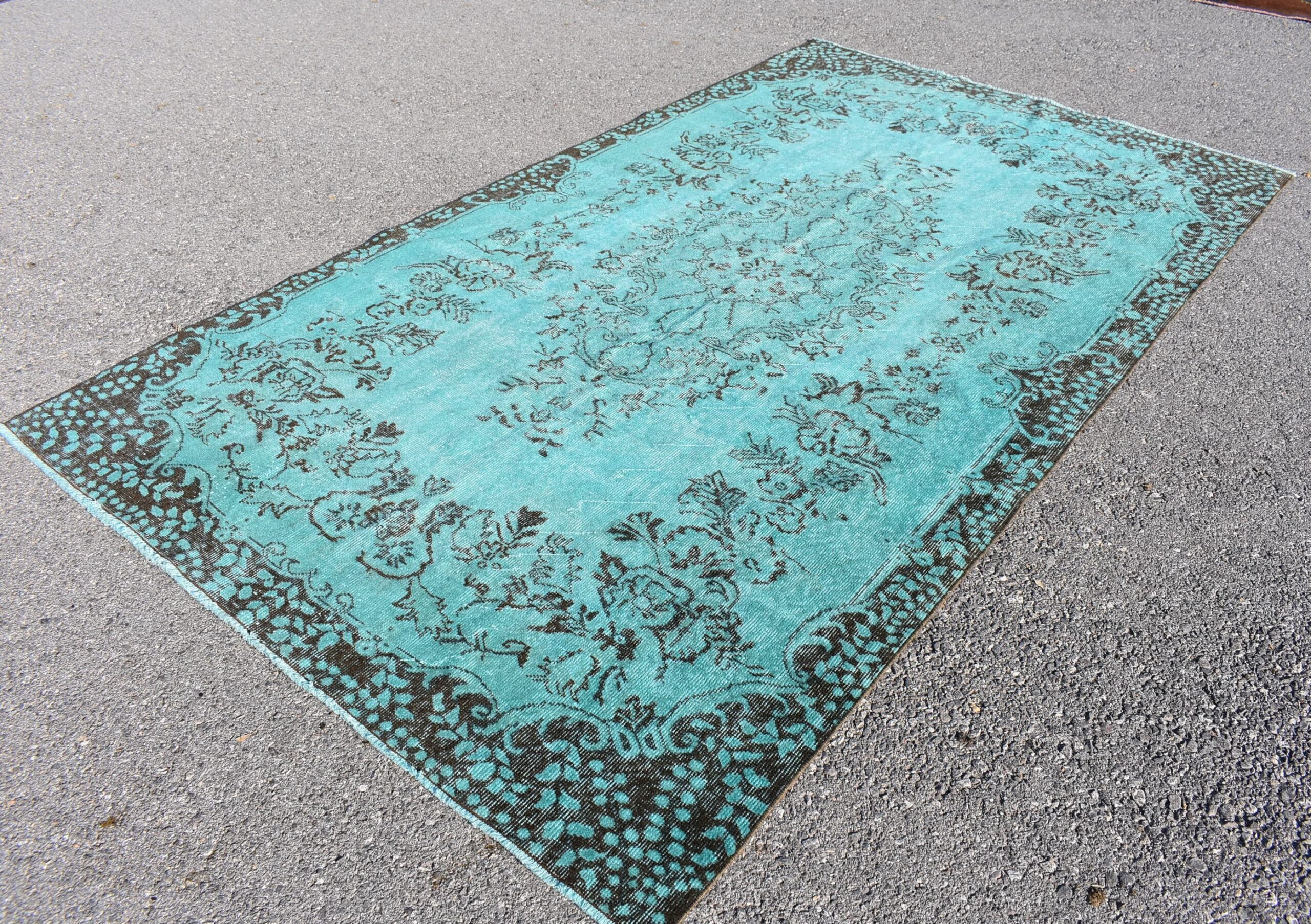 This is a vintage overdyed rug made through over-dyeing an authentic vintage Turkish rug using natural (vegetable) dyes. This rug originated in a small village in Turkey where it was hand-knotted from natural wool (sheep) by skilled Anatolian women during around the 1980s. Natural materials are more durable than synthetic materials guaranteeing a rug that can last for years while natural dyes provide colors that gets more beautiful as years pass by especially when in direct sunlight.