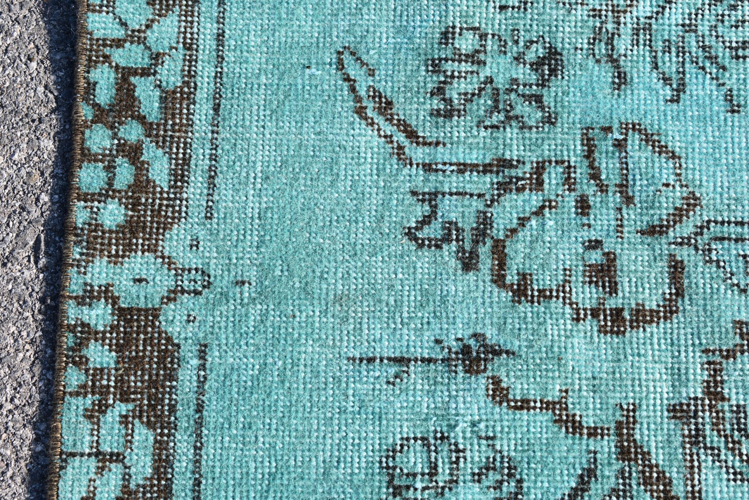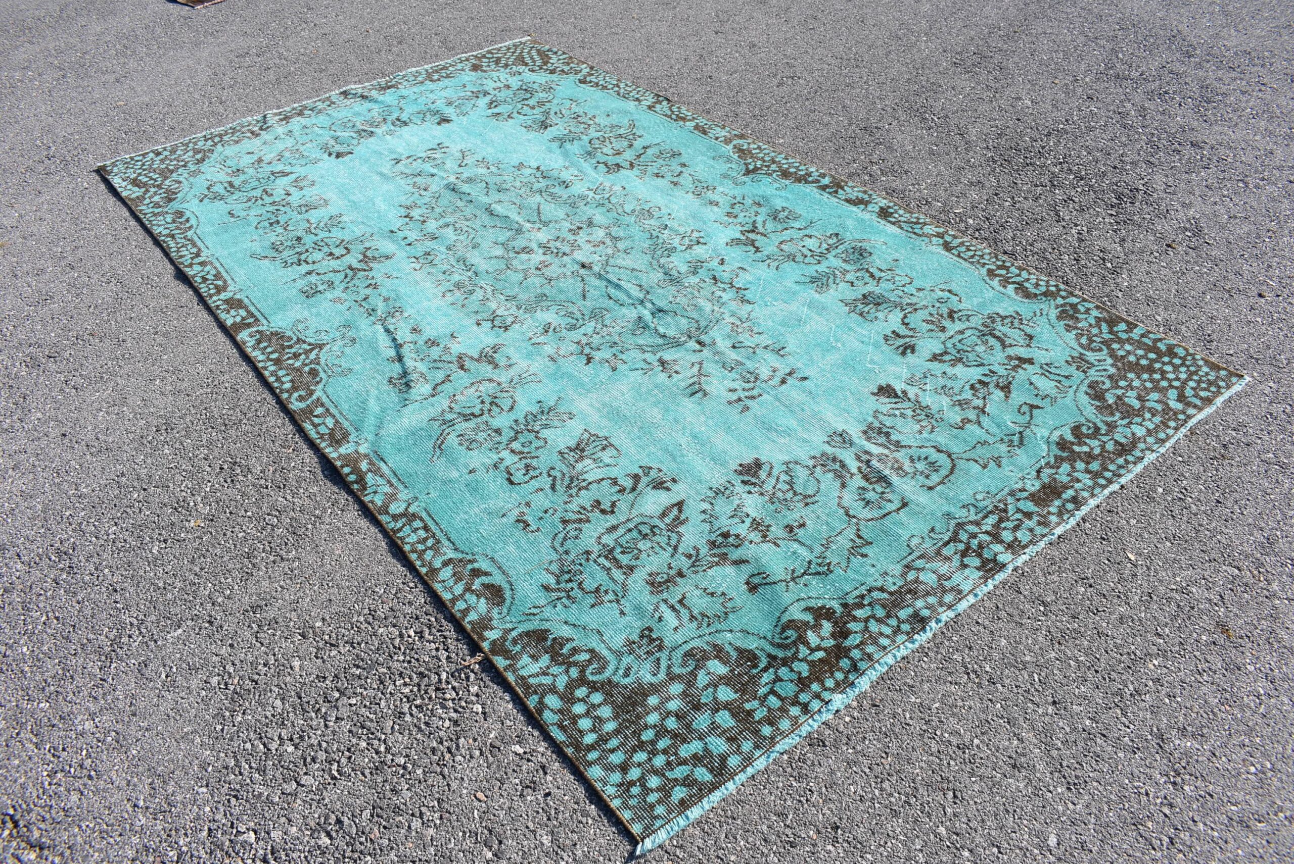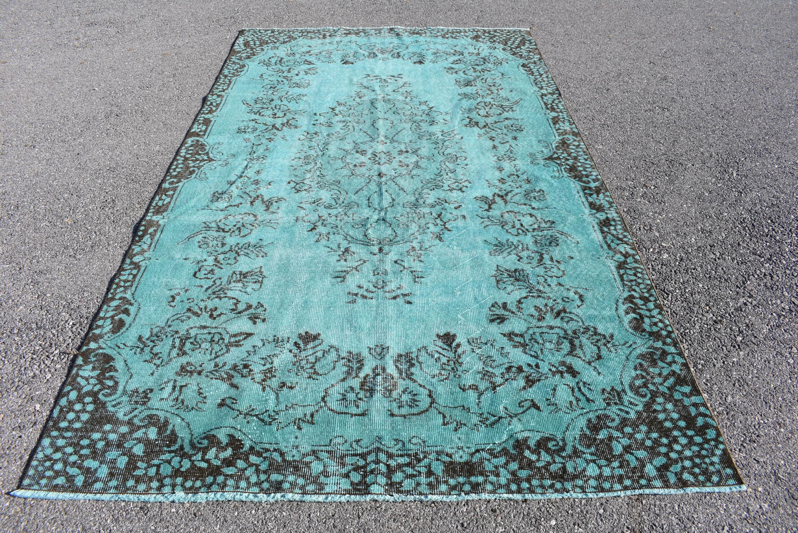 This is a vintage overdyed rug made through over-dyeing an authentic vintage Turkish rug using natural (vegetable) dyes. This rug originated in a small village in Turkey where it was hand-knotted from natural wool (sheep) by skilled Anatolian women during around the 1980s. Natural materials are more durable than synthetic materials guaranteeing a rug that can last for years while natural dyes provide colors that gets more beautiful as years pass by especially when in direct sunlight.