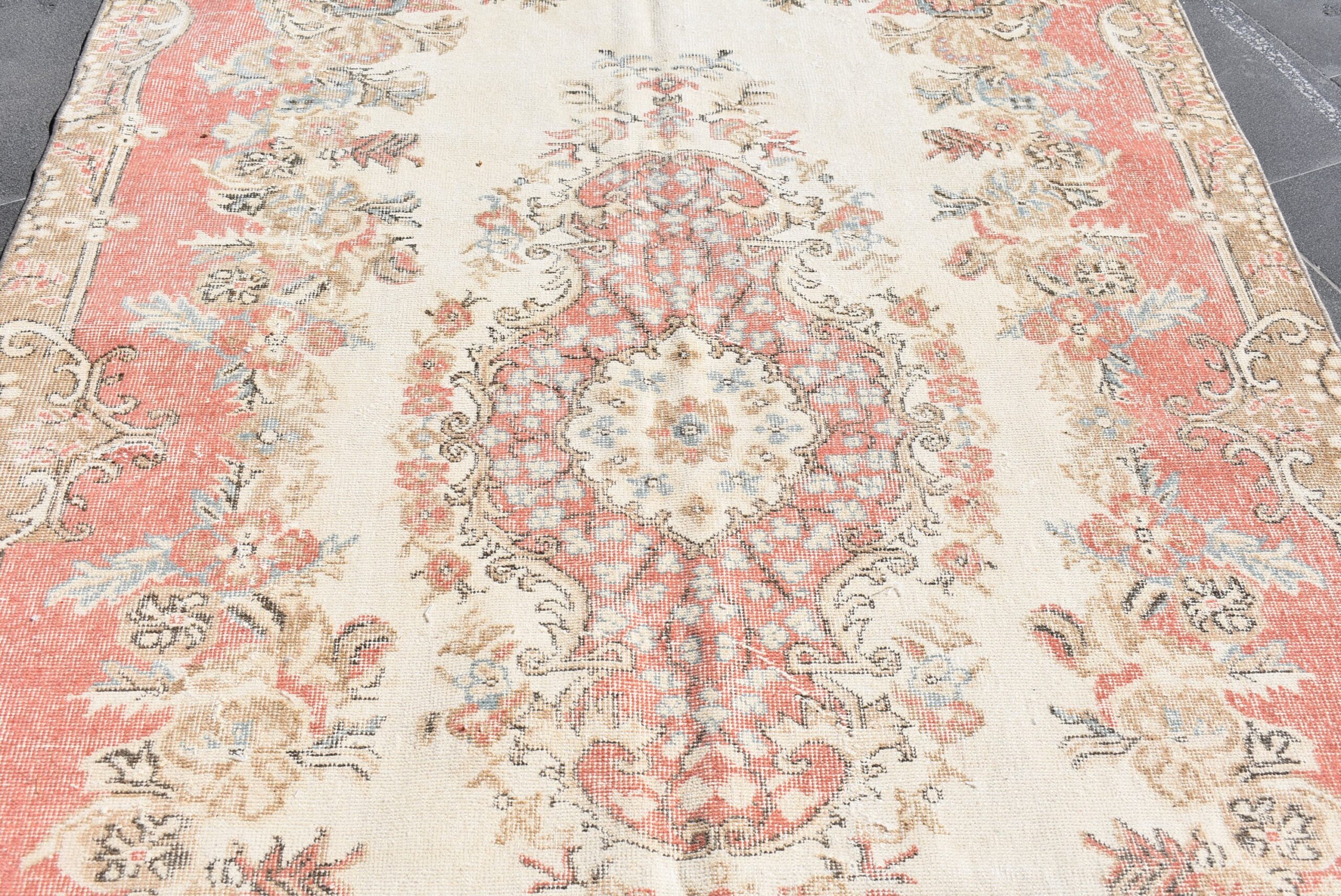 Pretty and one-of-a-kind 5.3 ft. x 9.4 ft. (161 cm x 287 cm) vintage Turkish rug hand-knotted in Turkey from organic wool. This is an authentic vintage Turkish rug from the 1990s that has worn splendidly to perfection.
