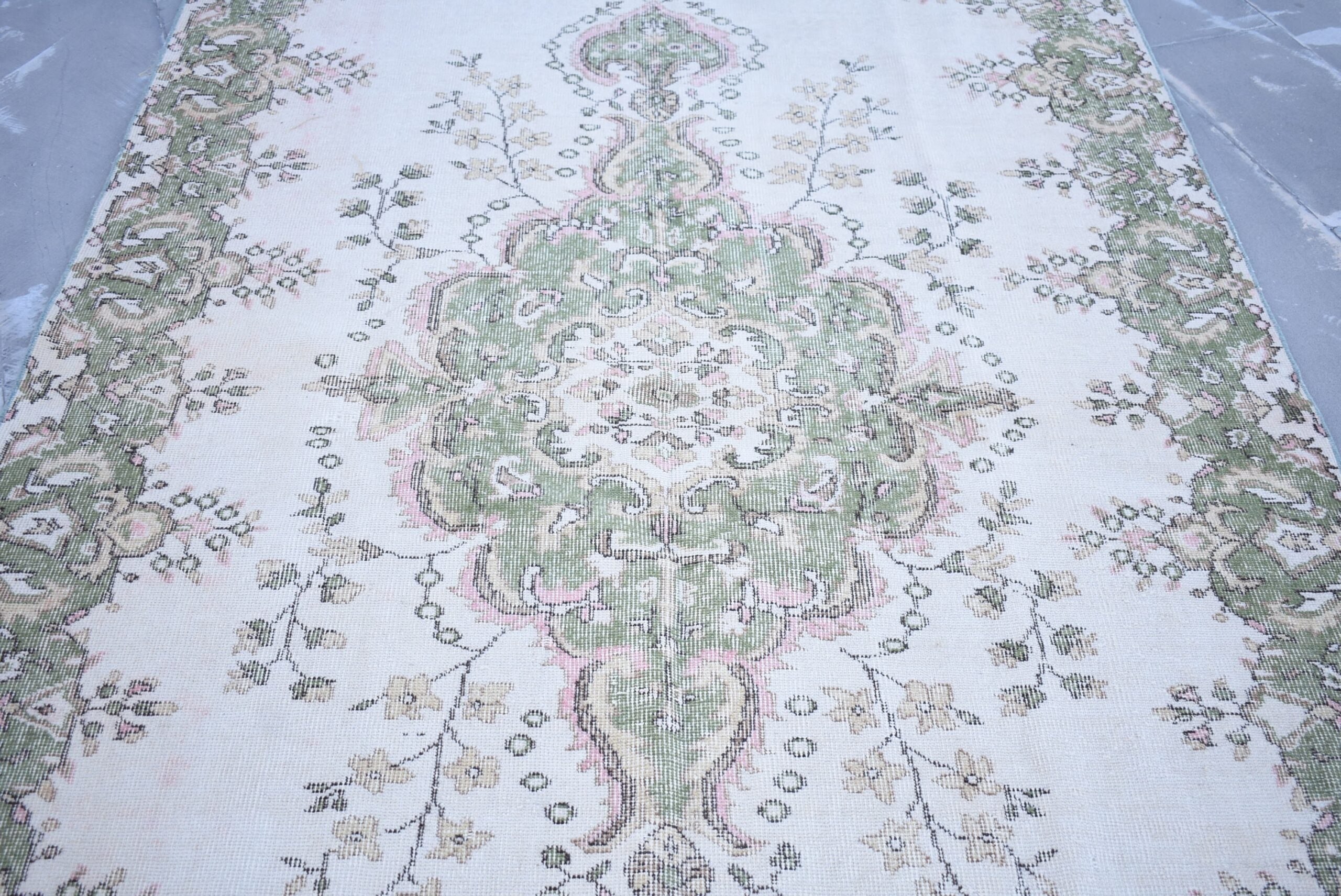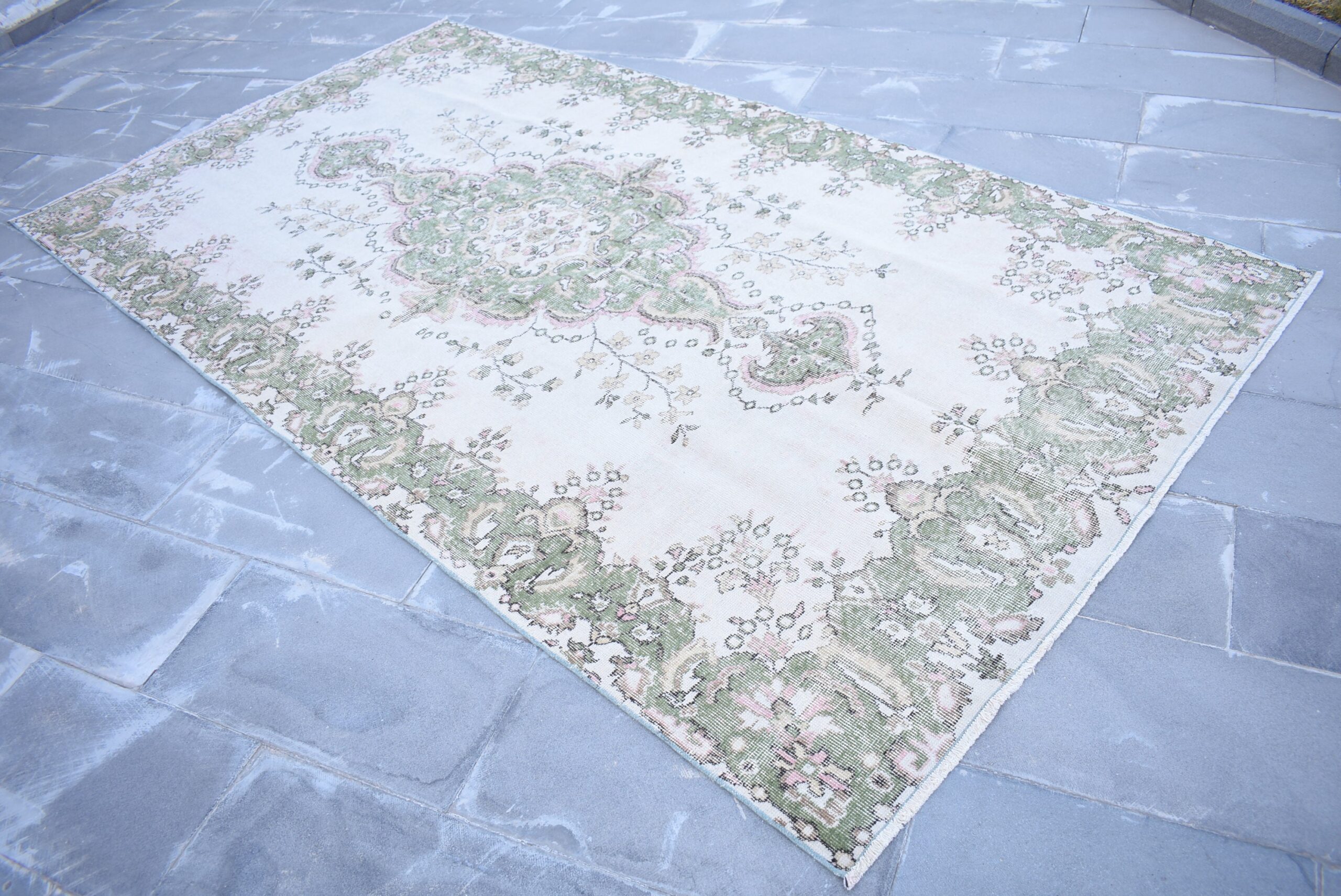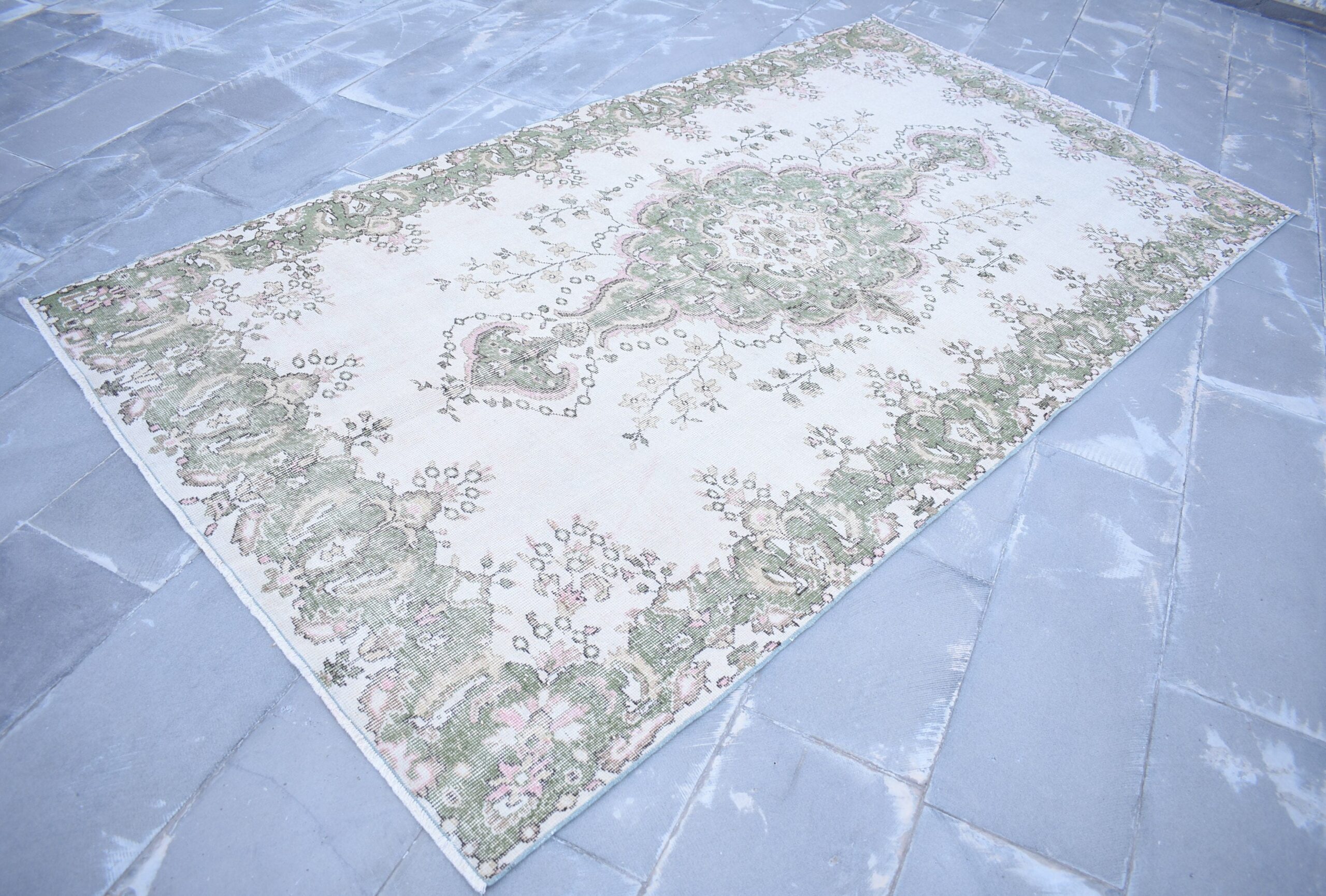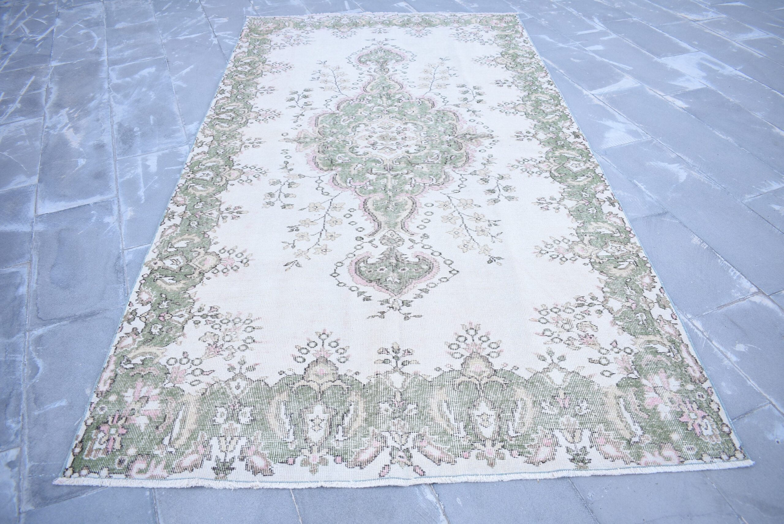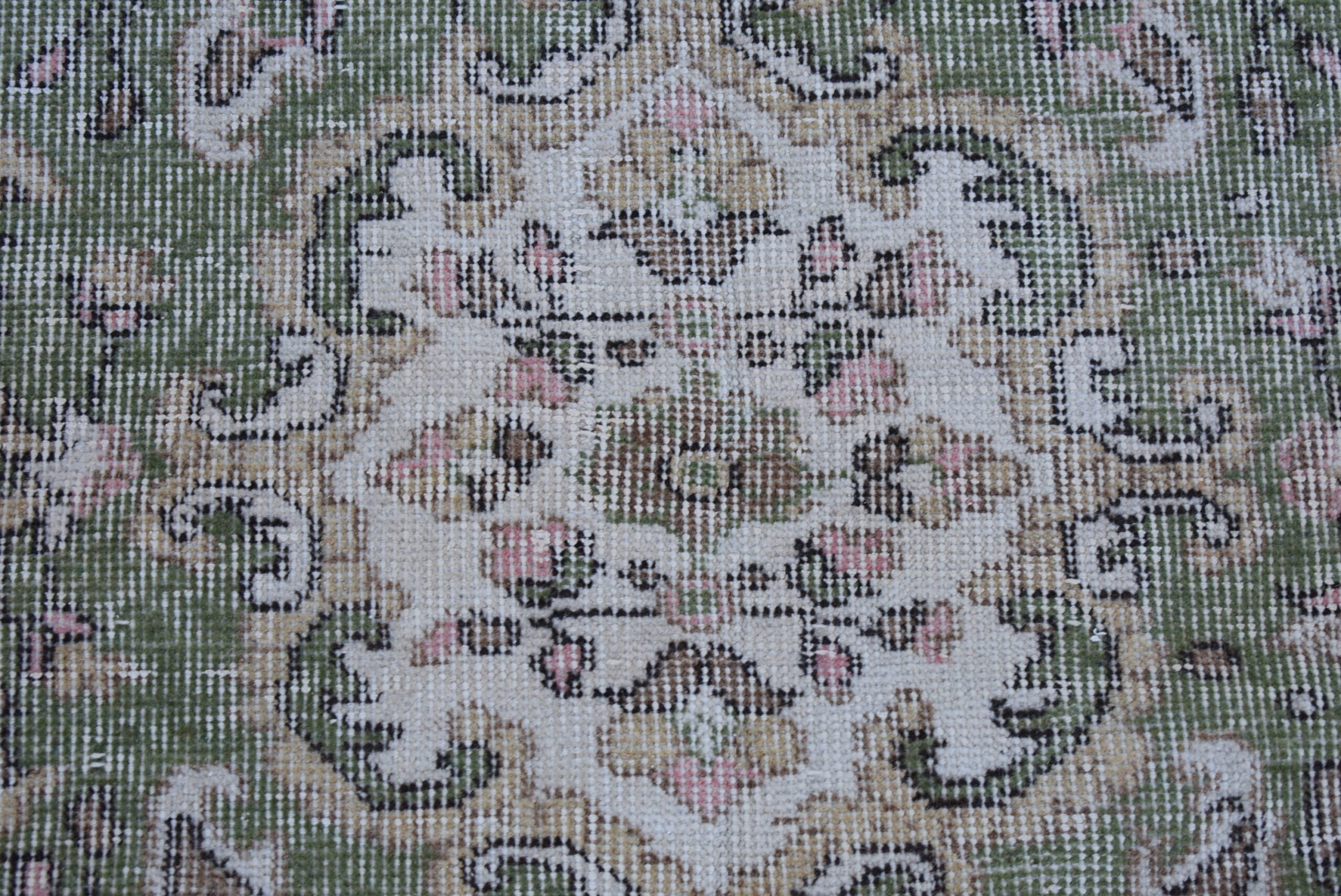 Pretty and one-of-a-kind 5.3 ft. x 9.9 ft. (163 cm x 302 cm) vintage Turkish rug hand-knotted in Turkey from organic wool. This is an authentic vintage Turkish rug from the 1980s that has worn splendidly to perfection.