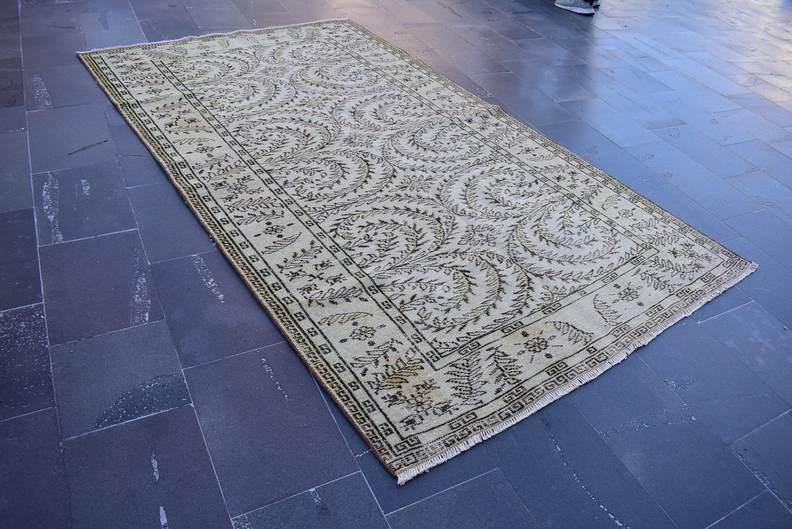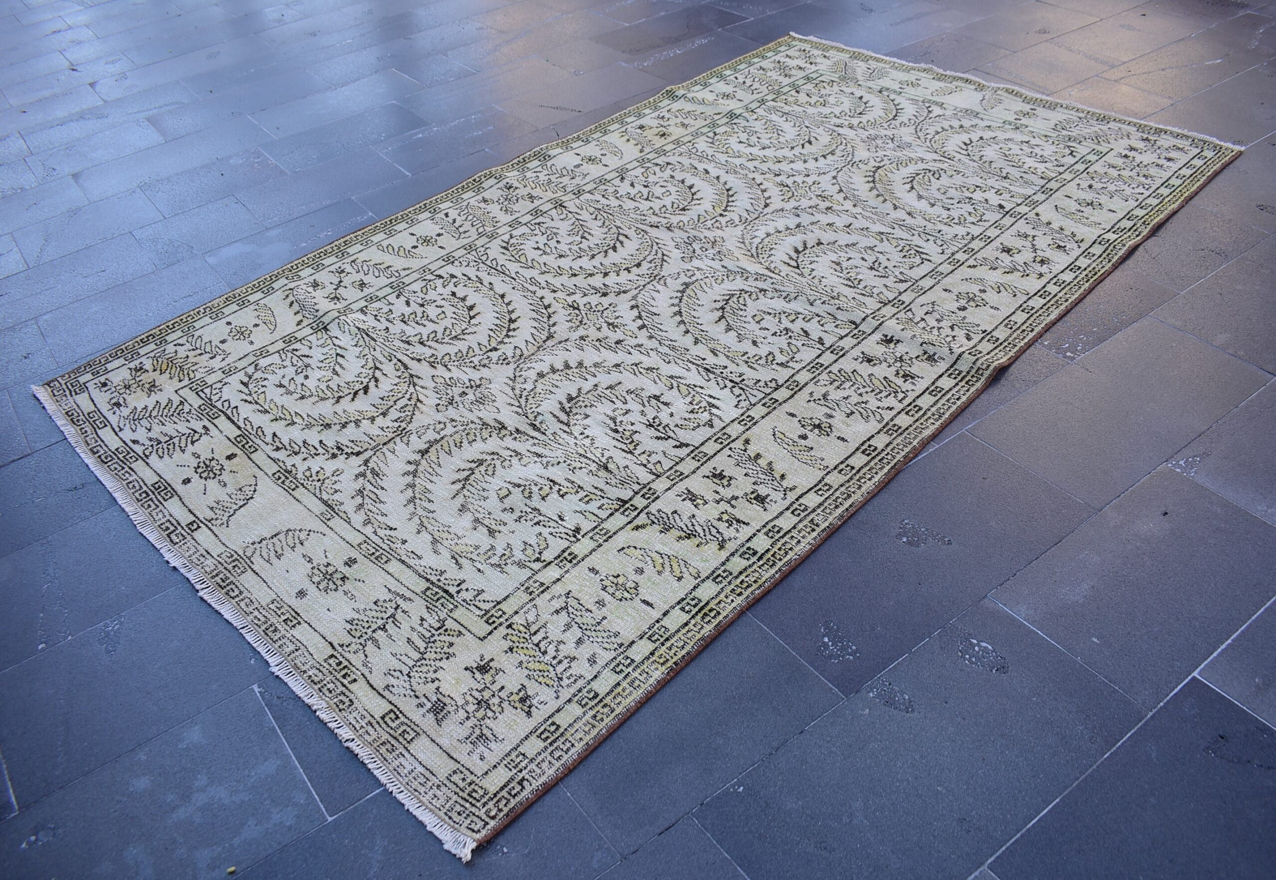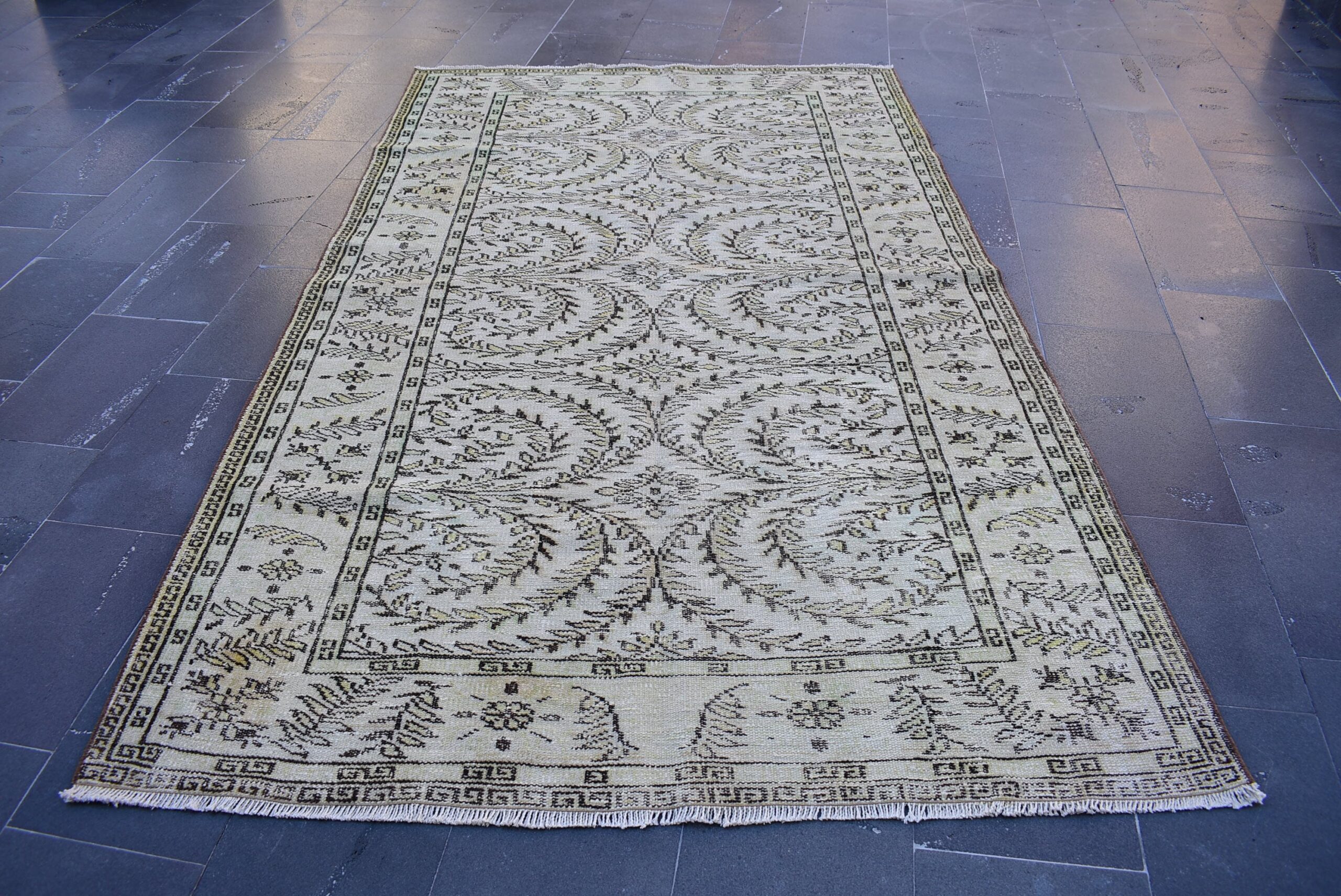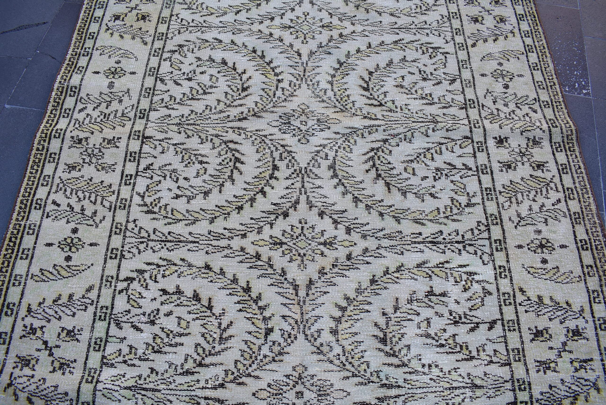 Beautiful and one-of-a-kind 5.3 ft. x 9 ft. (163 cm x 273 cm) vintage Turkish rug hand-knotted in Turkey from organic wool. This is an authentic vintage Turkish rug from the 1980s that has worn admirably to perfection.