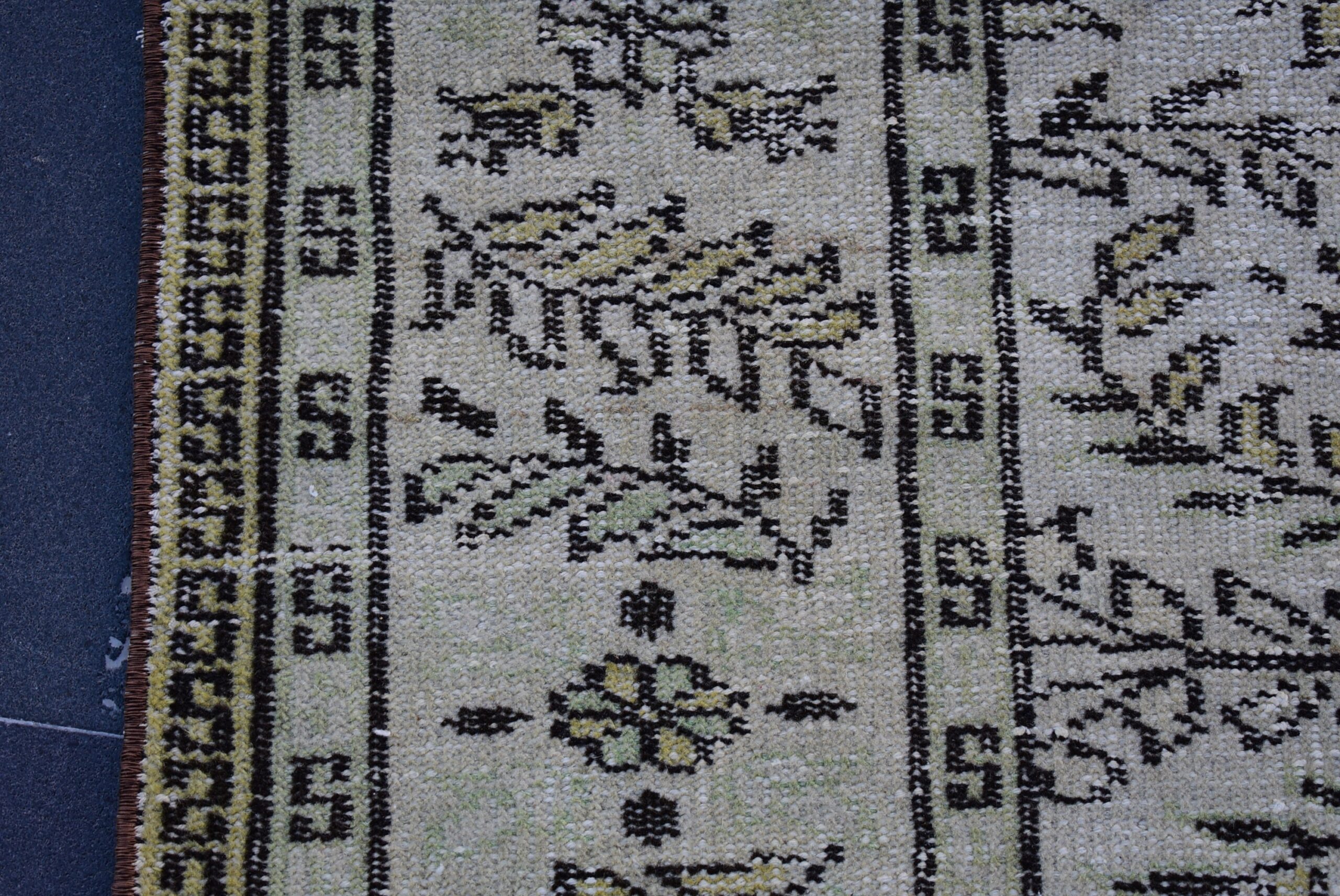 This is a vintage Turkish rug hand-knotted in a small village in Turkey by skilled Anatolian women during around the 1980s. It is made from natural wool (sheep) and dyed using all-natural (vegetable) dyes. Natural materials are more durable than synthetic materials guaranteeing a rug that can last for years while natural dyes provide colors that gets more beautiful as years pass by especially when in direct sunlight.