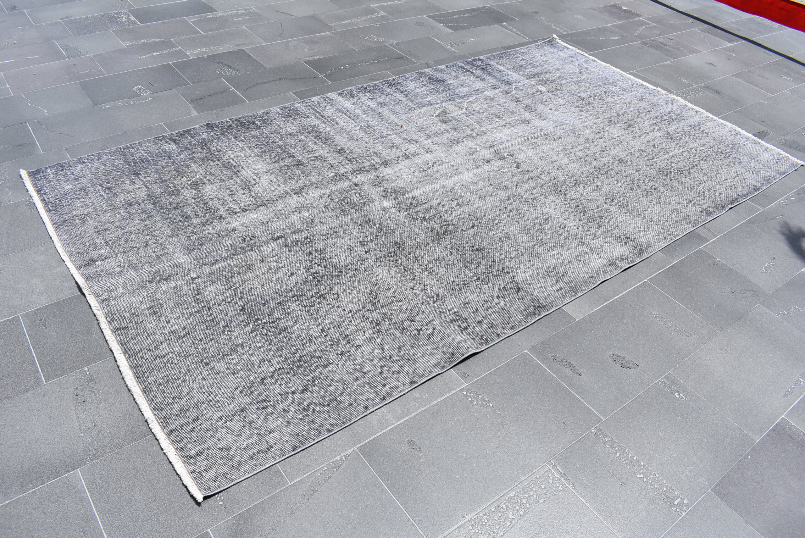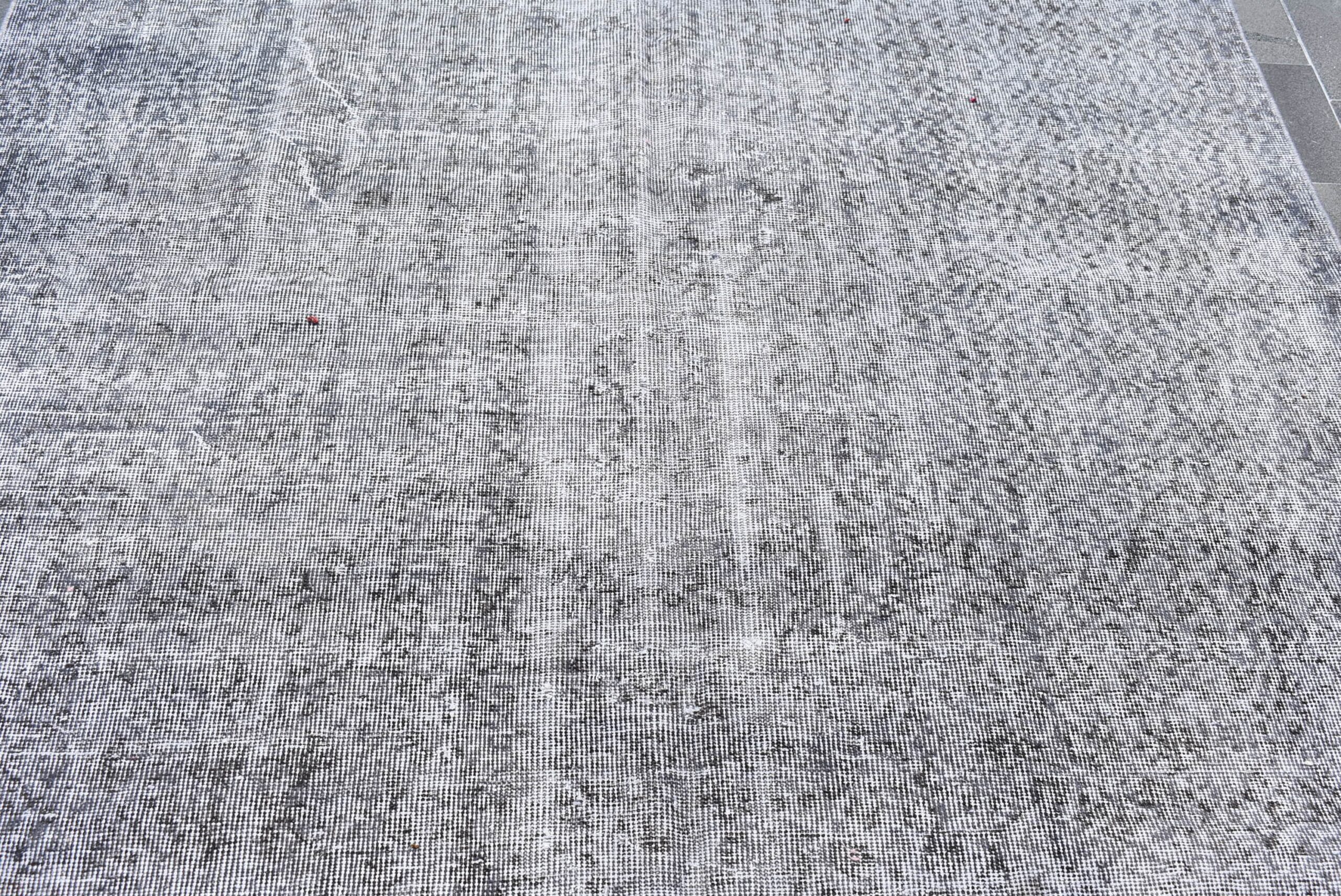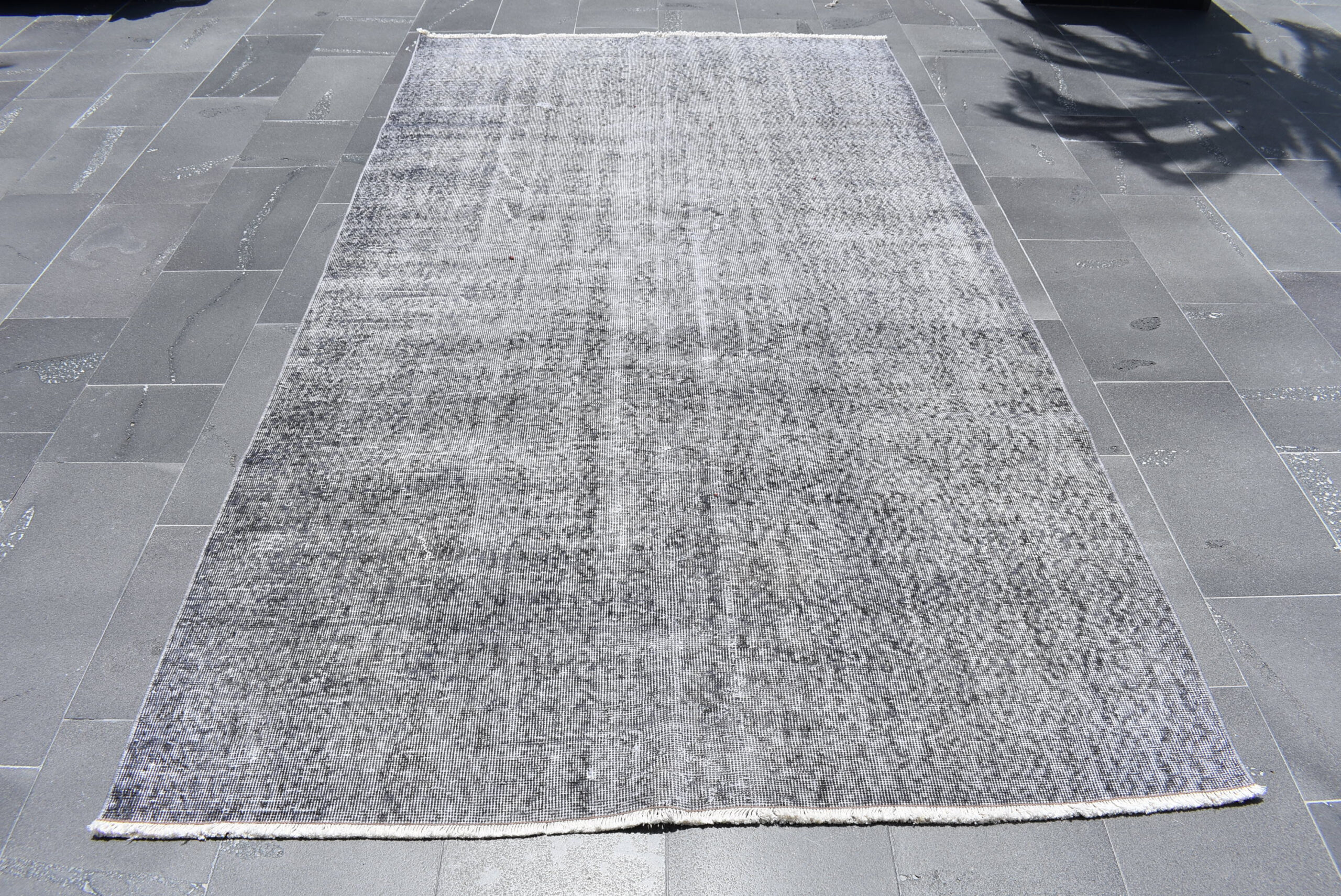 Lovely and unique 5.4 ft. x 10.1 ft. (164 cm x 309 cm) vintage overdyed rug hand-knotted in Turkey from organic wool. This is an authentic vintage rug from the 1980s that has worn beautifully to perfection.