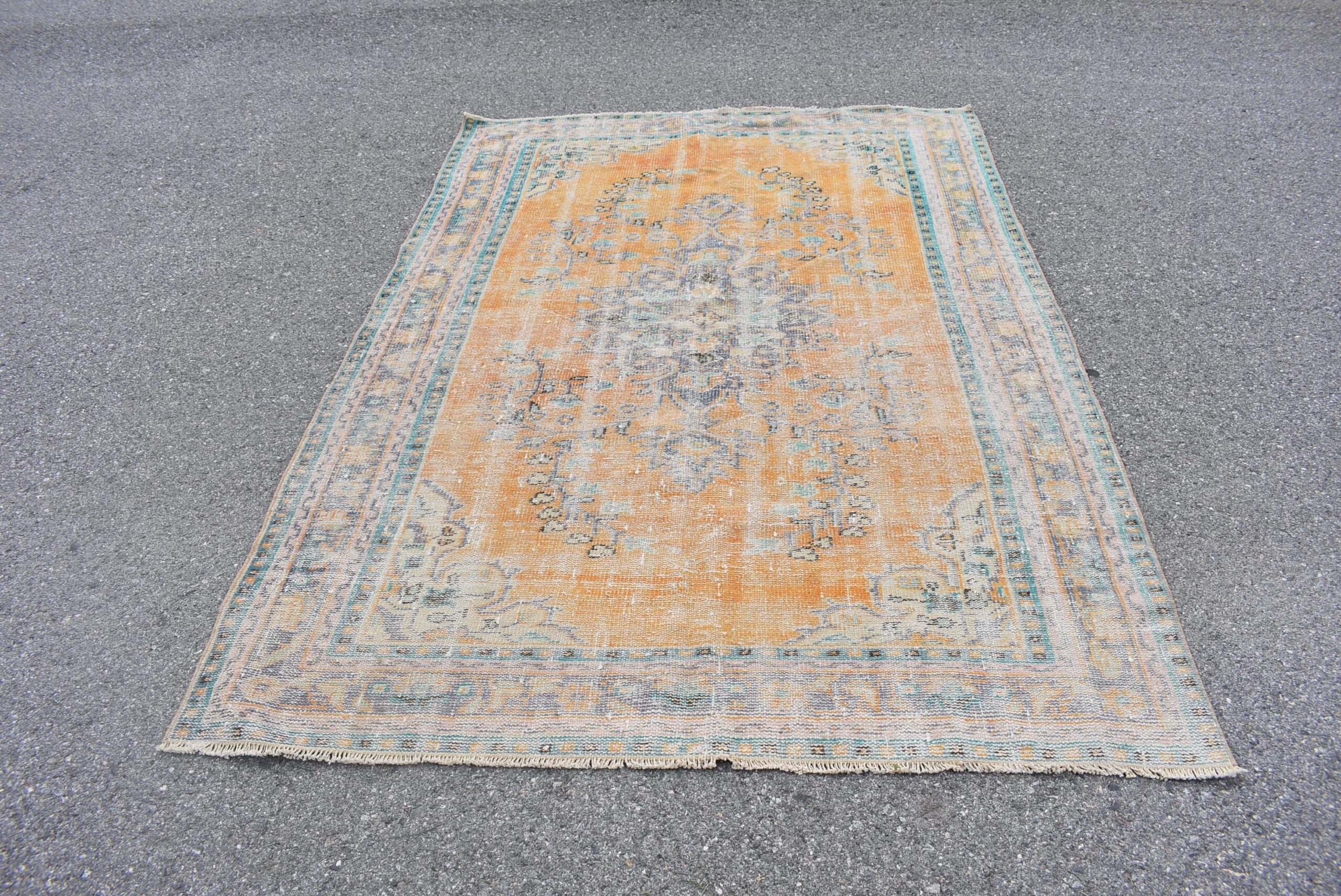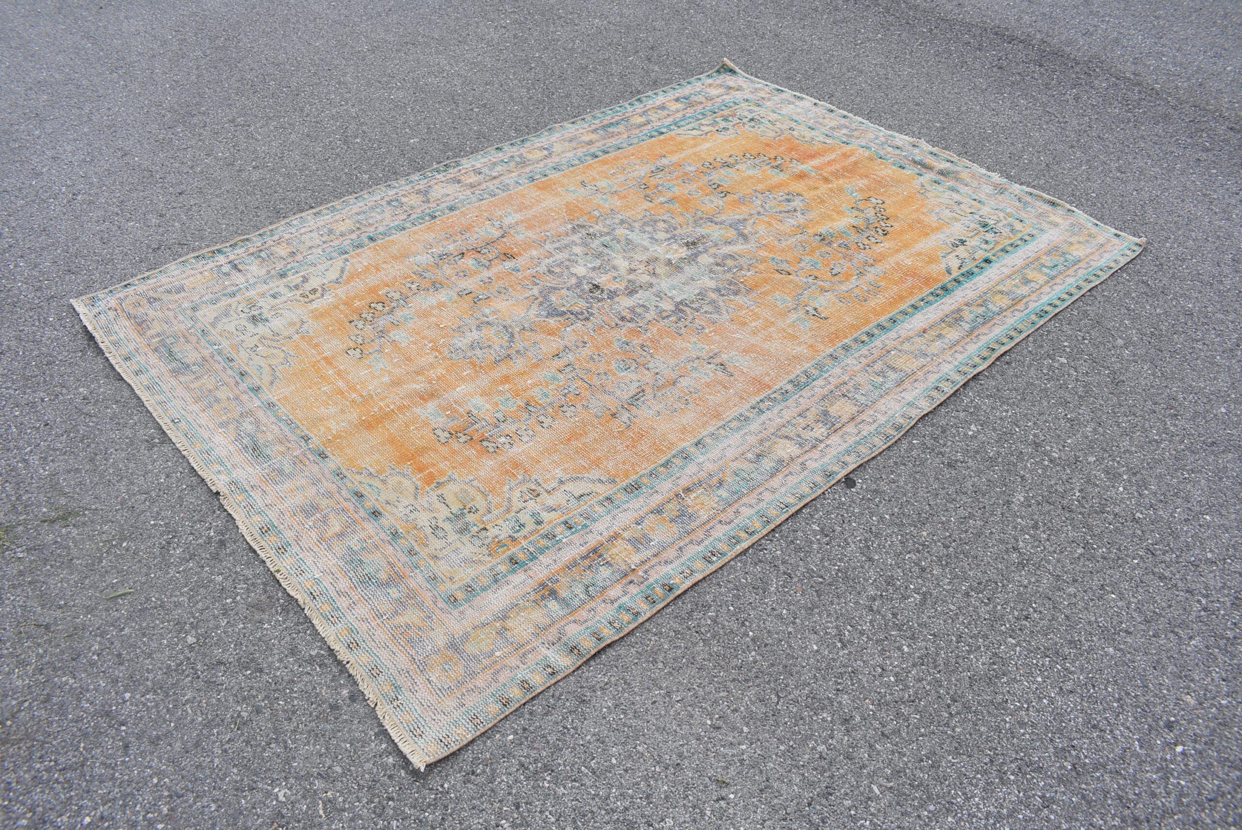 Pretty and one-of-a-kind 5.4 ft. x 7.8 ft. (166 cm x 239 cm) vintage Turkish rug hand-knotted in Turkey from organic wool. This is an authentic vintage Turkish rug from the 1970s that has worn splendidly to perfection.