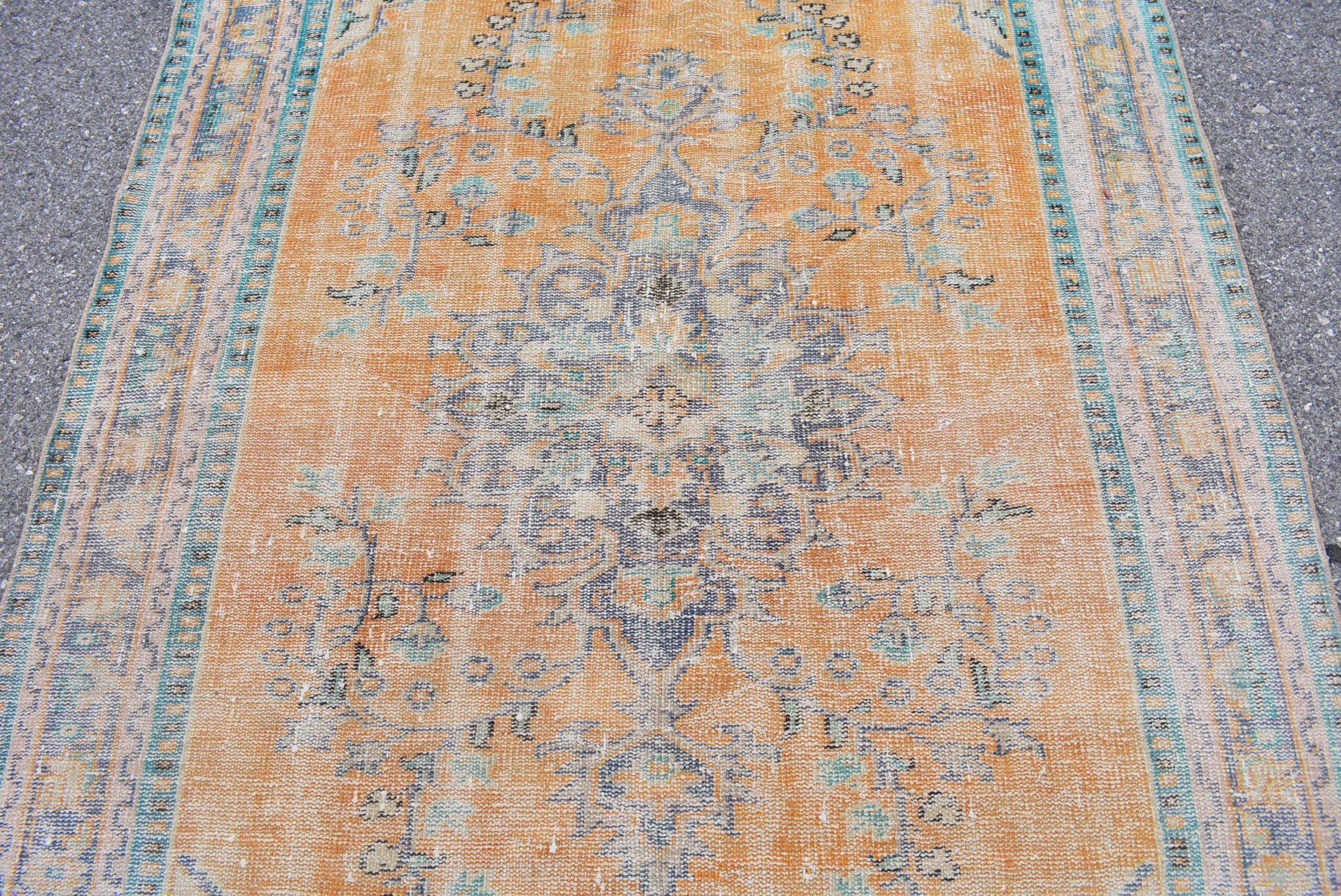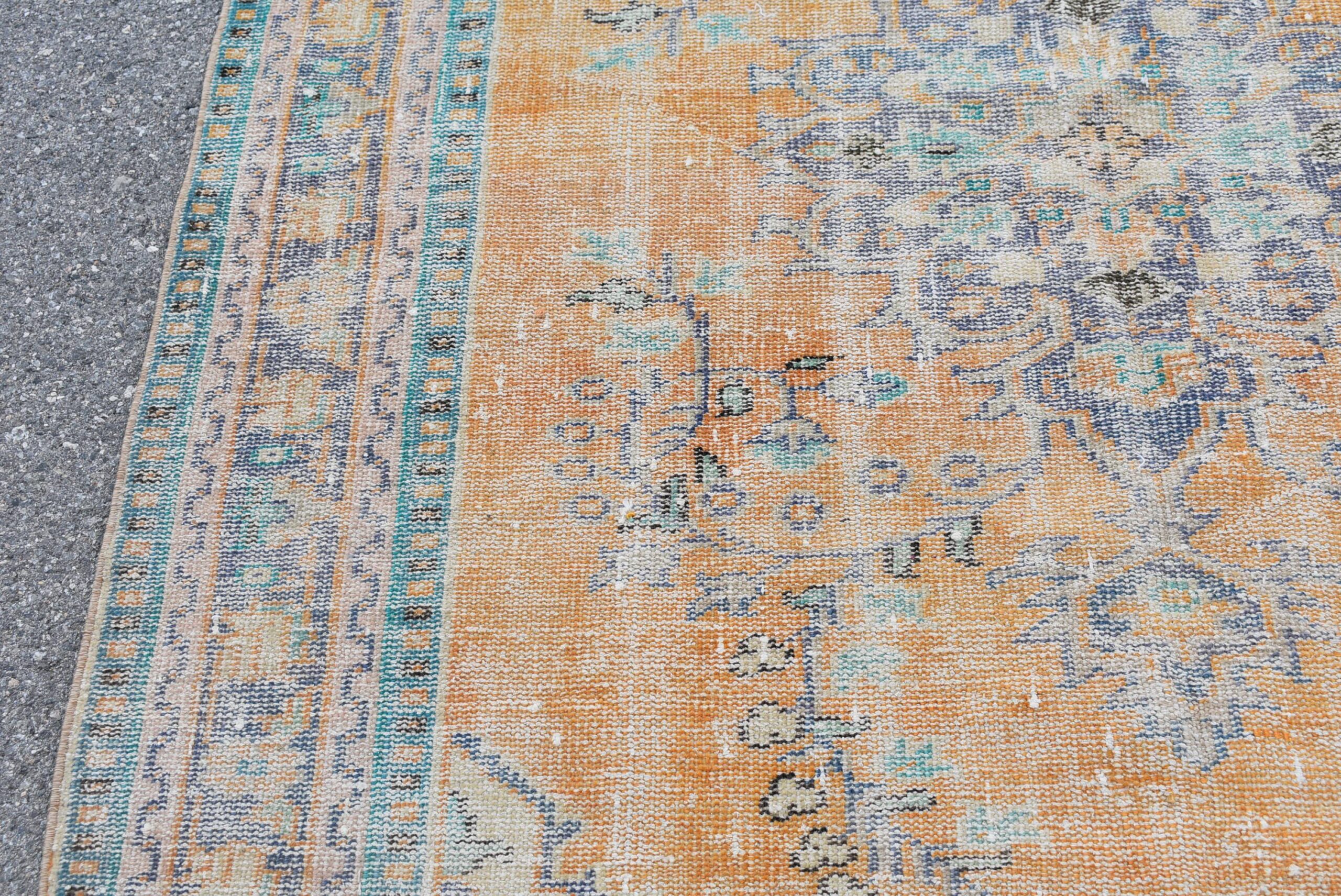 This is a vintage Turkish rug hand-knotted in a small village in Turkey by skilled Anatolian women during around the 1970s. It is made from natural wool (sheep) and dyed using all-natural (vegetable) dyes. Natural materials are more durable than synthetic materials guaranteeing a rug that can last for years while natural dyes provide colors that gets more beautiful as years pass by especially when in direct sunlight.