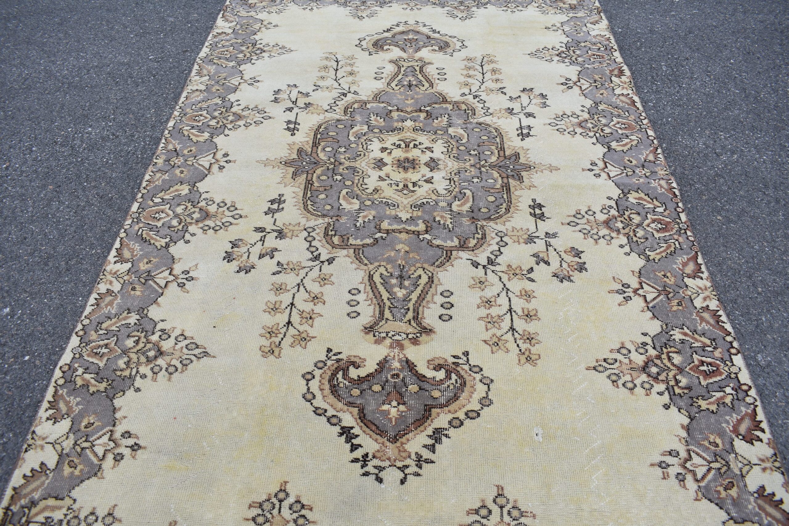 Lovely and unique 5.4 ft. x 8.7 ft. (164 cm x 266 cm) vintage Turkish rug hand-knotted in Turkey from organic wool. This is an authentic vintage Turkish rug from the 1980s that has worn beautifully to perfection.