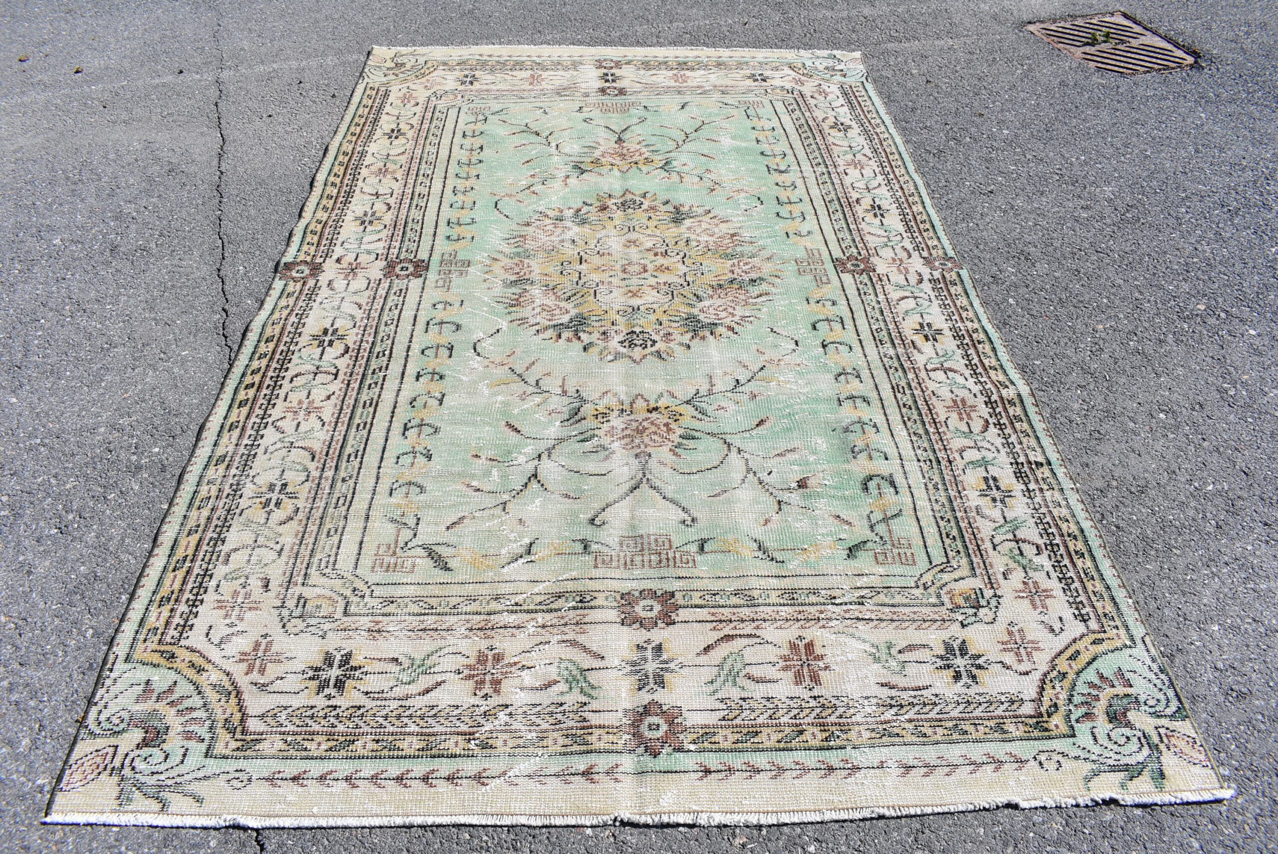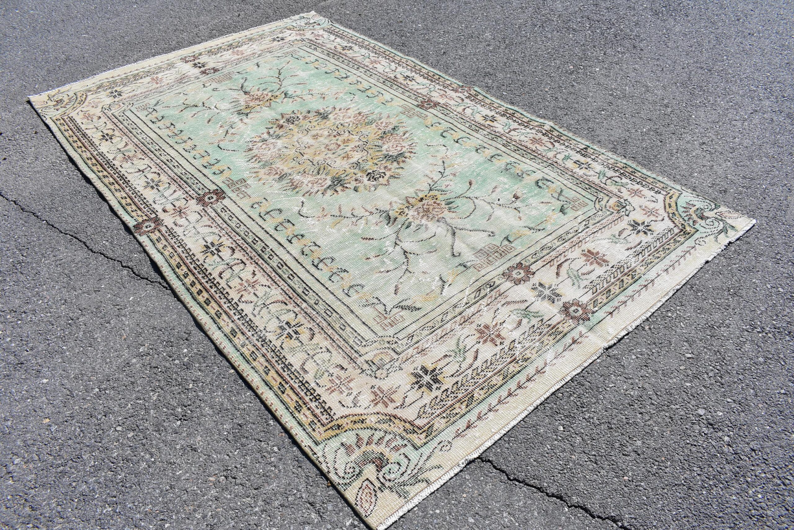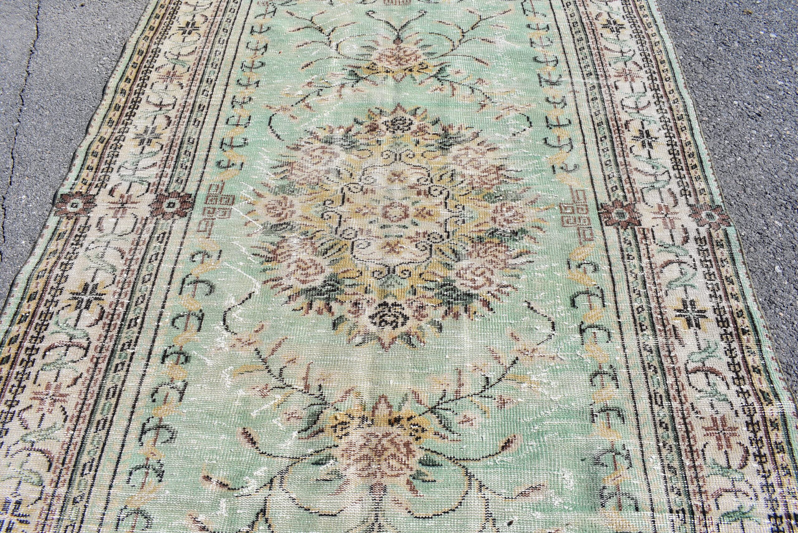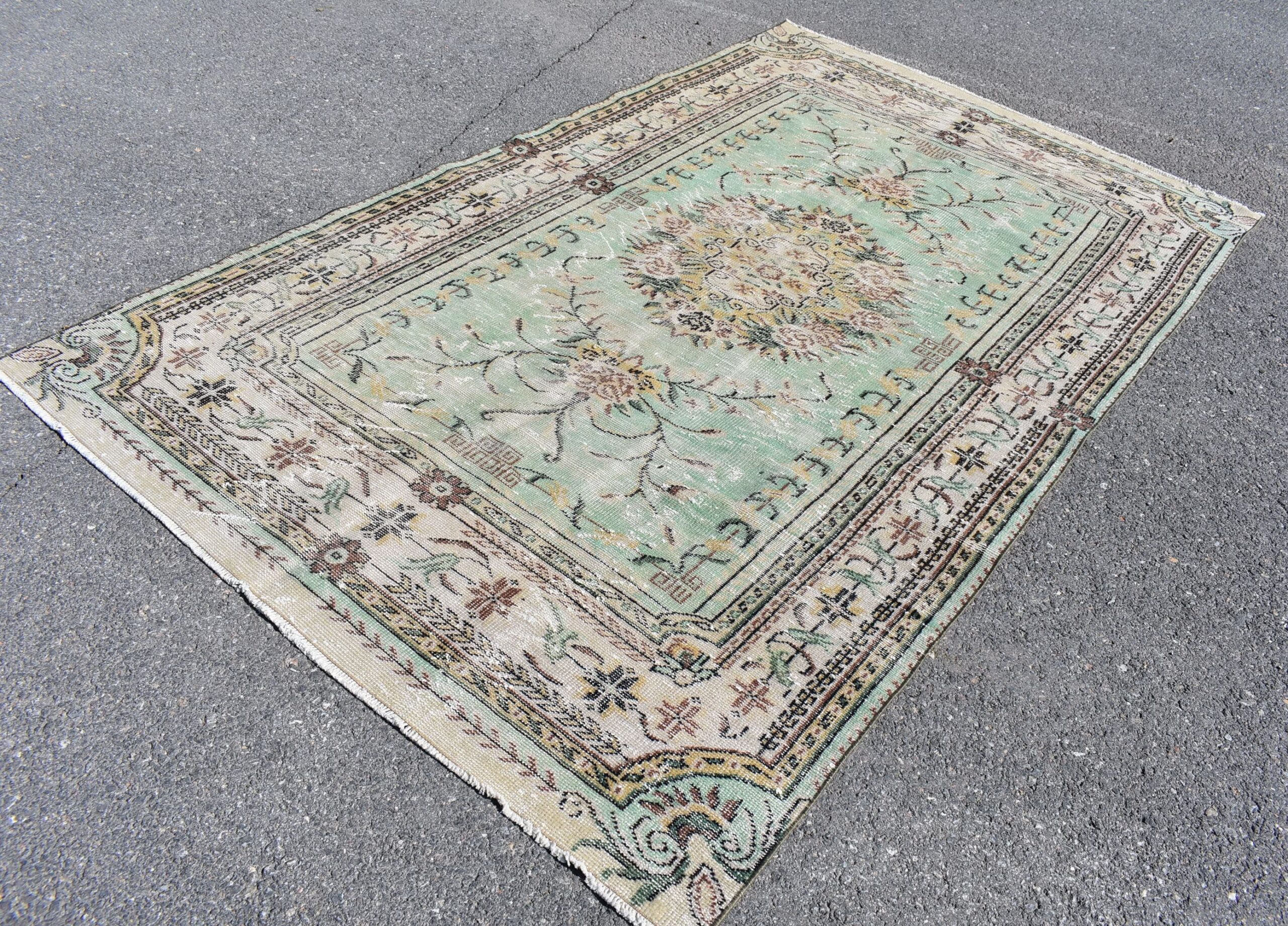 Beautiful and one-of-a-kind 5.4 ft. x 8.9 ft. (164 cm x 272 cm) vintage Turkish rug hand-knotted in Turkey from organic wool. This is an authentic vintage Turkish rug from the 1980s that has worn admirably to perfection.